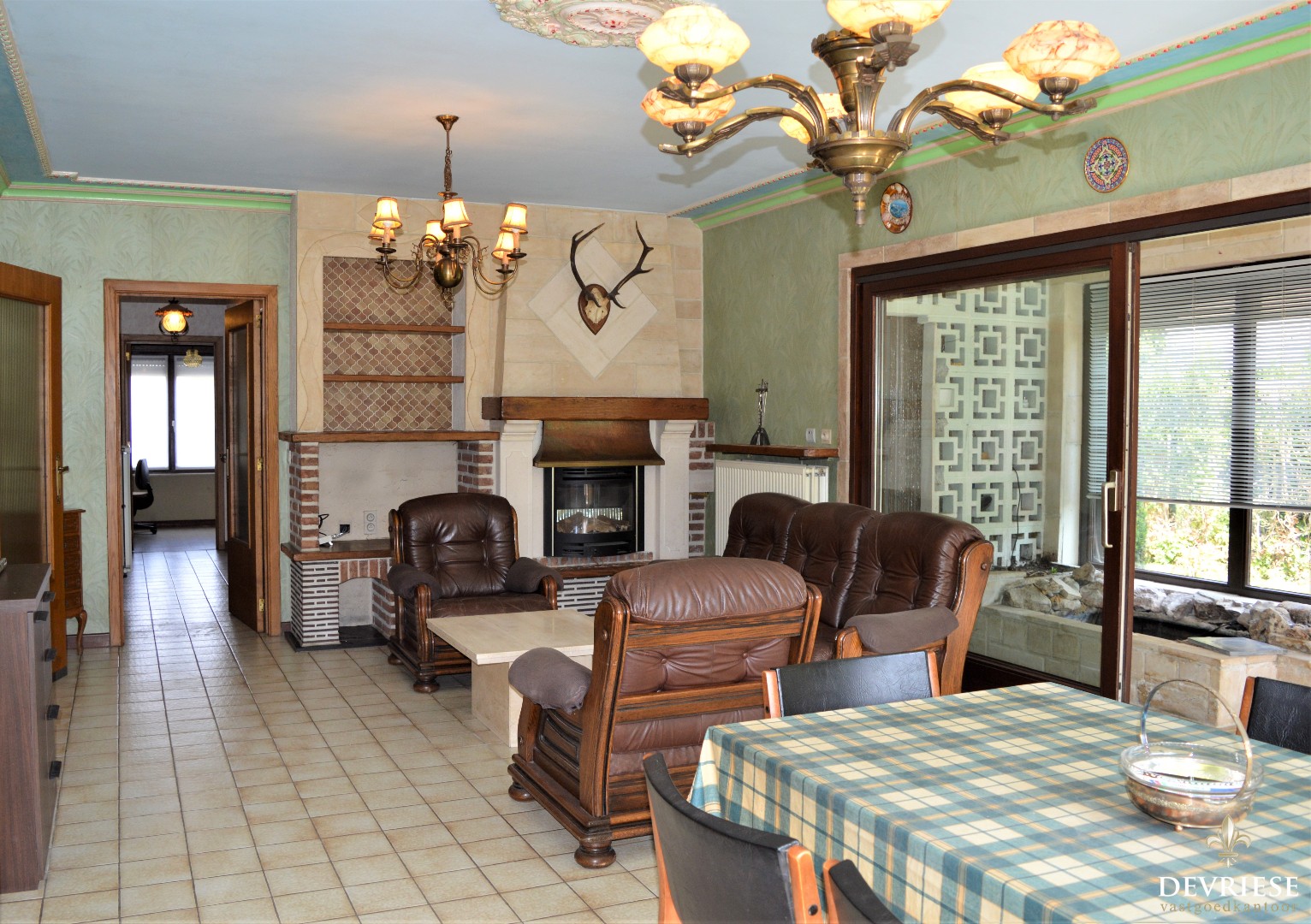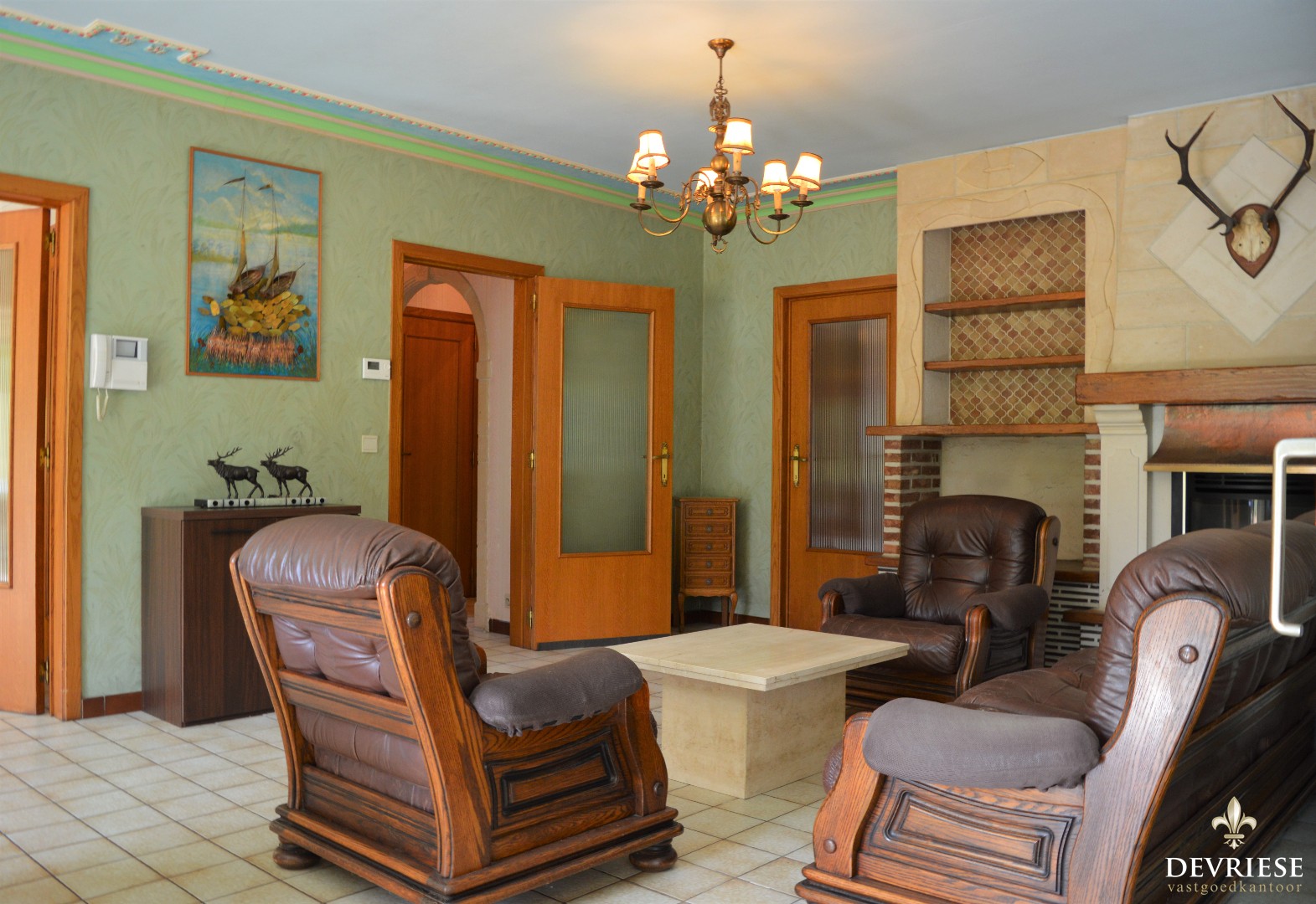 Deze kloeke woning heeft u heel wat te beiden: inkomhal met gastentoilet en vestiaire, ruime leefruimte voorzien van heel veel ramen en lichtinval, opgedeeld in zithoek en eetplaats. Aanpalend is er de leefkeuken voorzien van alle toestellen en zicht op de tuin.
