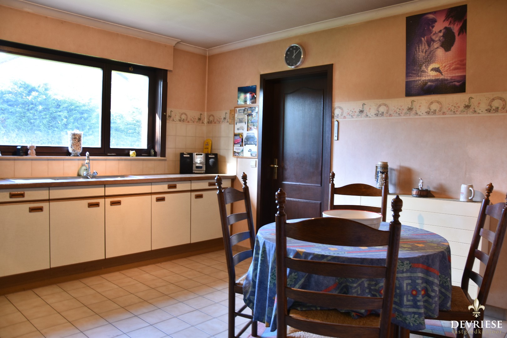 Geïnstalleerde leefkeuken met ontbijthoek, palende berging met doorgang tot de inpandige garage. Hier bevindt zich ook de wasplaats.
