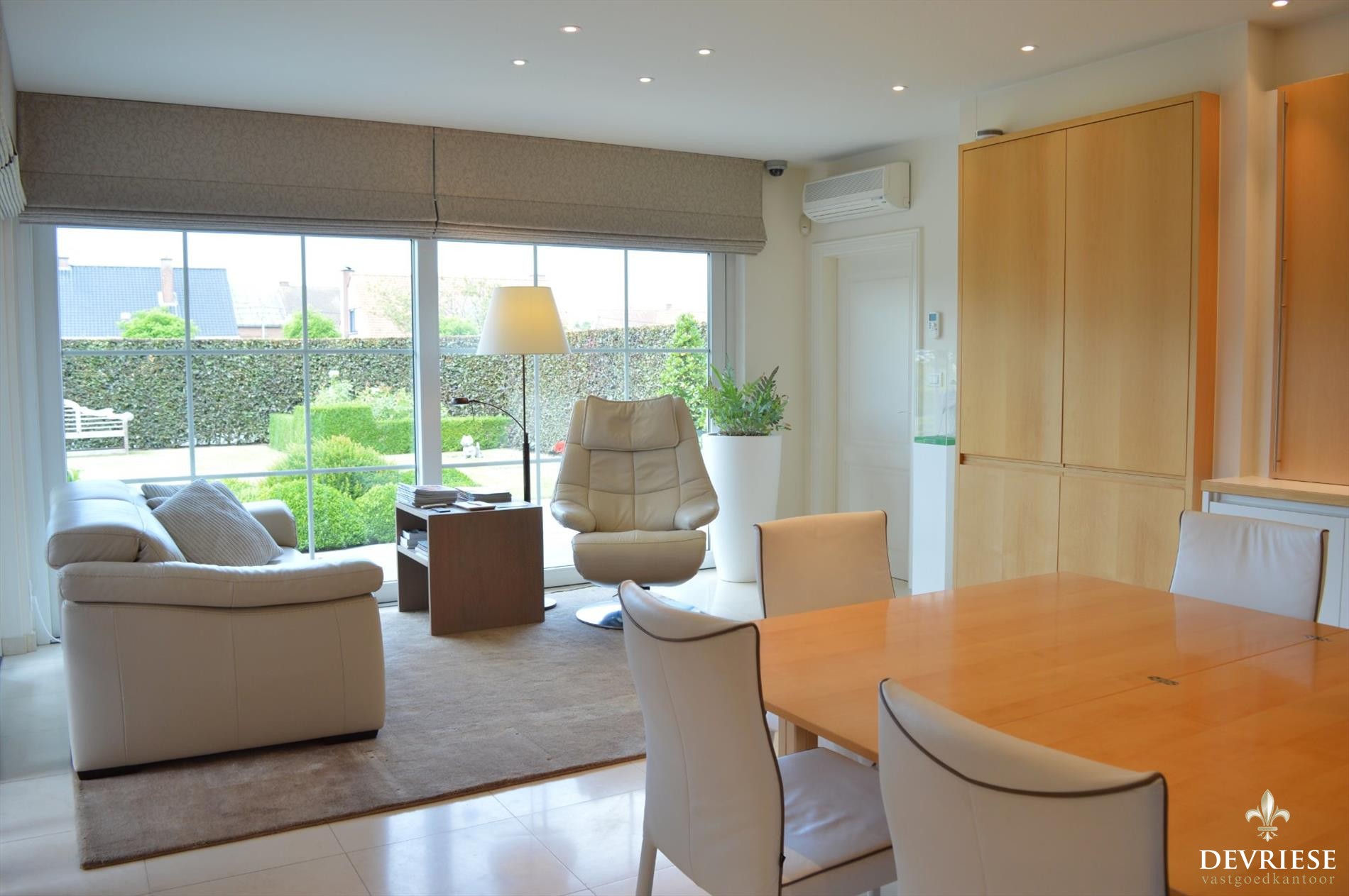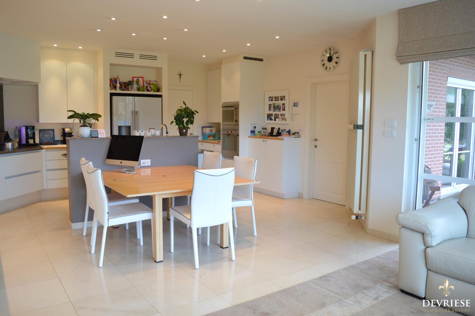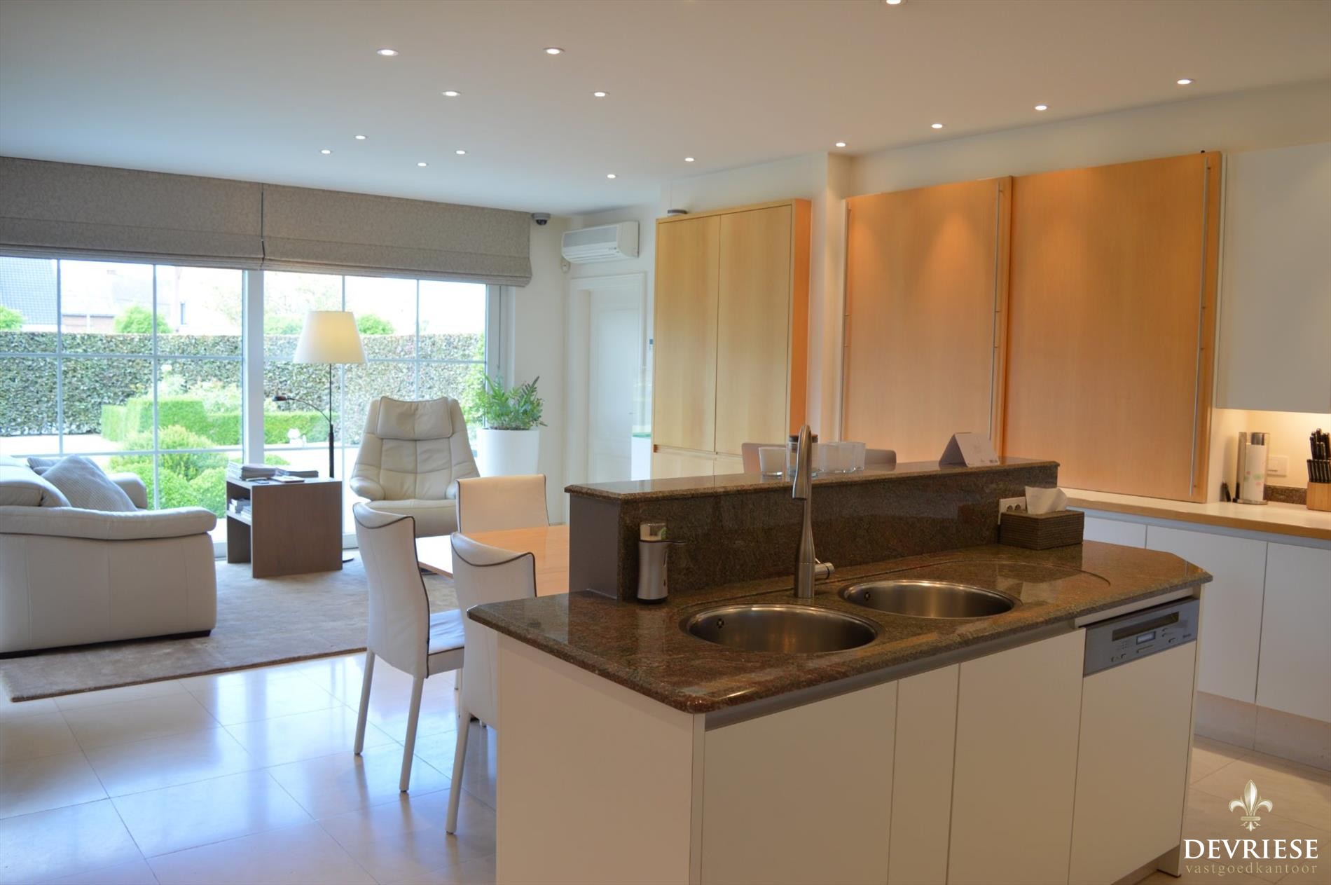 Zowel in de leefruimte als in de keuken is het genieten van ... overvloedige lichtinval door de perfecte oriëntatie, met een prachtig en uniek zicht op de tuin en het terras.