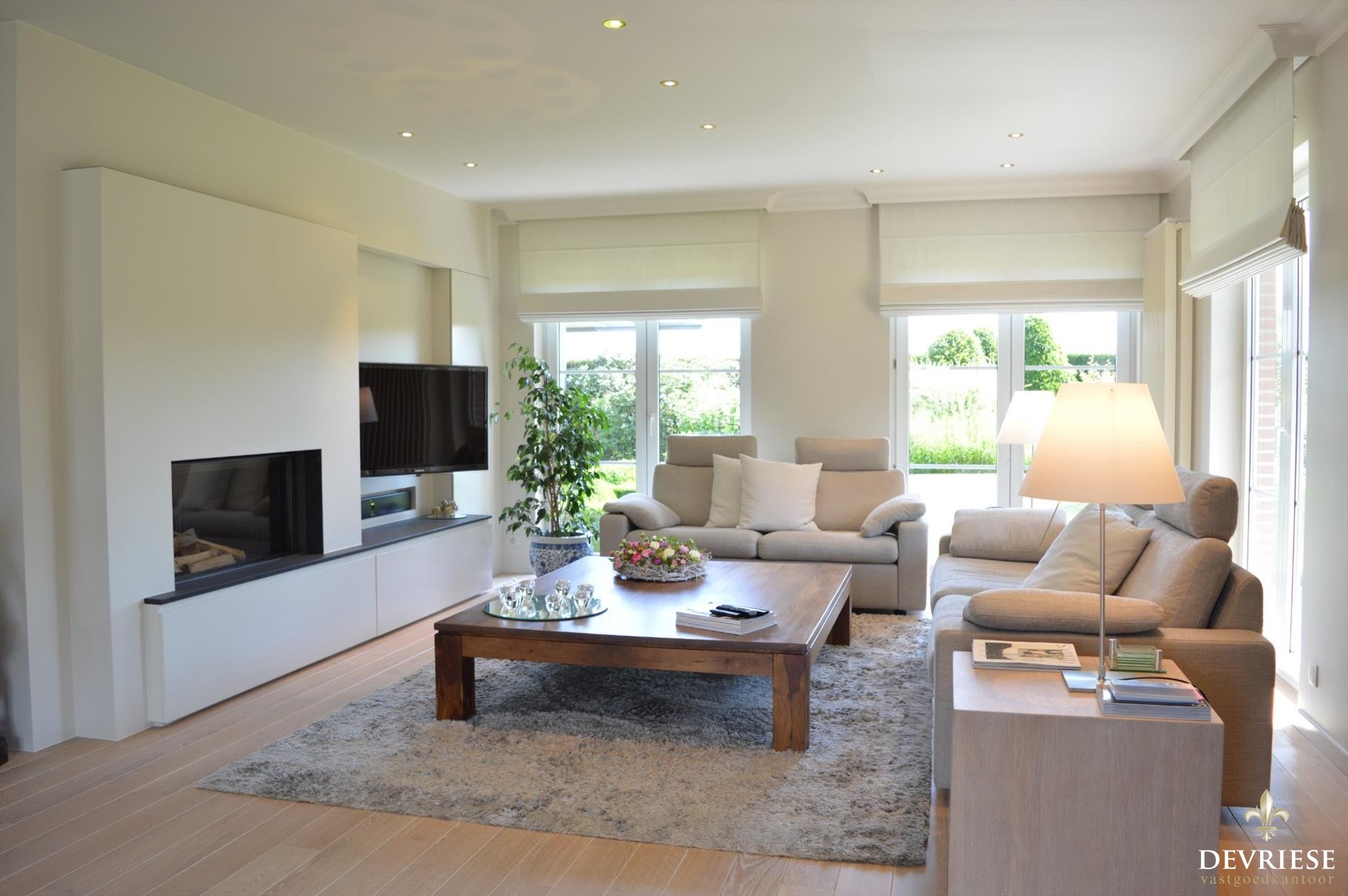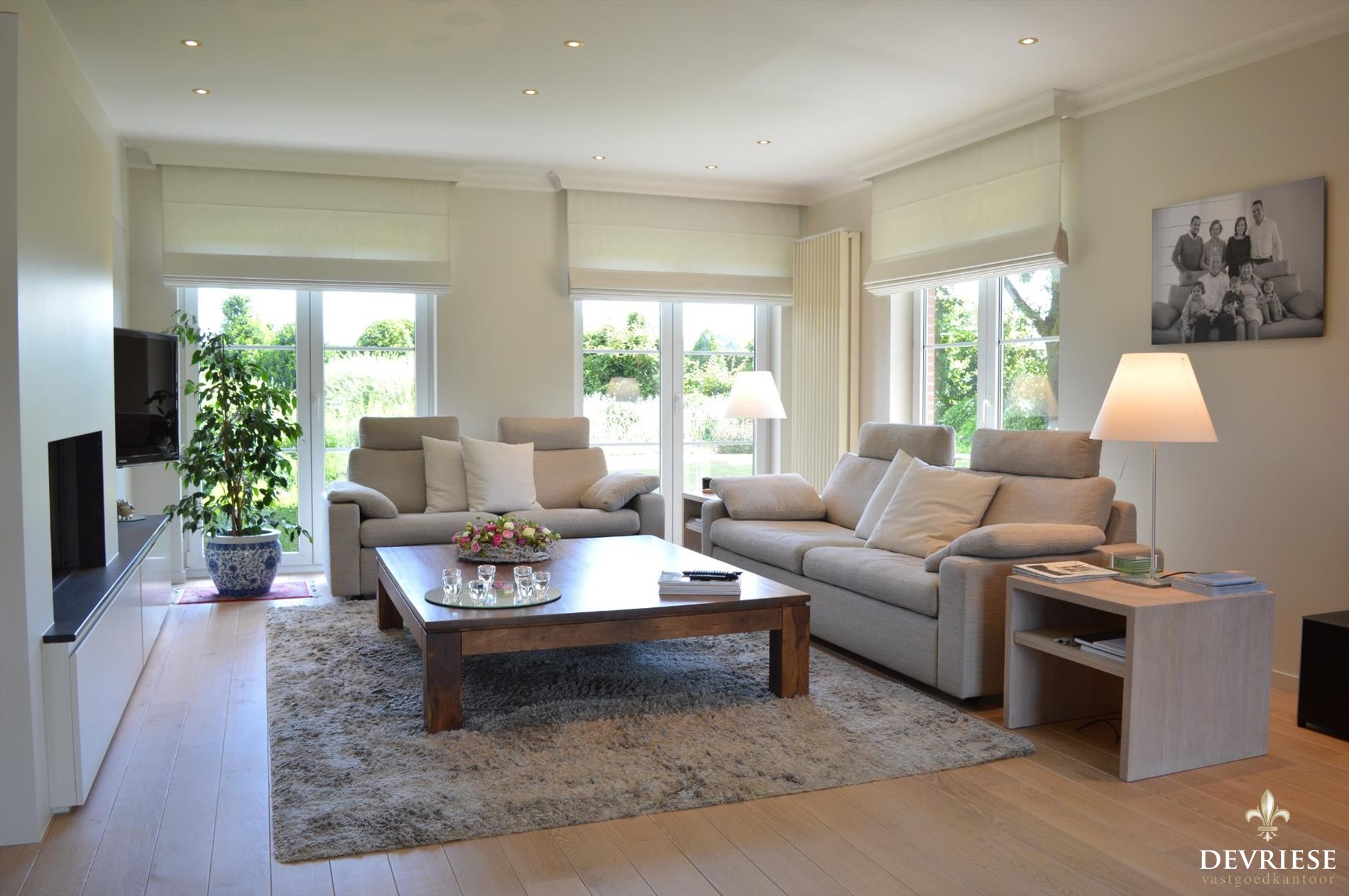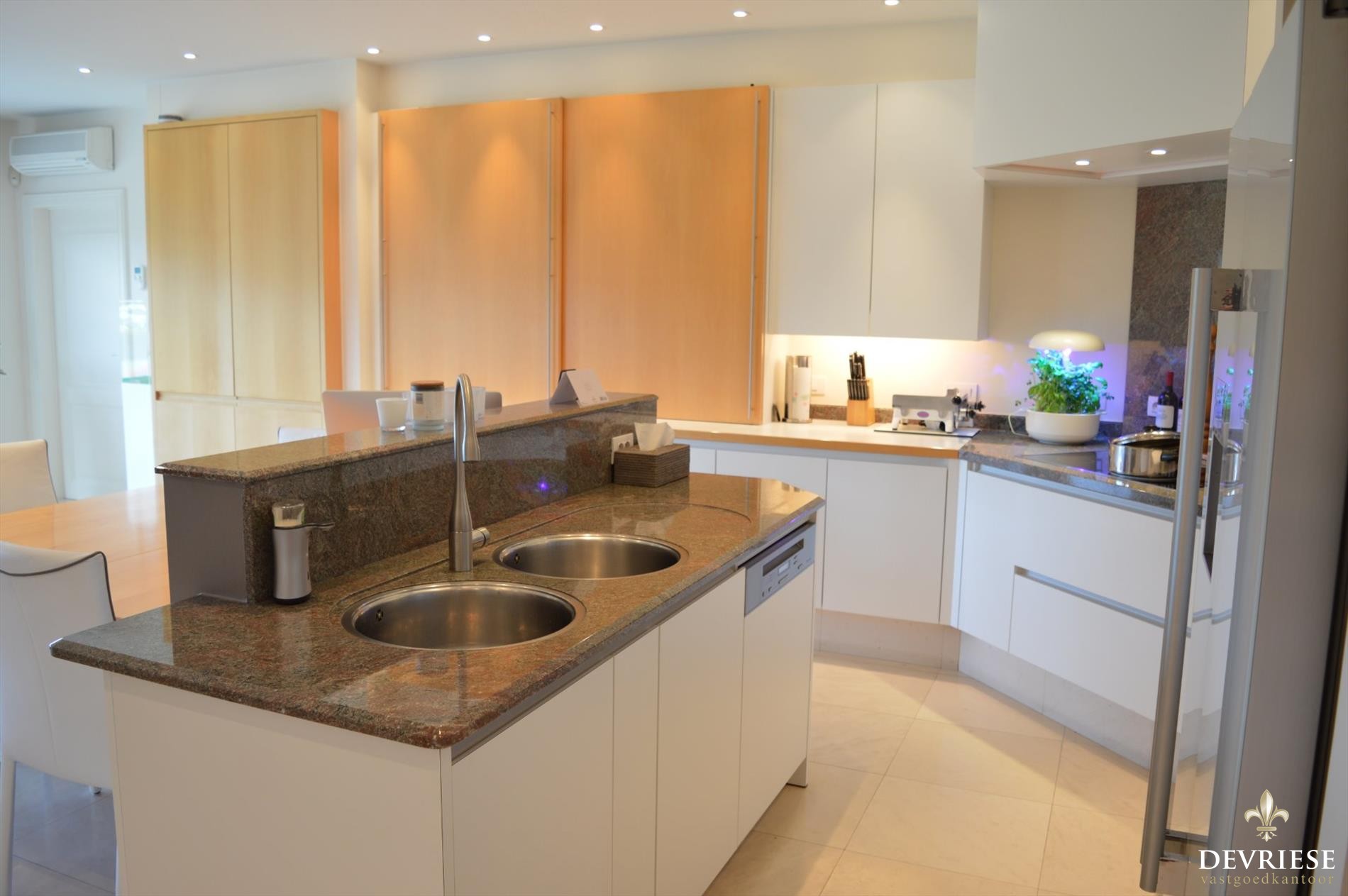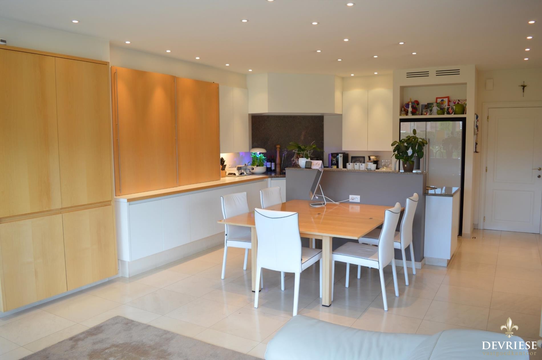 Zowel in de leefruimte als in de keuken is het genieten van ... overvloedige lichtinval door de perfecte oriëntatie, met een prachtig en uniek zicht op de tuin en het terras.
