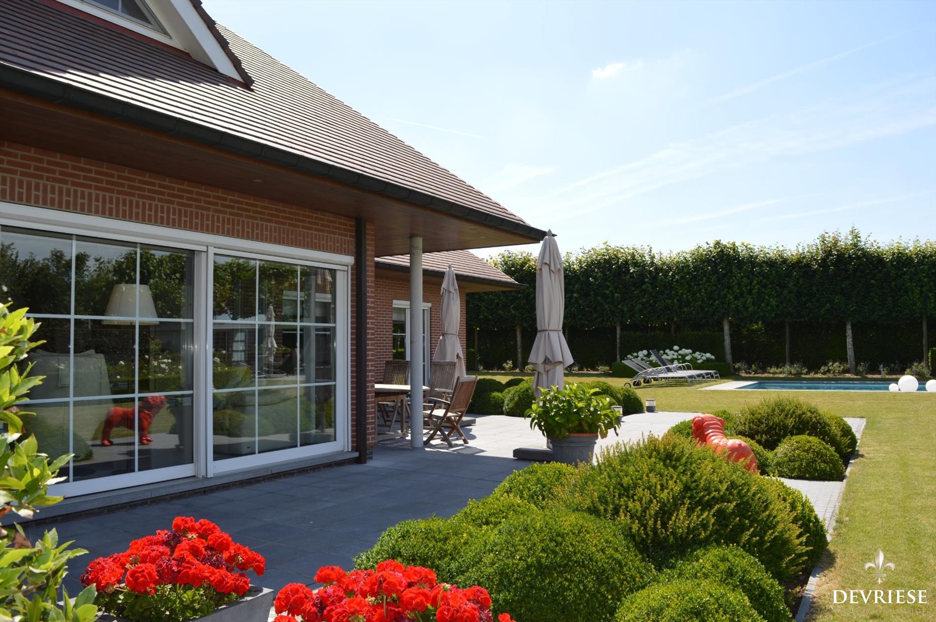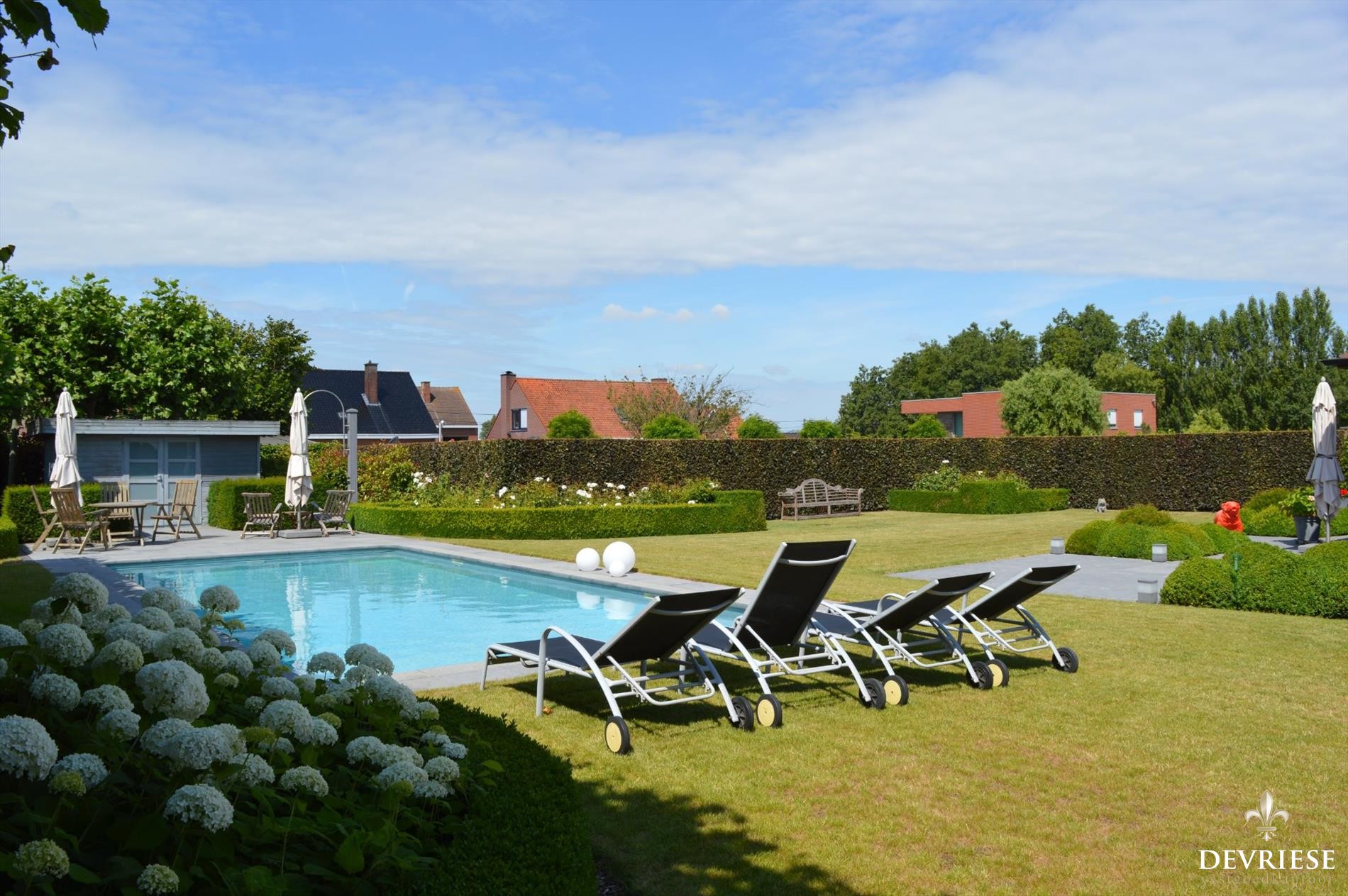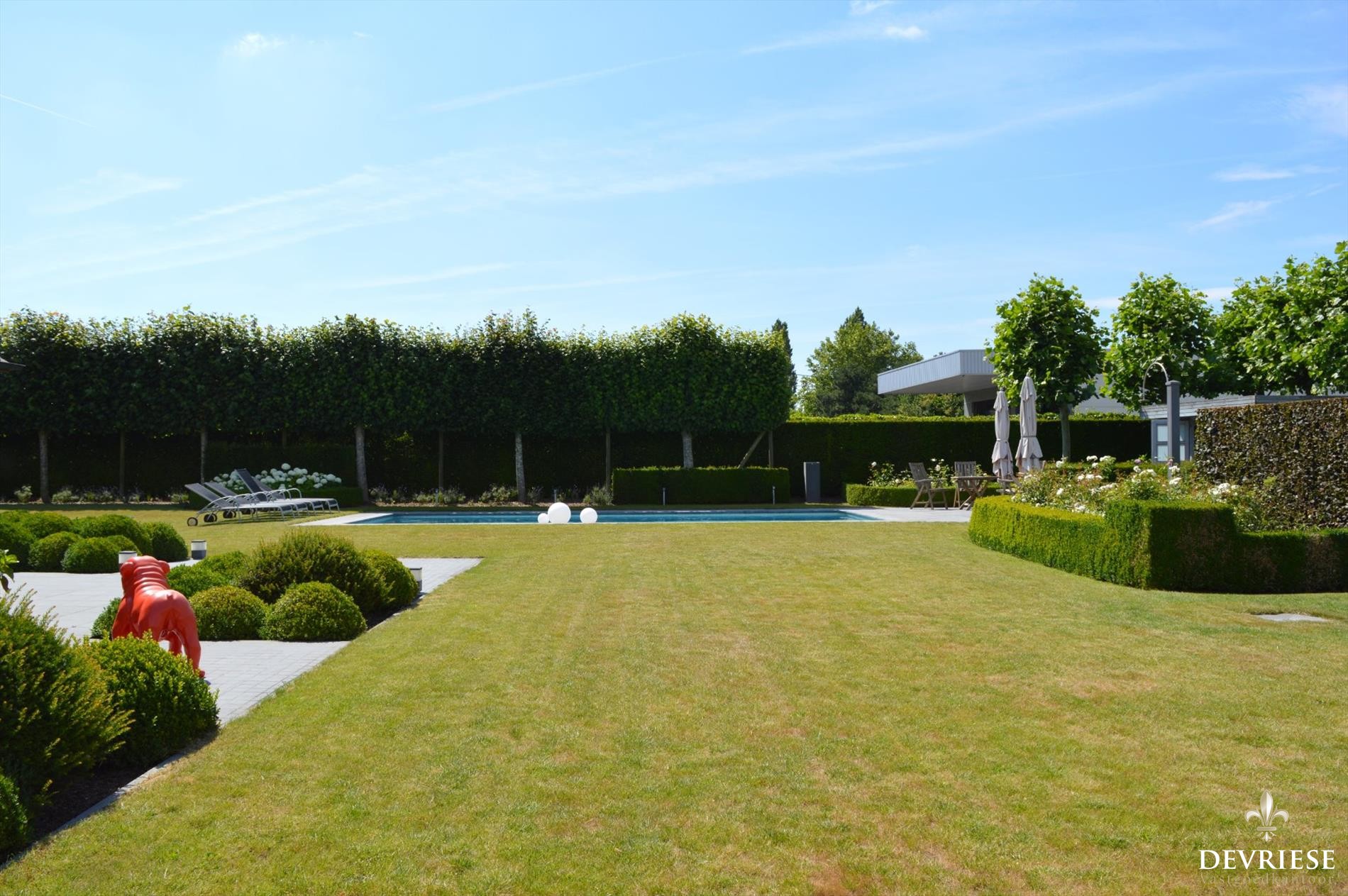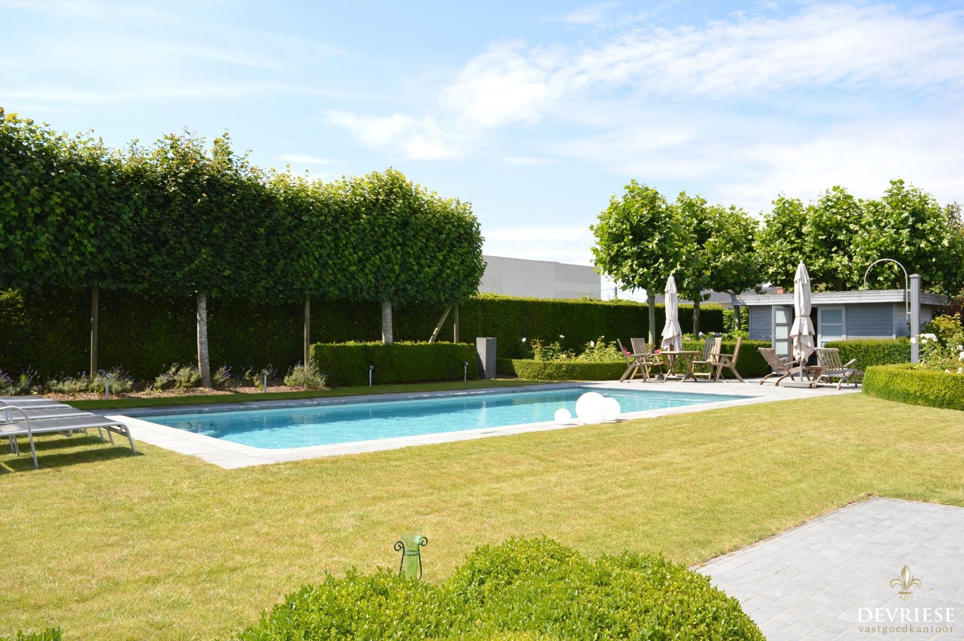 Eén van de blikvangers is ongetwijfeld het prachtig en met sfeervolle verlichting afgewerkte zwembad in de mooi aangelegde en tevens tot in de puntjes onderhouden tuin. Het is er genieten van 's ochtends tot 's avonds laat. De poolhouse maakt het plaatje compleet. Geniet in de tuin volop van de rust en volledige privacy zonder inkijk. Rondom werd de tuin volledig afgesloten.