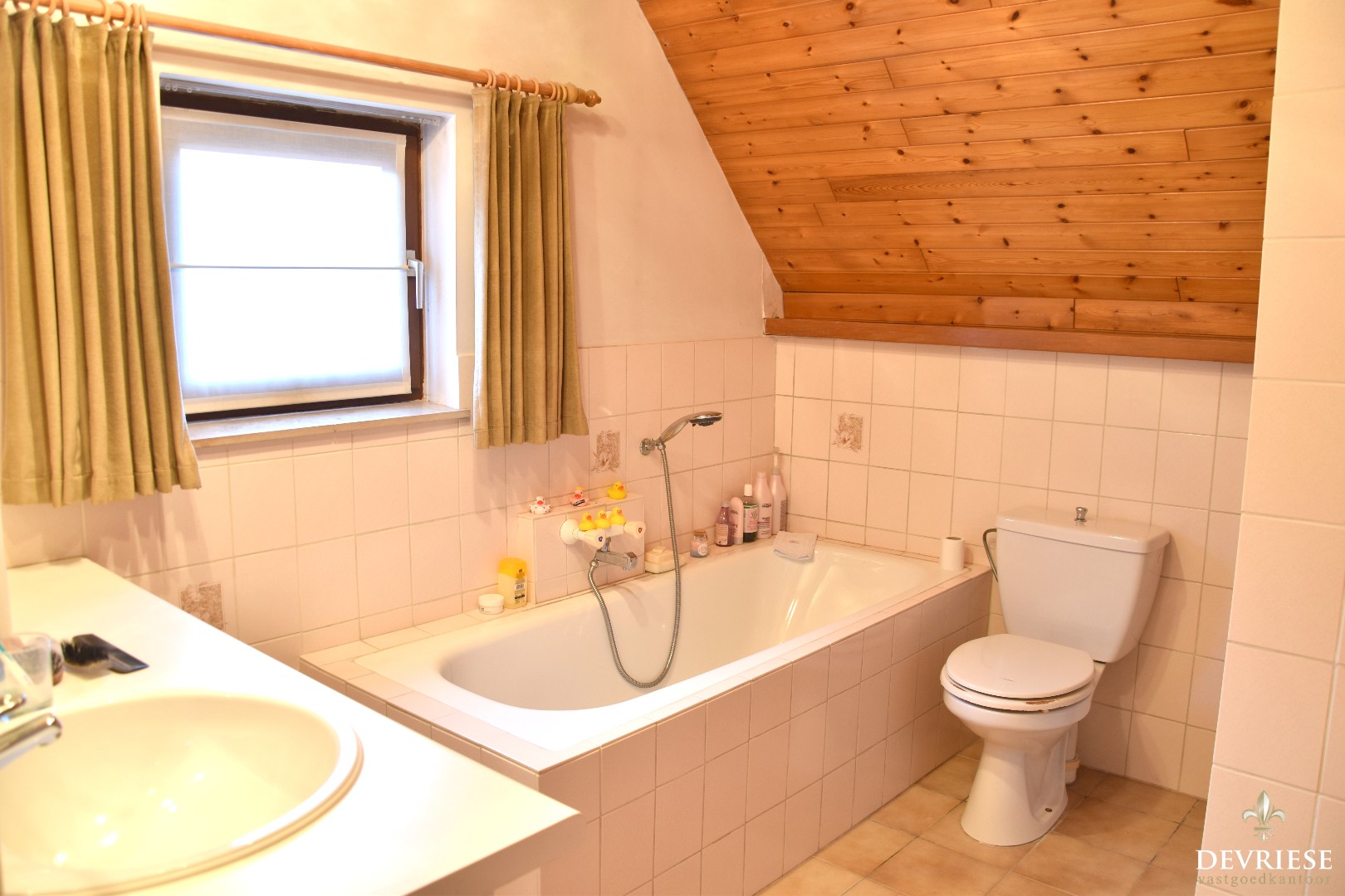 De badkamer met ligbad, douche, toilet en lavomeubel is uiterst onderhoudsvriendelijk.