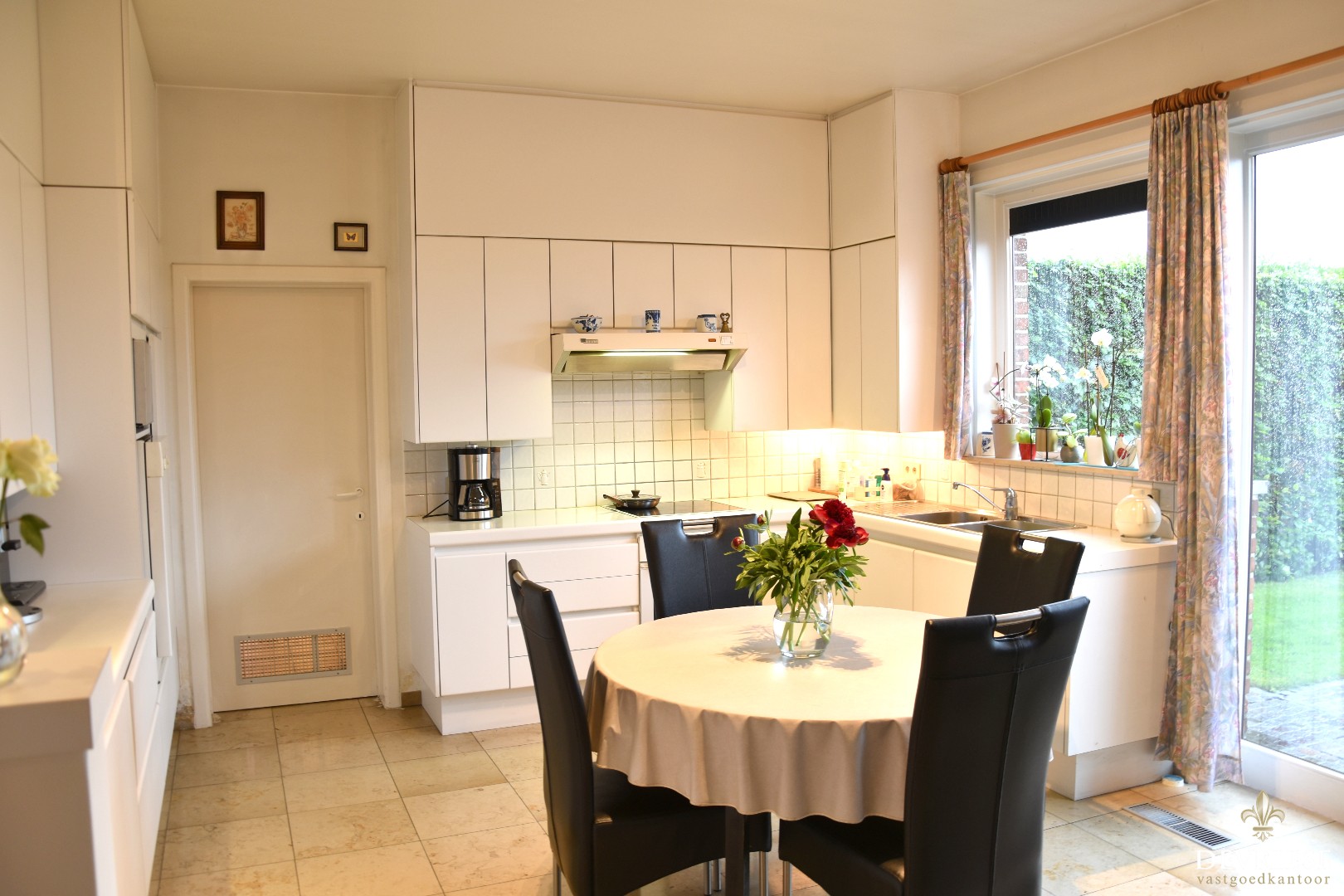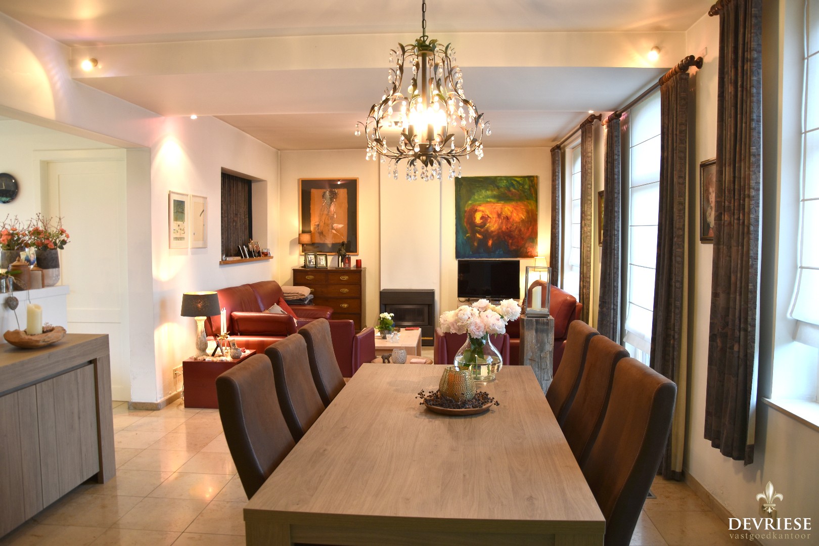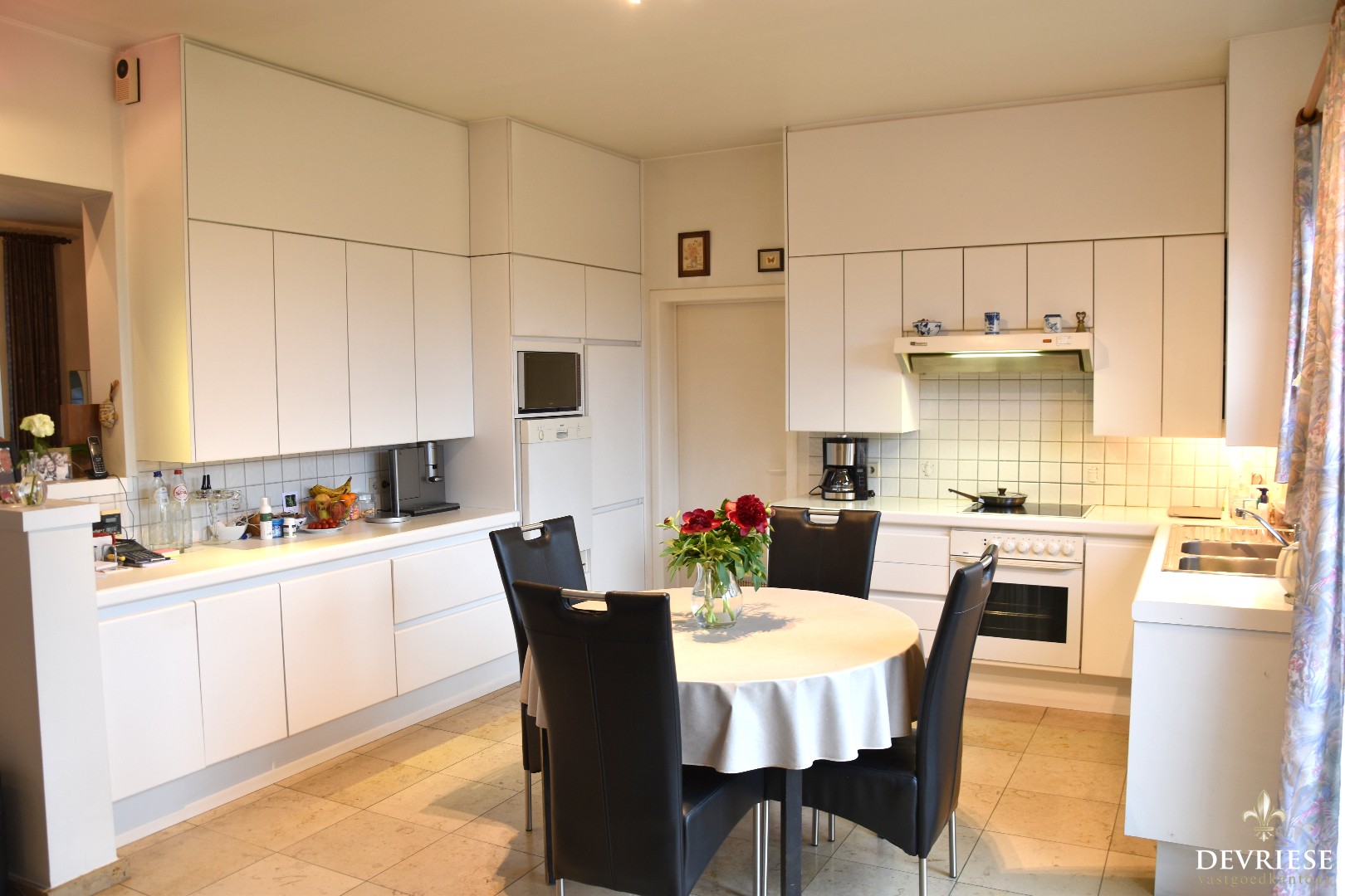 De inkomhal, met apart gastentoilet, nodigt u meteen uit naar de knappe salon -en eetruimte. De hoge plafonds zorgen meteen voor een zalig ruimtelijk gevoel. Verder vinden we een semi-open keuken met gezellige ontbijthoek. Aanpalend is er een (was)berging met extra toilet.