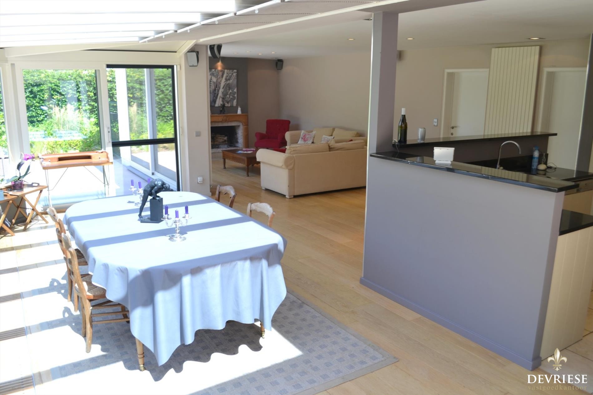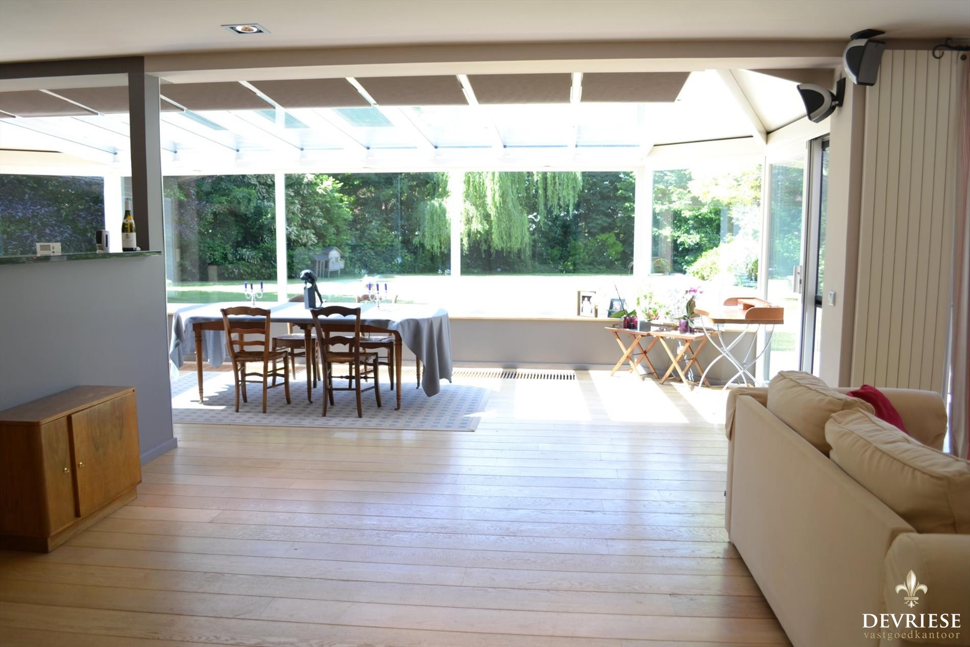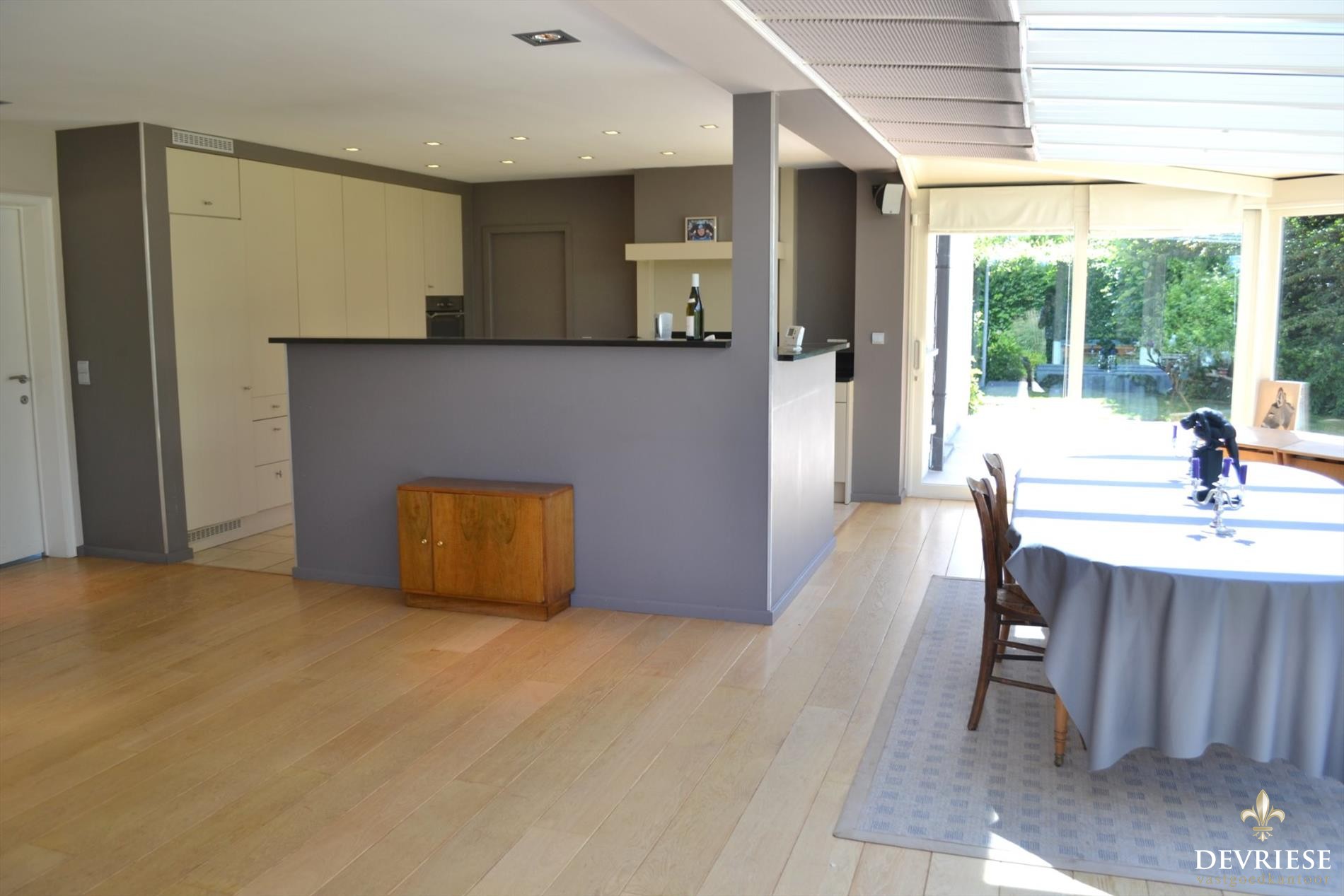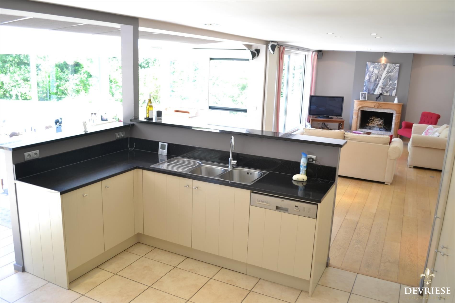 Vanaf 2007 werd deze woning beetje bij beetje up to date gezet met o.a. nieuwe keuken met uitbouw in glas dat een prachtig groen zicht geeft over de uitgestrekte tuin en magnifiek veel lichtinval. Naast de open keuken is er een cosy zitruimte aan het haardvuur en aansluitend een grote polyvalente ruimte. Ideaal als bureau -of speelruimte of groot leefgedeelte.