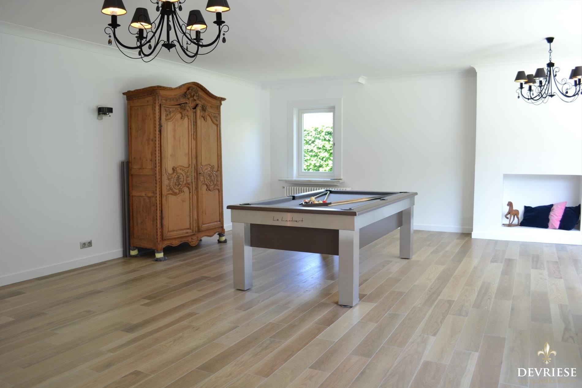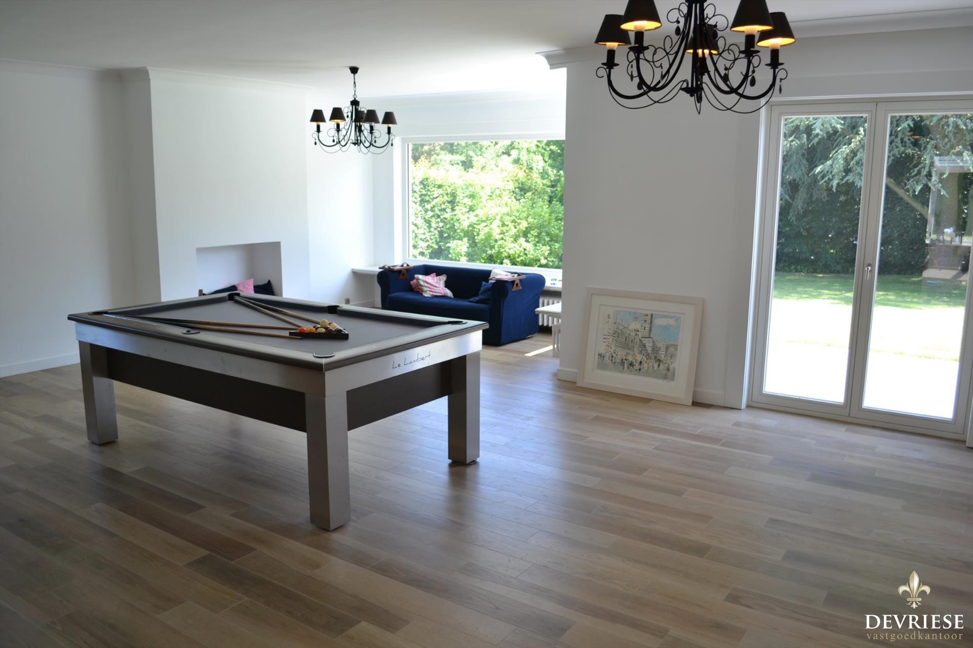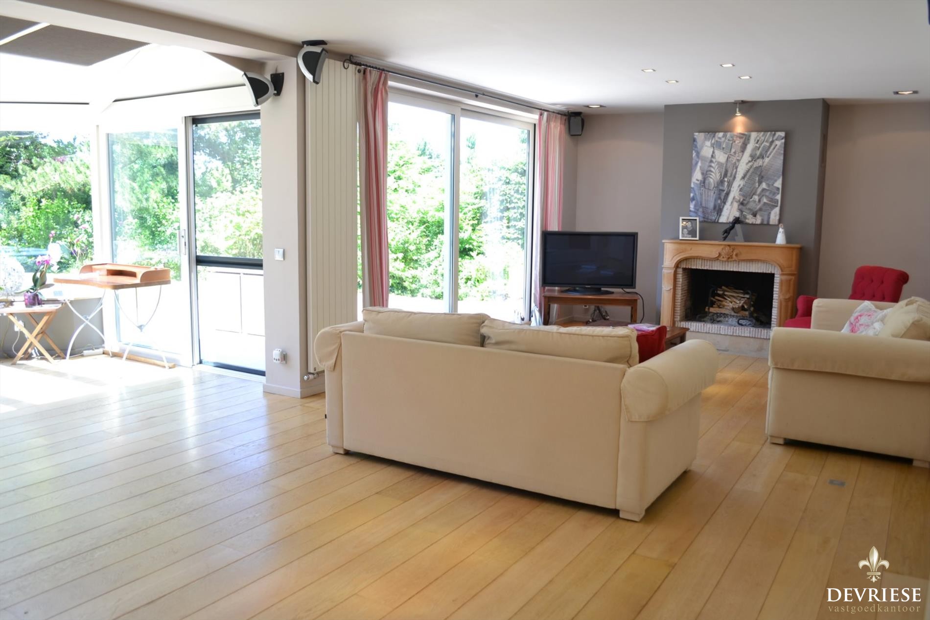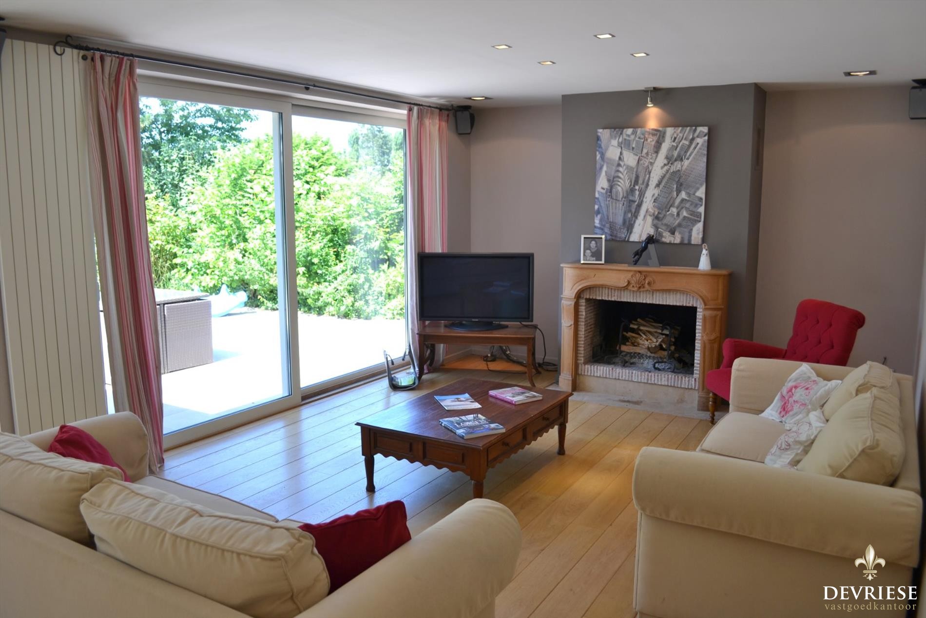 Vanaf 2007 werd deze woning beetje bij beetje up to date gezet met o.a. nieuwe keuken met uitbouw in glas dat een prachtig groen zicht geeft over de uitgestrekte tuin en magnifiek veel lichtinval. Naast de open keuken is er een cosy zitruimte aan het haardvuur en aansluitend een grote polyvalente ruimte. Ideaal als bureau -of speelruimte of groot leefgedeelte.