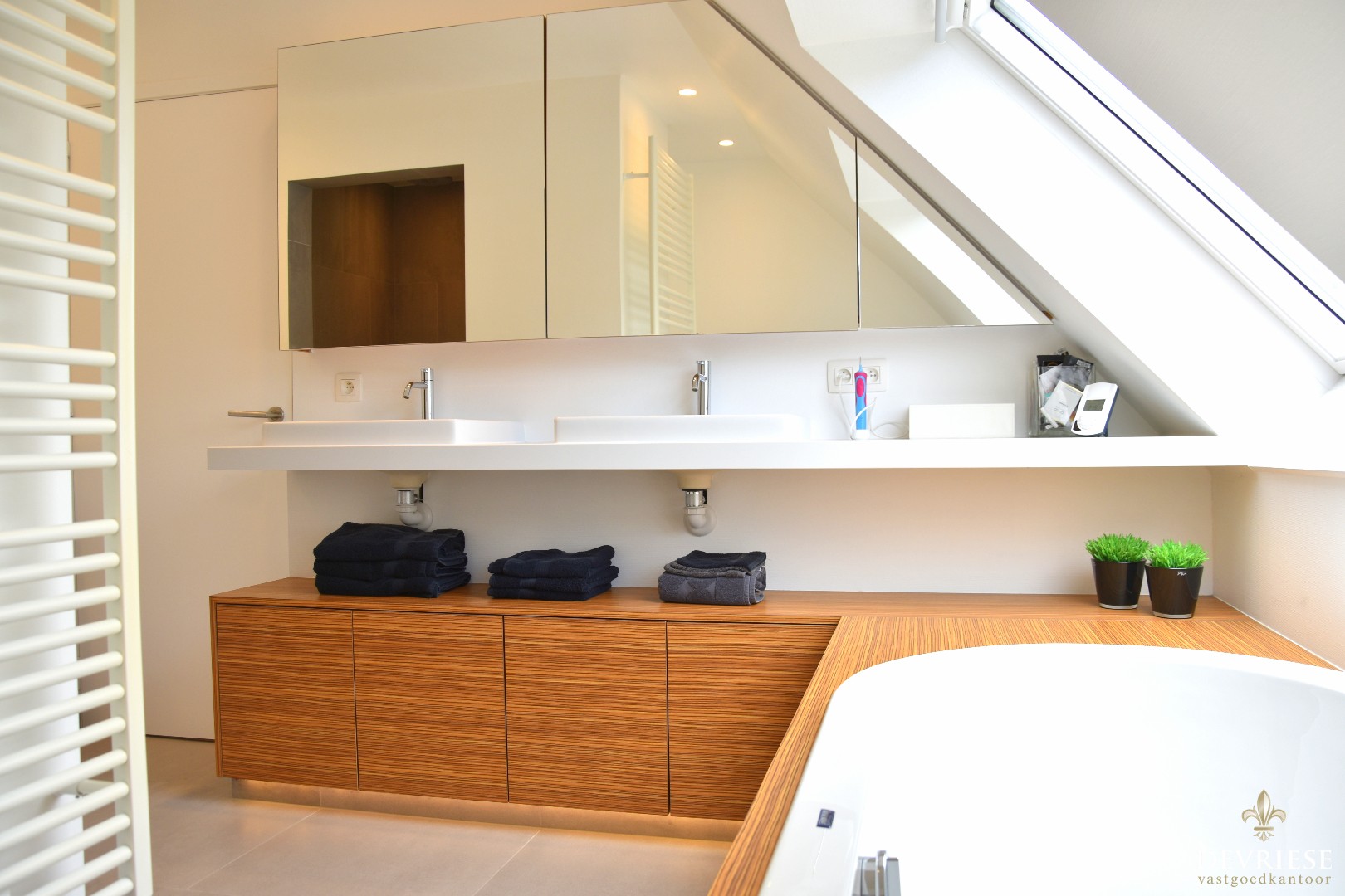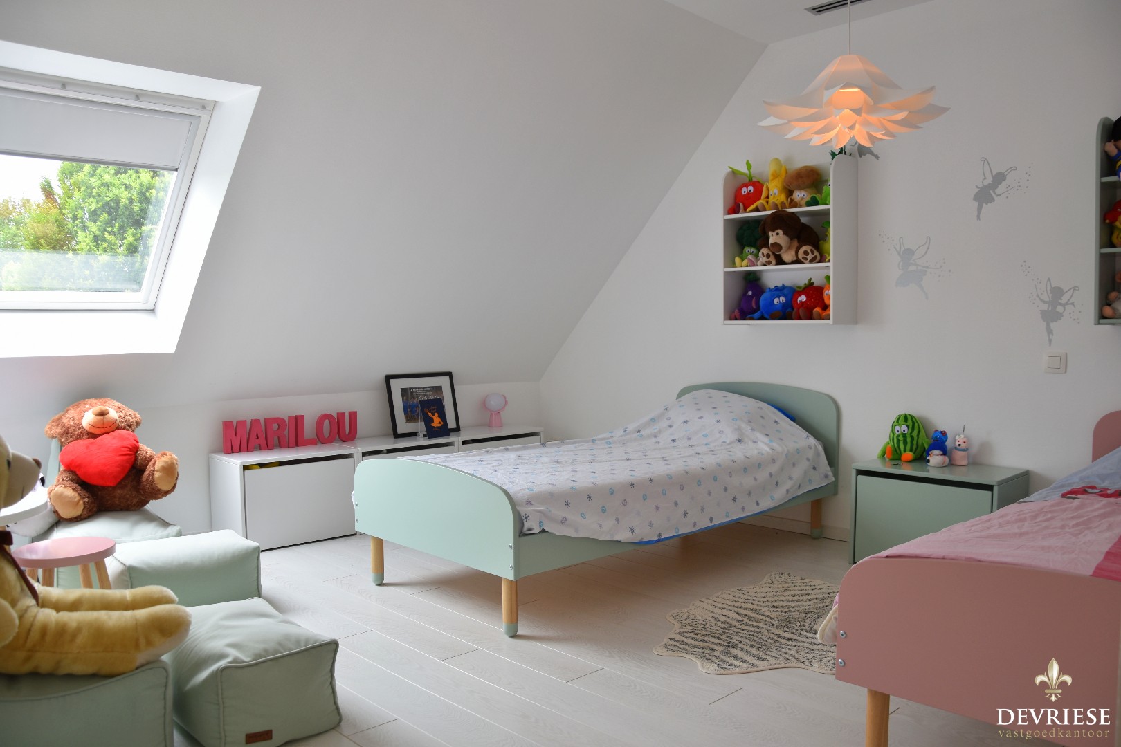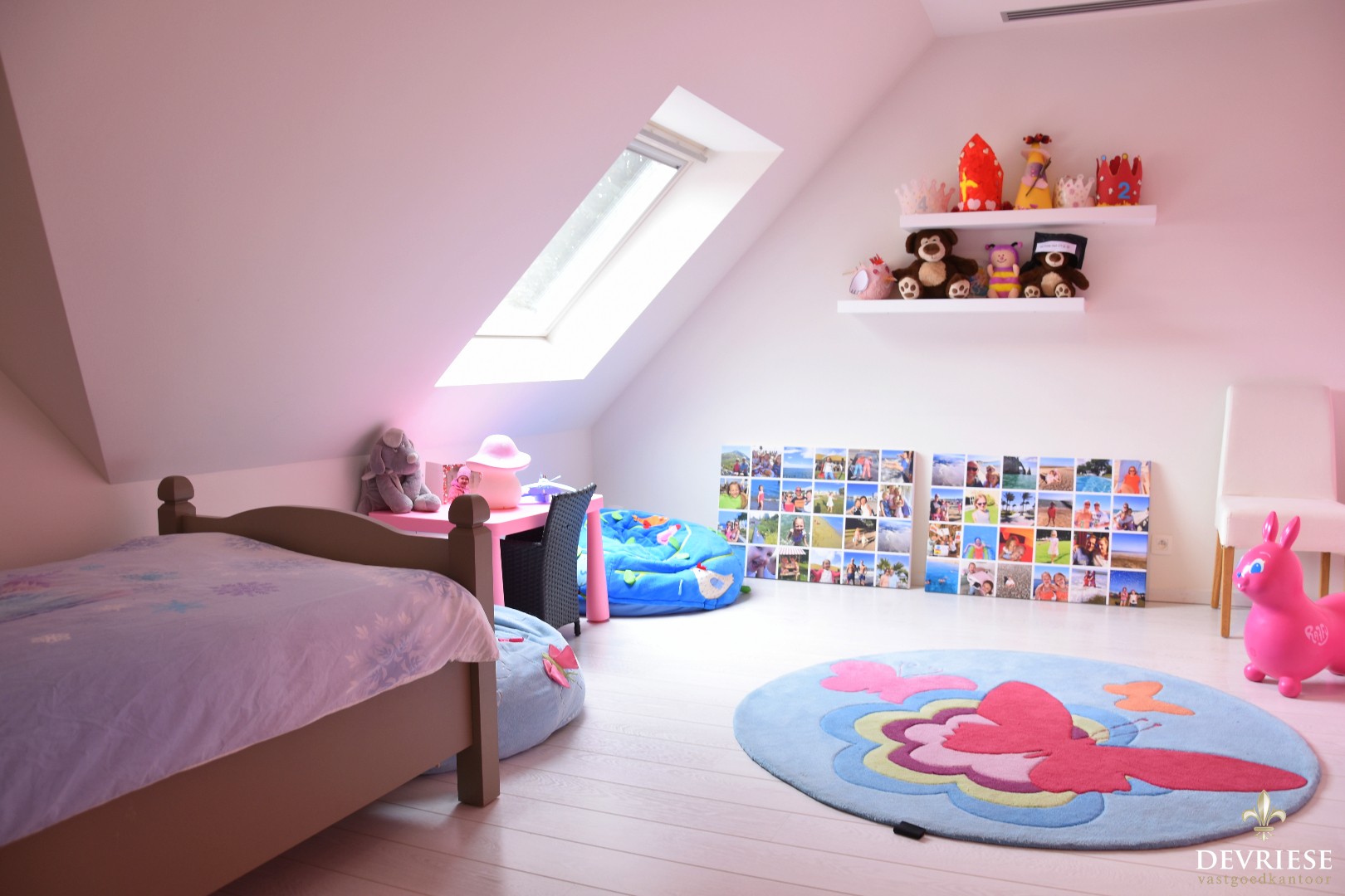 Op de eerste verdieping maar liefst 4 volwaardige slaapkamers en een extra ruimte die op vandaag dienst doet als hobby/ontspanningsruimte. Deze kan tevens gebruikt worden als vijfde slaapkamer of bureau. Op de verdieping zijn er 2 badkamers ingericht, één bereikbaar vanuit de master bedroom ... en voorzien van bad, inloopdouche, toilet en dubbele lavabo en de andere voorzien van douche en lavabo.