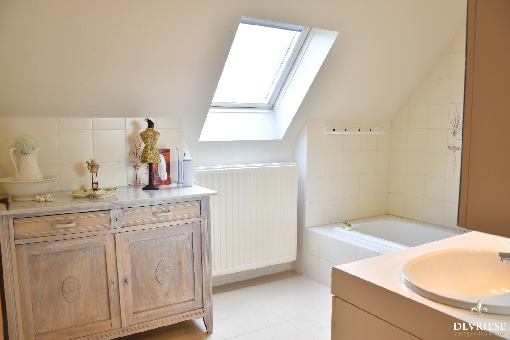 Op de bovenverdieping zijn er 4 volwaardige slaapkamers. De badkamer beschikt over een bad en dubbele lavabo. Vanop de eerste verdieping is er toegang tot het zoldergedeelte.