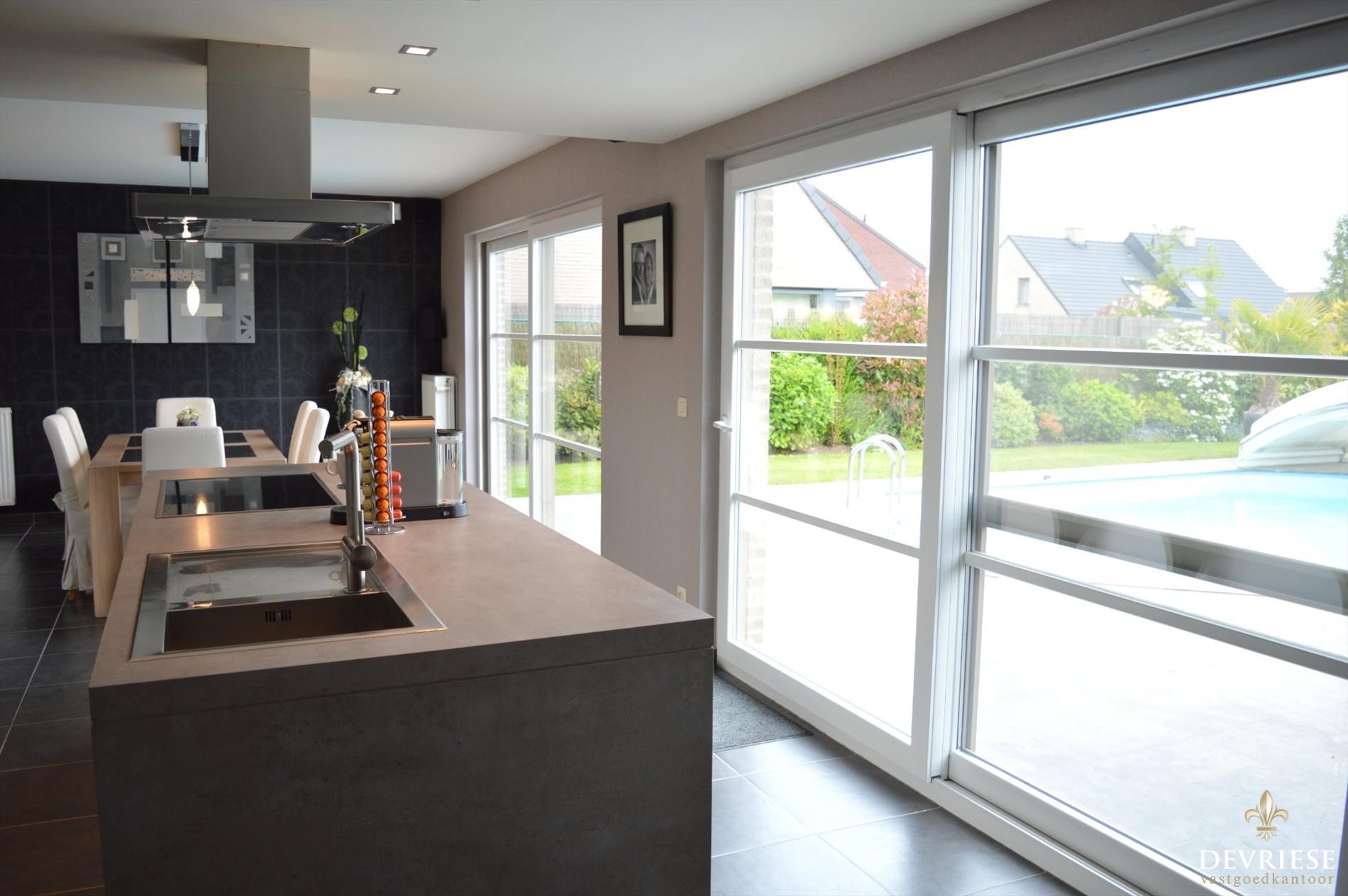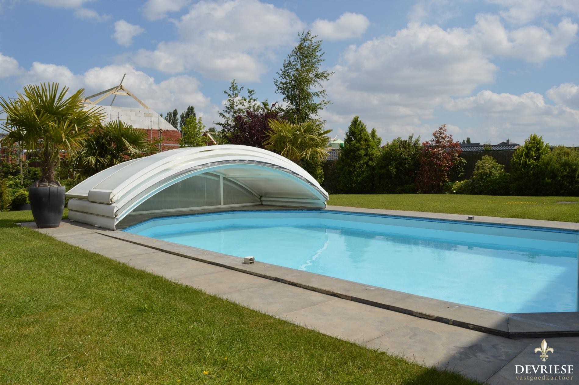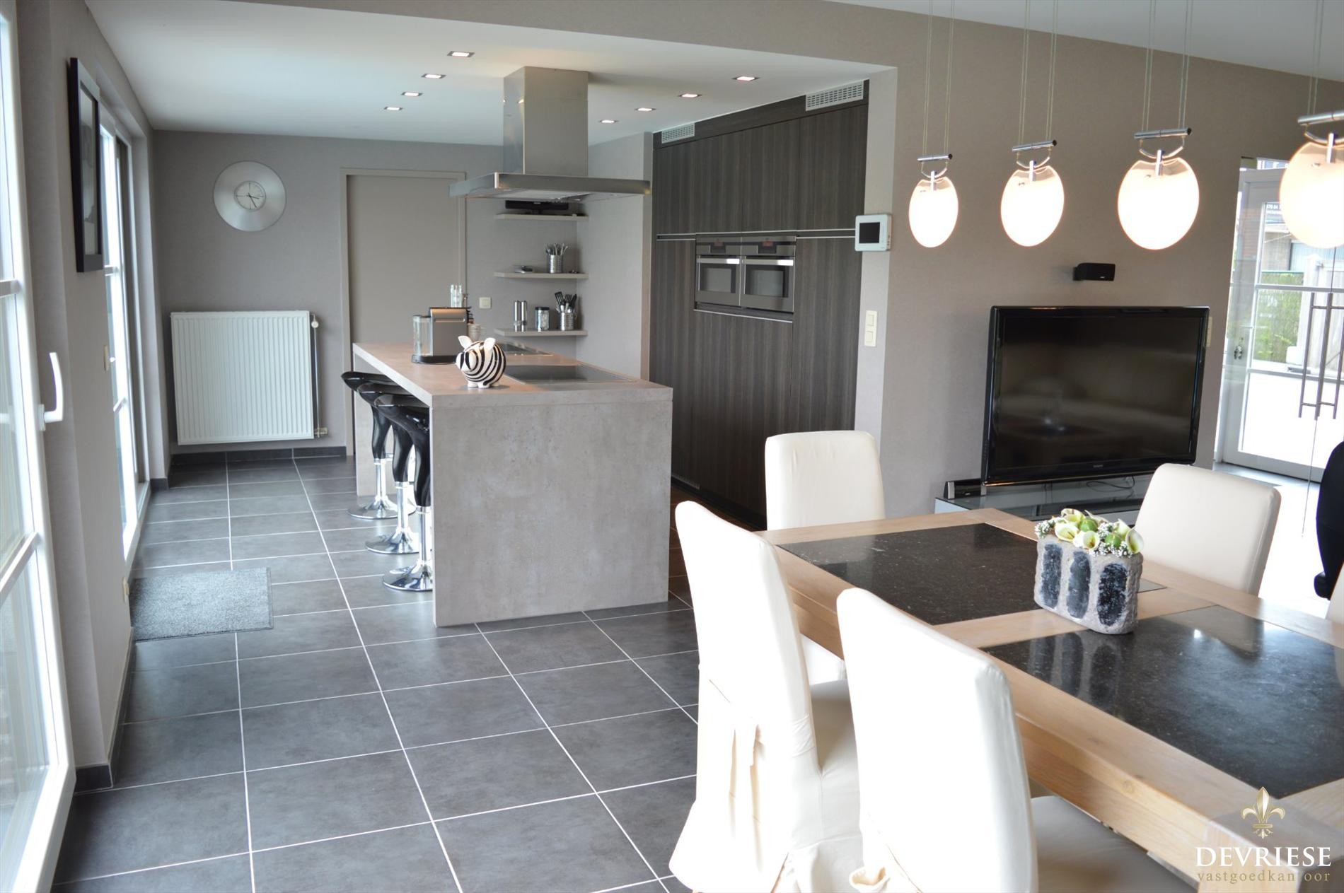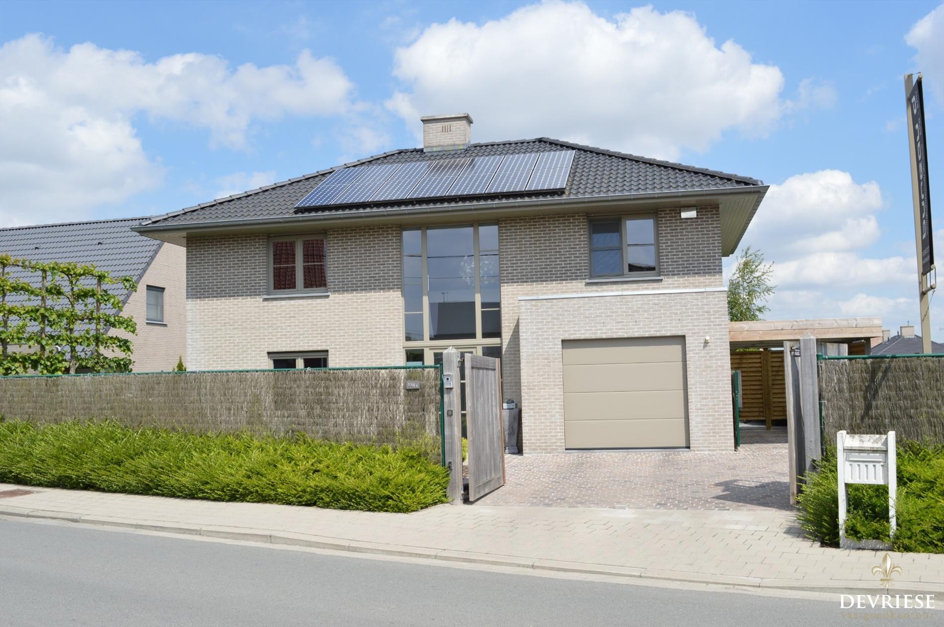 Magnifieke moderne villa met verfijnde afwerking en gebruik makende van top materialen. Al van bij het openen van de poorten doet deze woning tot de verbeelding spreken. Via de open inkomhal kom je in de ruime leefruimte die geniet van enorm veel lichtinval en aansluitend is er de kwalitatieve open keuken van waaruit je volop zicht hebt op de tuin en zwembad.