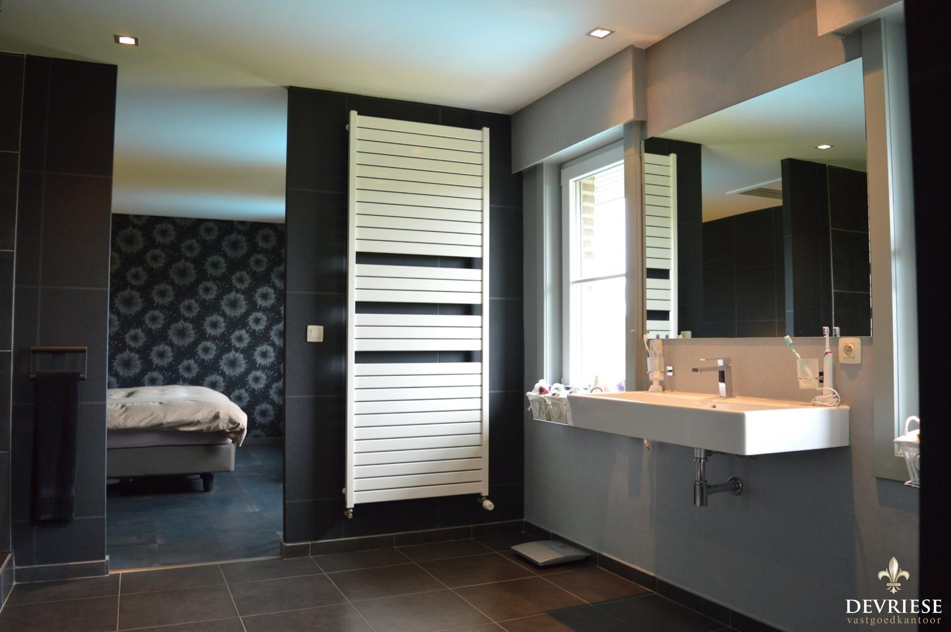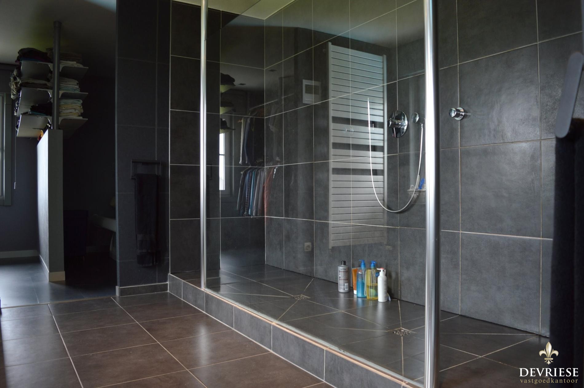 Op de eerste verdieping zijn er 3 slaapkamers (momenteel 1 als bureau ingericht) waarvan de master bedroom aansluiting heeft op de badkamer met o.a. grote inloopdouche en dan overloopt in de praktische dressingruimte.