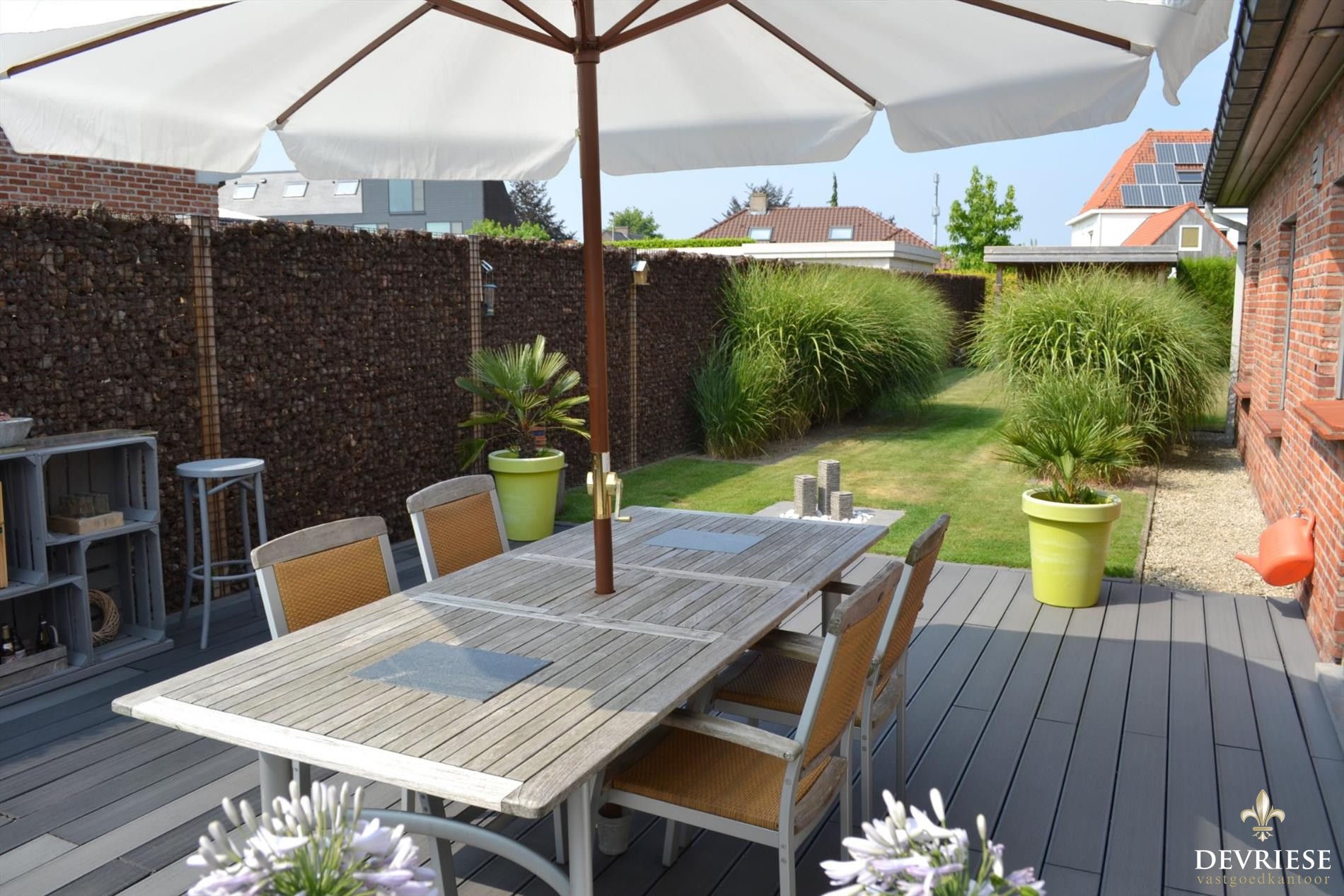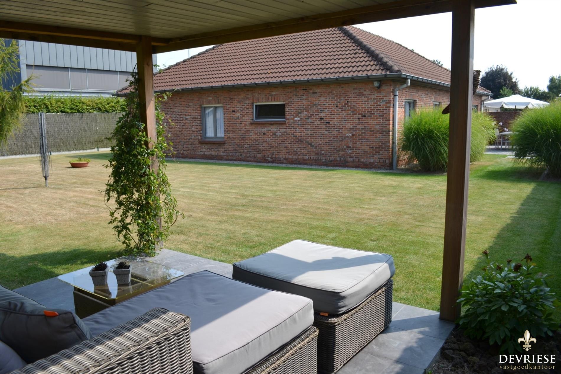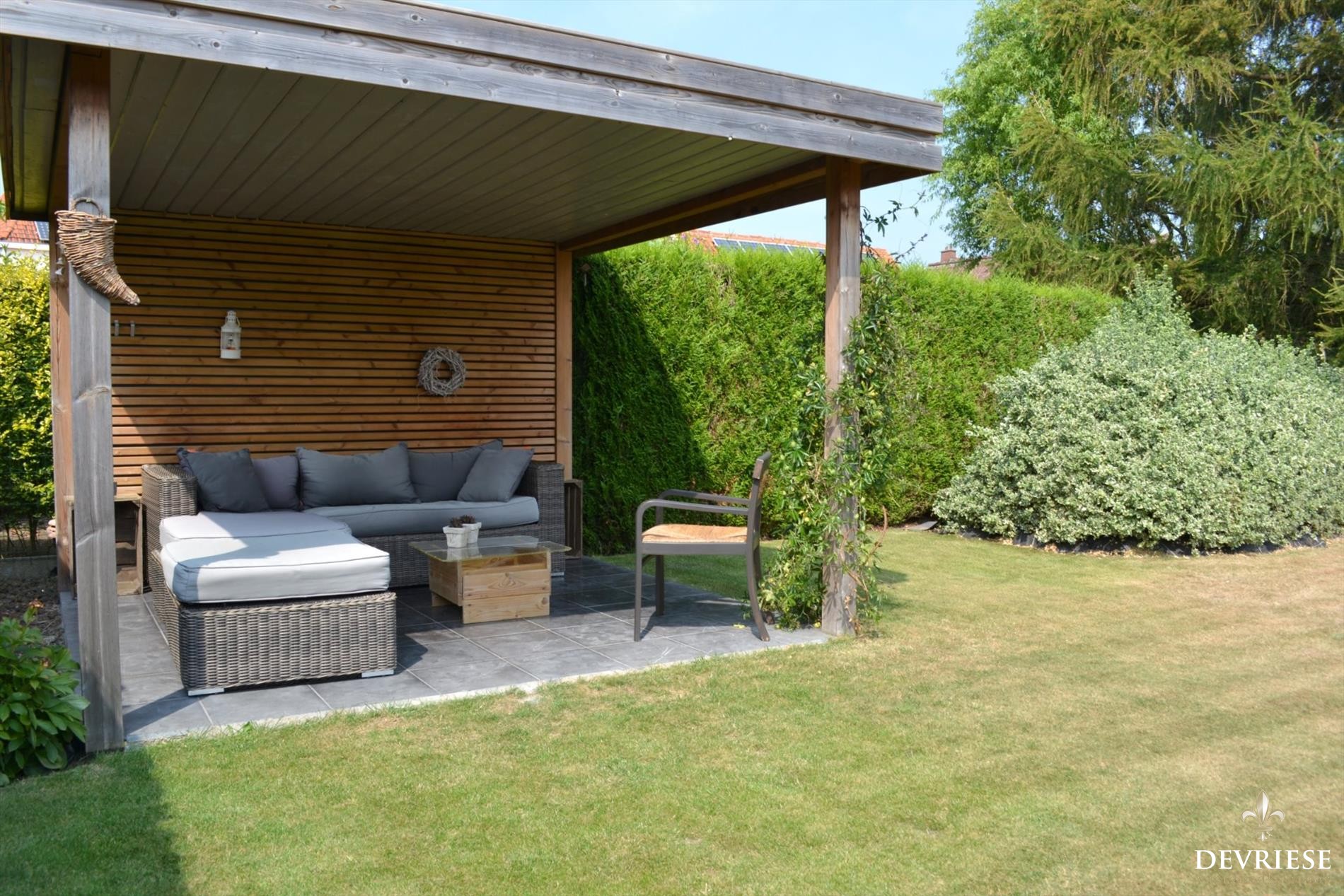 Zowel vanuit de leefruimte als vanuit de keuken is er toegang tot het prachtige zonneterras waar het enorm fijn ... genieten is. Aansluitend is er de onderhoudsvriendelijke tuin voorzien van een kwalitatieve pergola en apart ruim tuinhuis dat dienst kan doen als tweede garage.