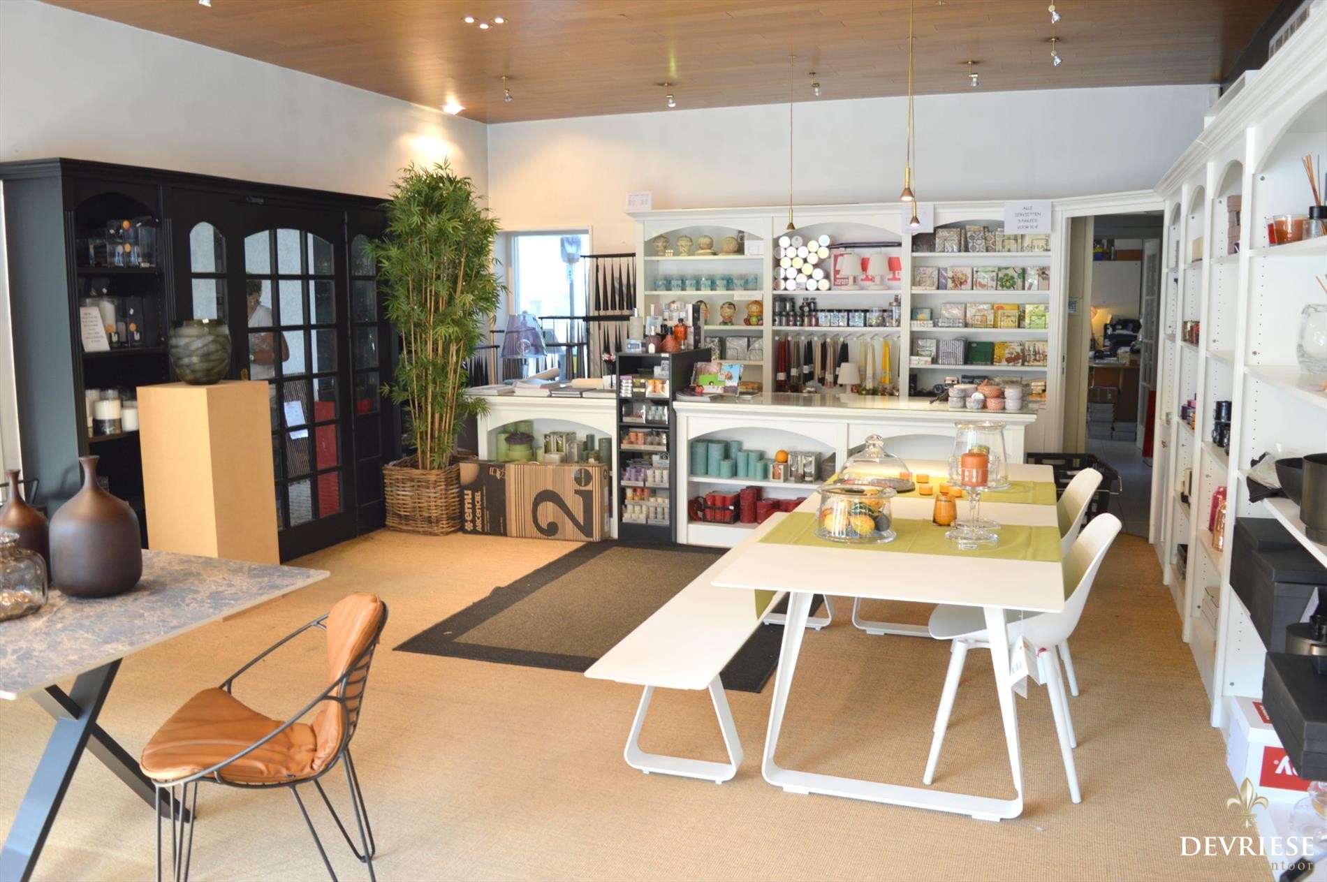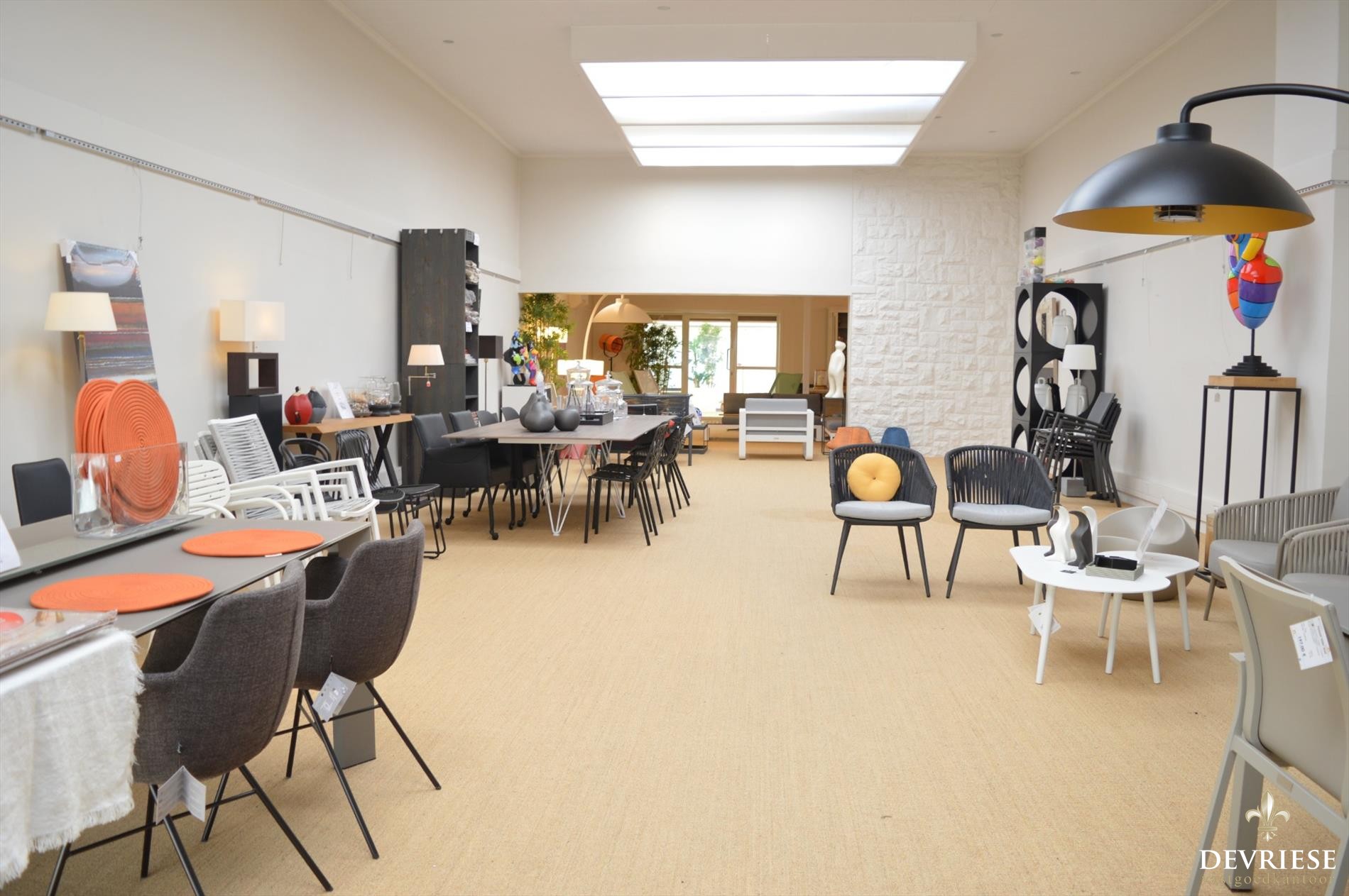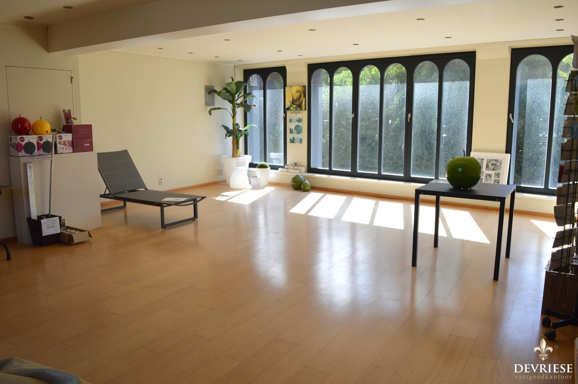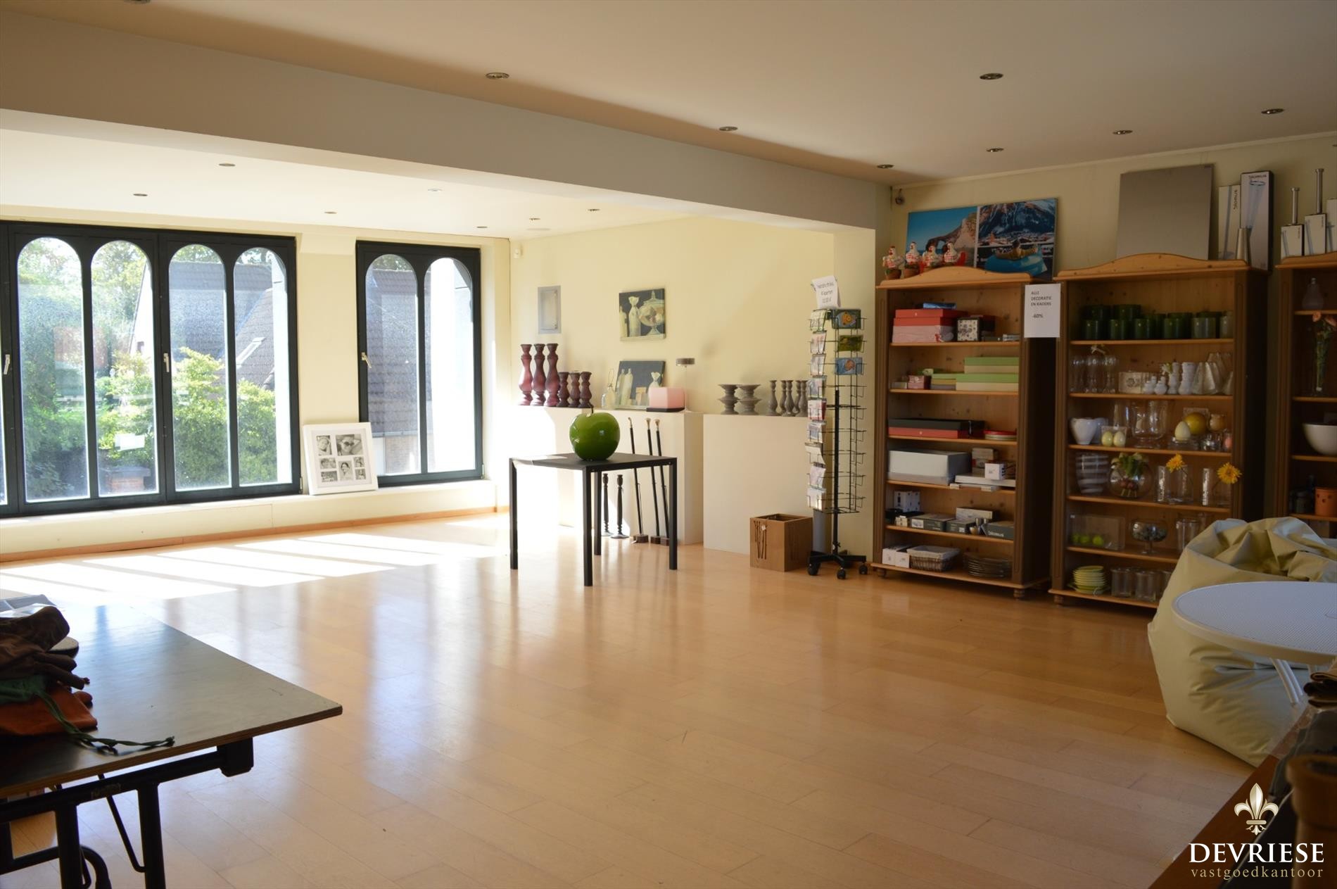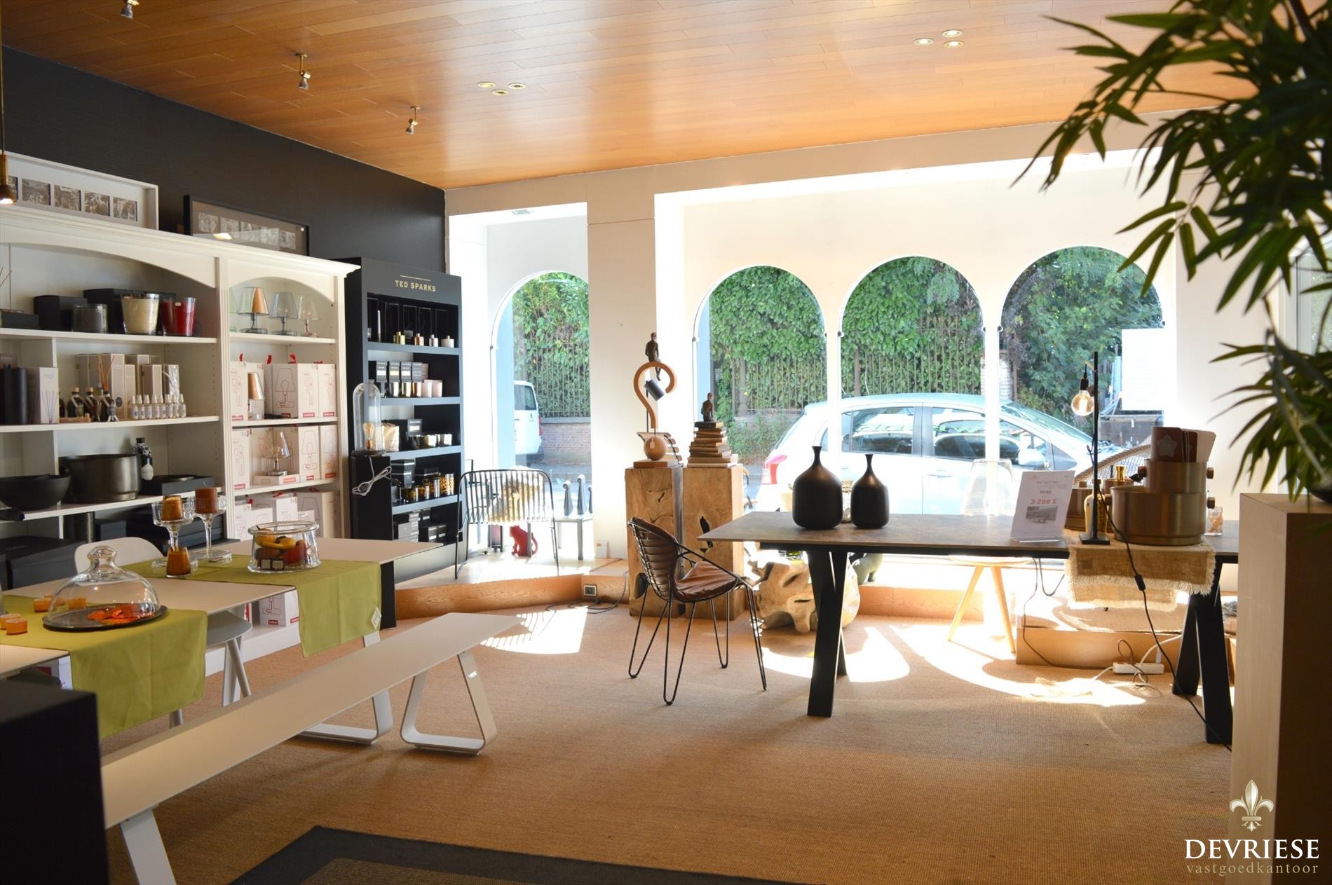 Deze eigendom biedt op vandaag heel wat ruimte voor het uitbaten van een commerciële activiteit, de combinatie woon/werk of gewoon als gezinswoning. Op vandaag is er een showroom vooraan, daarachter de bureauruimte en keuken en achteraan een showroom/stockage van een 150m² met daarbij buitenterras en tuin.
