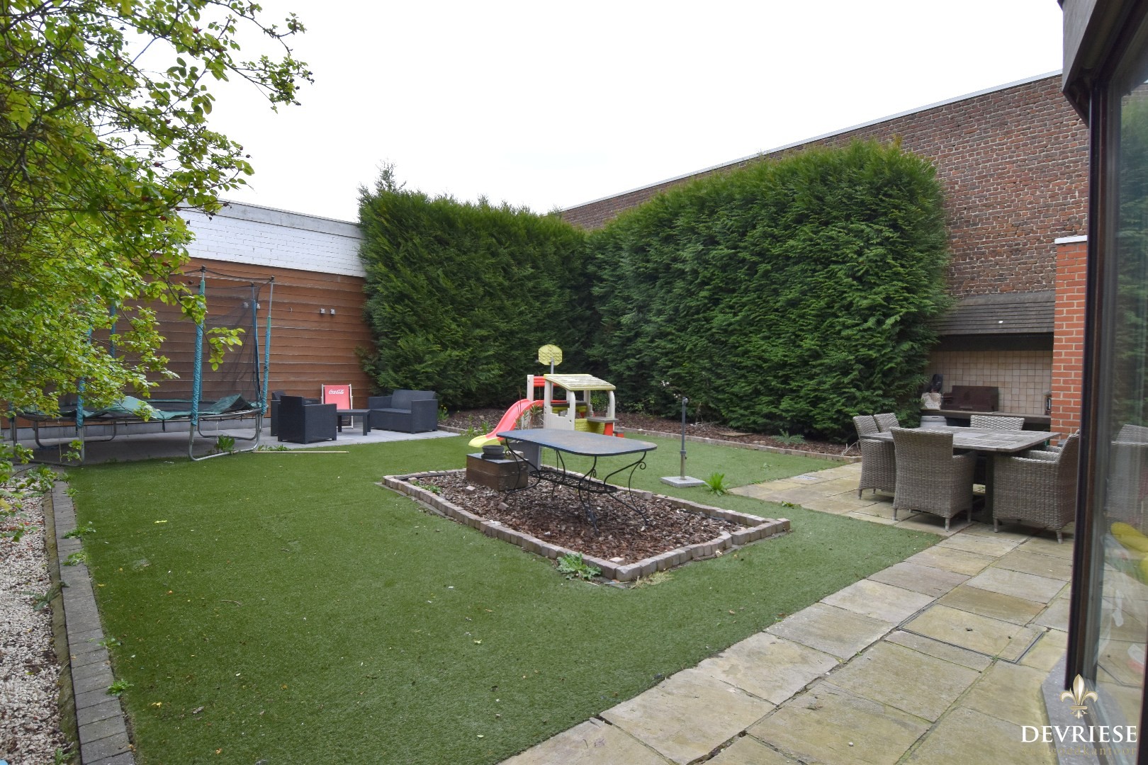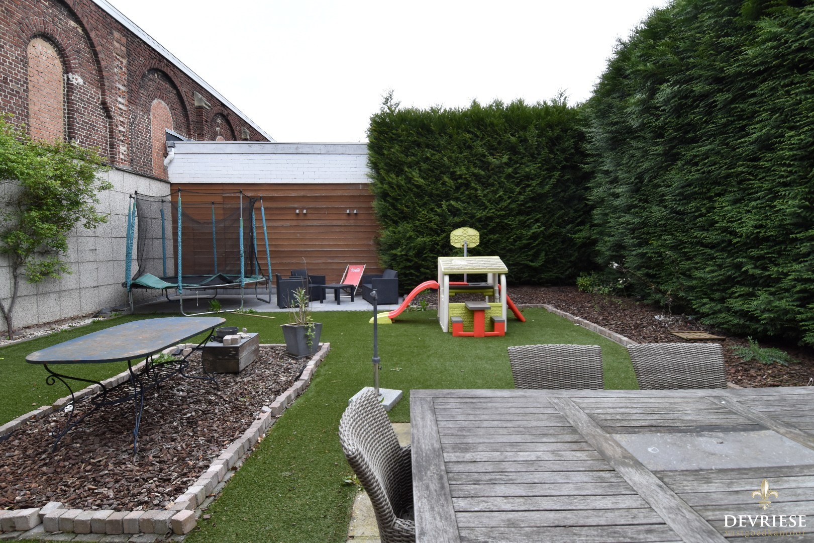 De aangename tuin met aangelegd terras vormt een fijne buitenruimte om te ontspannen.