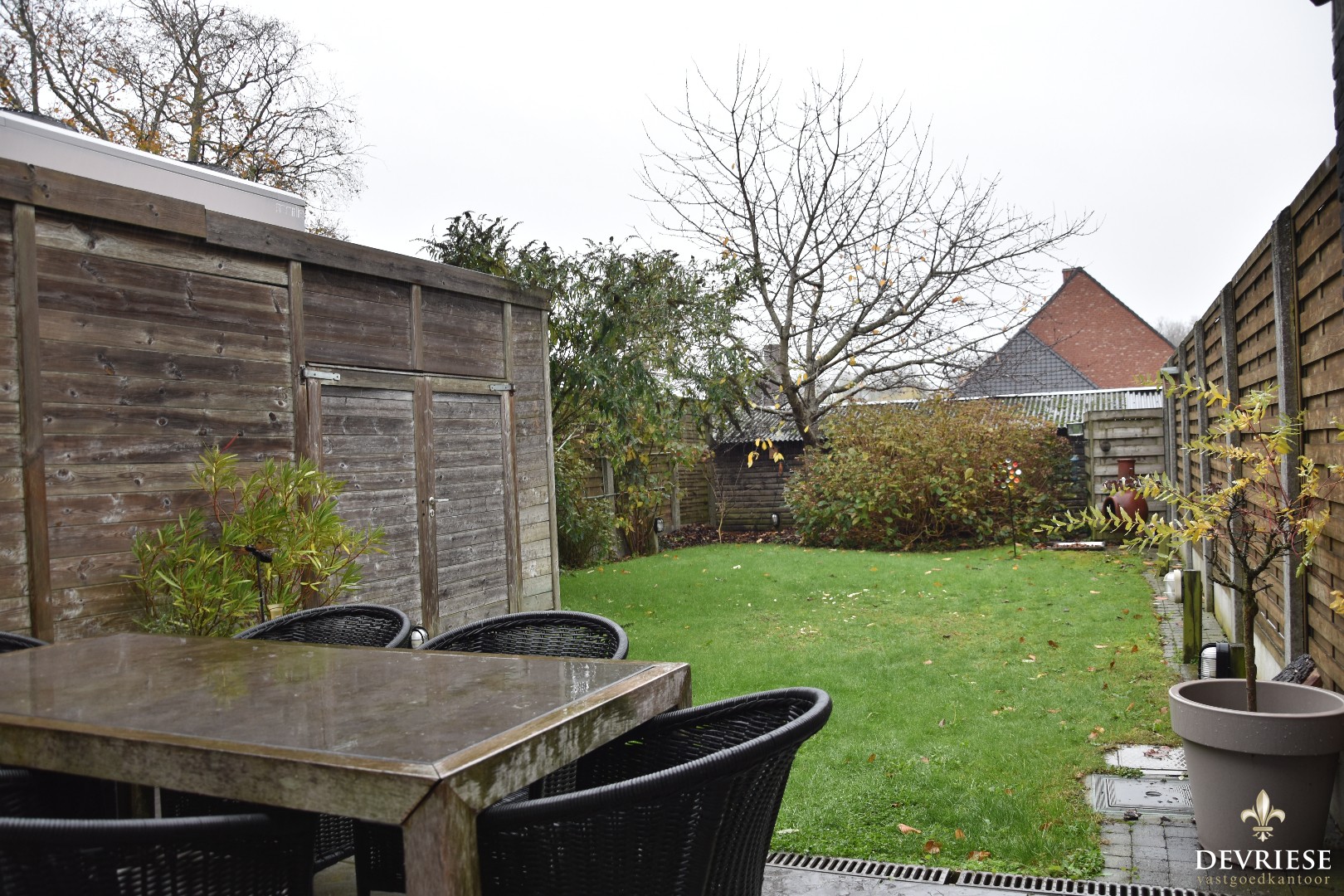 Achteraan de eigendom een charmante tuin, mét zijtoegang, heel wat privacy en extra opbergruimte.