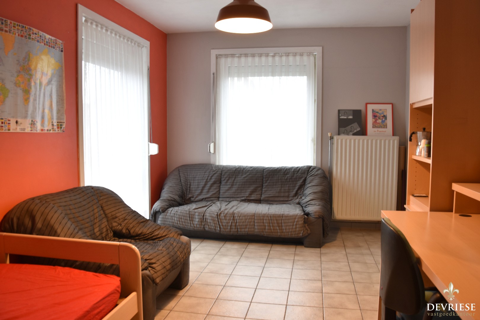 Op de bovenverdieping vinden we een instapklaar woongedeelte, toegankelijk via een aparte inkomhal.