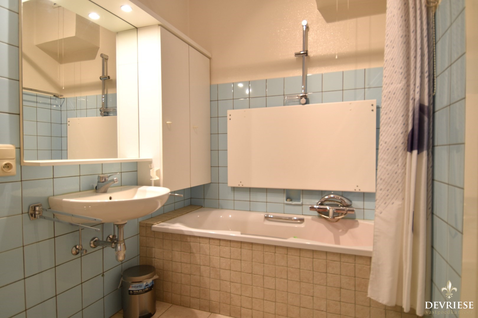 Op het gelijkvloers vindt u ook de badkamer, uitgerust met een toilet, ligbad en lavabo.