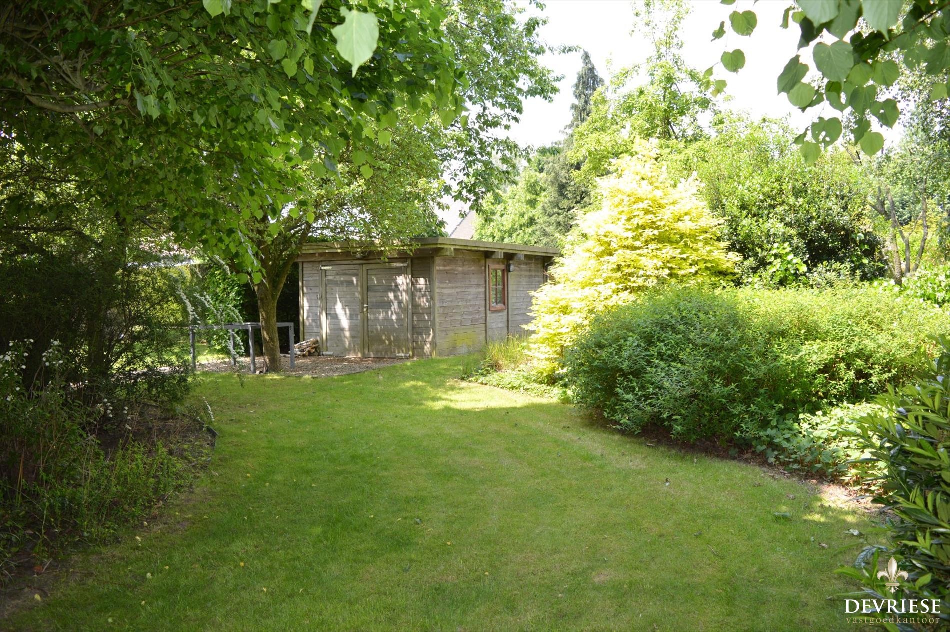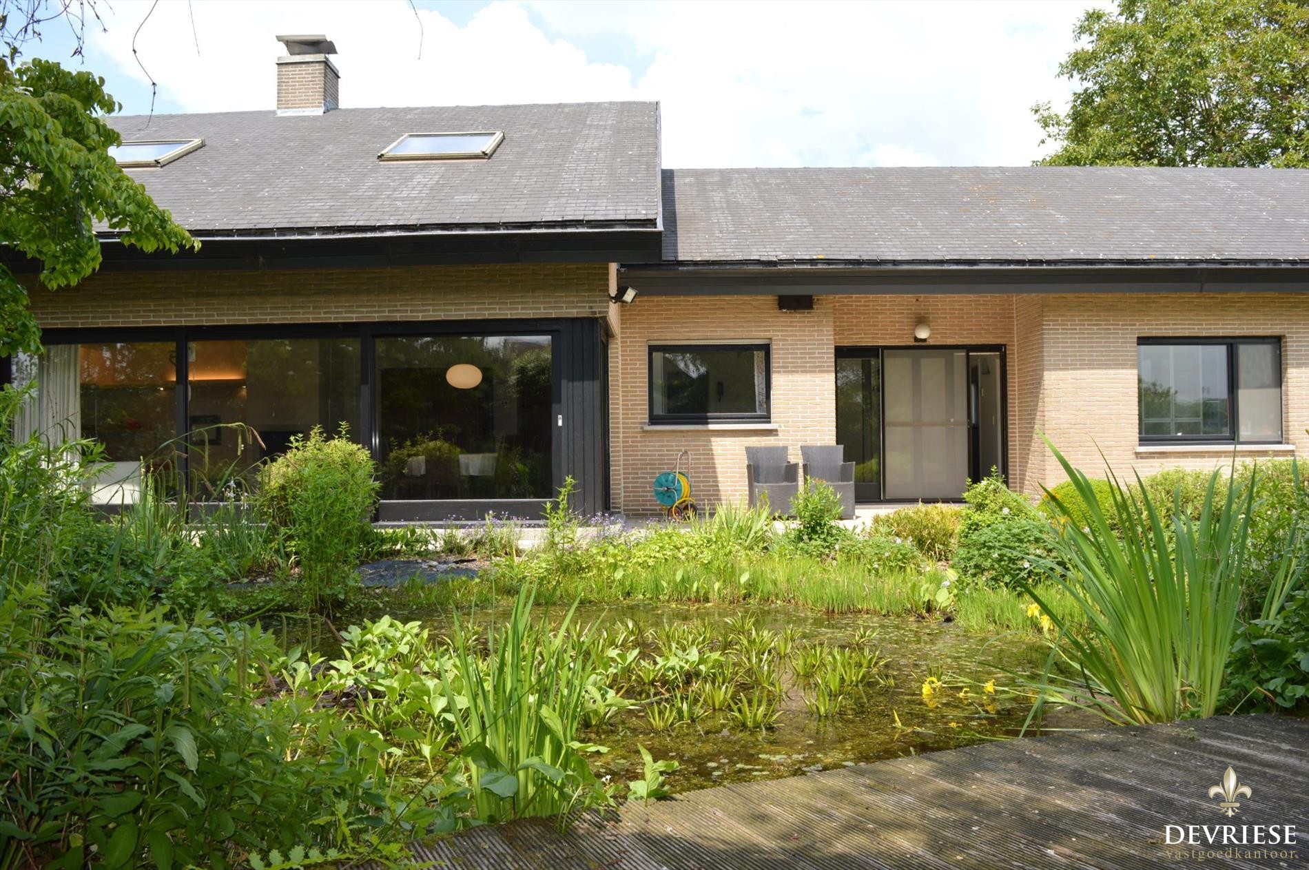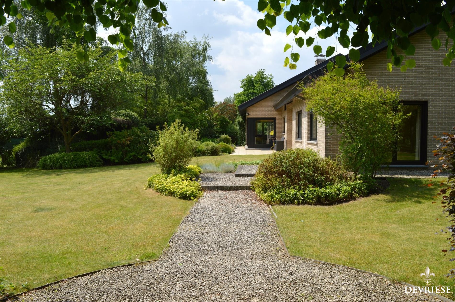 Dé smaakmaker van deze eigendom is ongetwijfeld de uitgestrekte tuin, schitterend onderhouden en speels opgedeeld met paadjes, borders, open groene ruimtes, meerdere terrasjes waar het fantastisch genieten is en een mooie vijver die voor wat extra leven in de tuin zorgt.