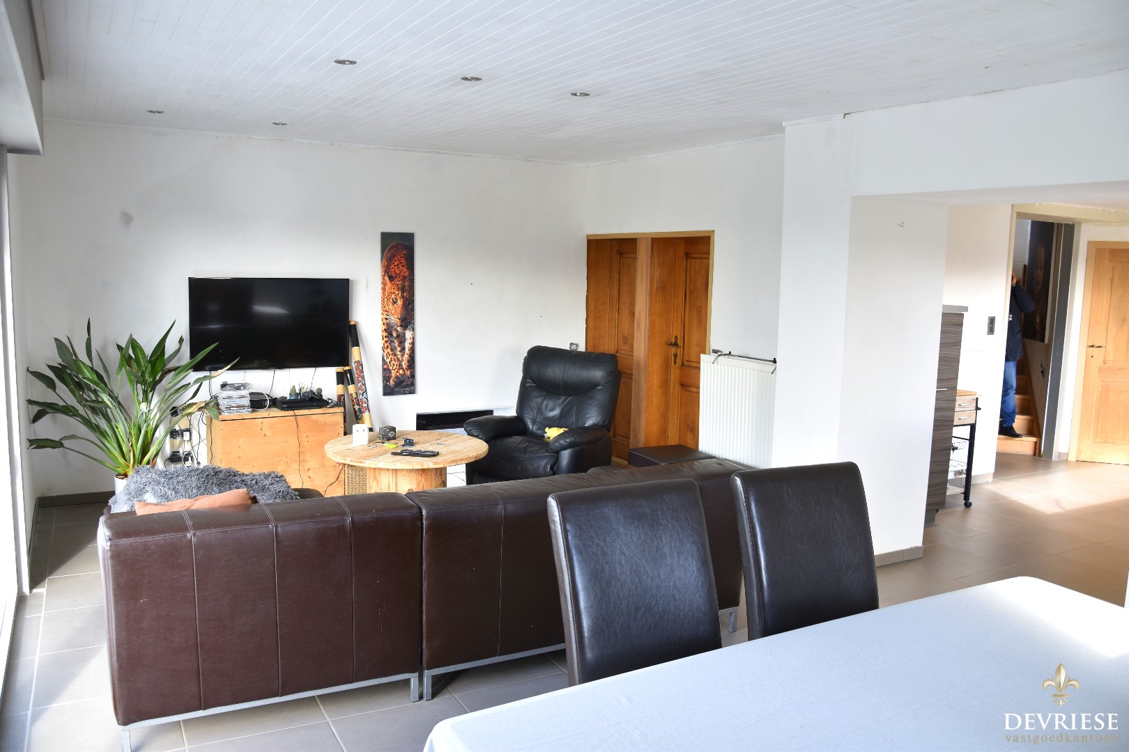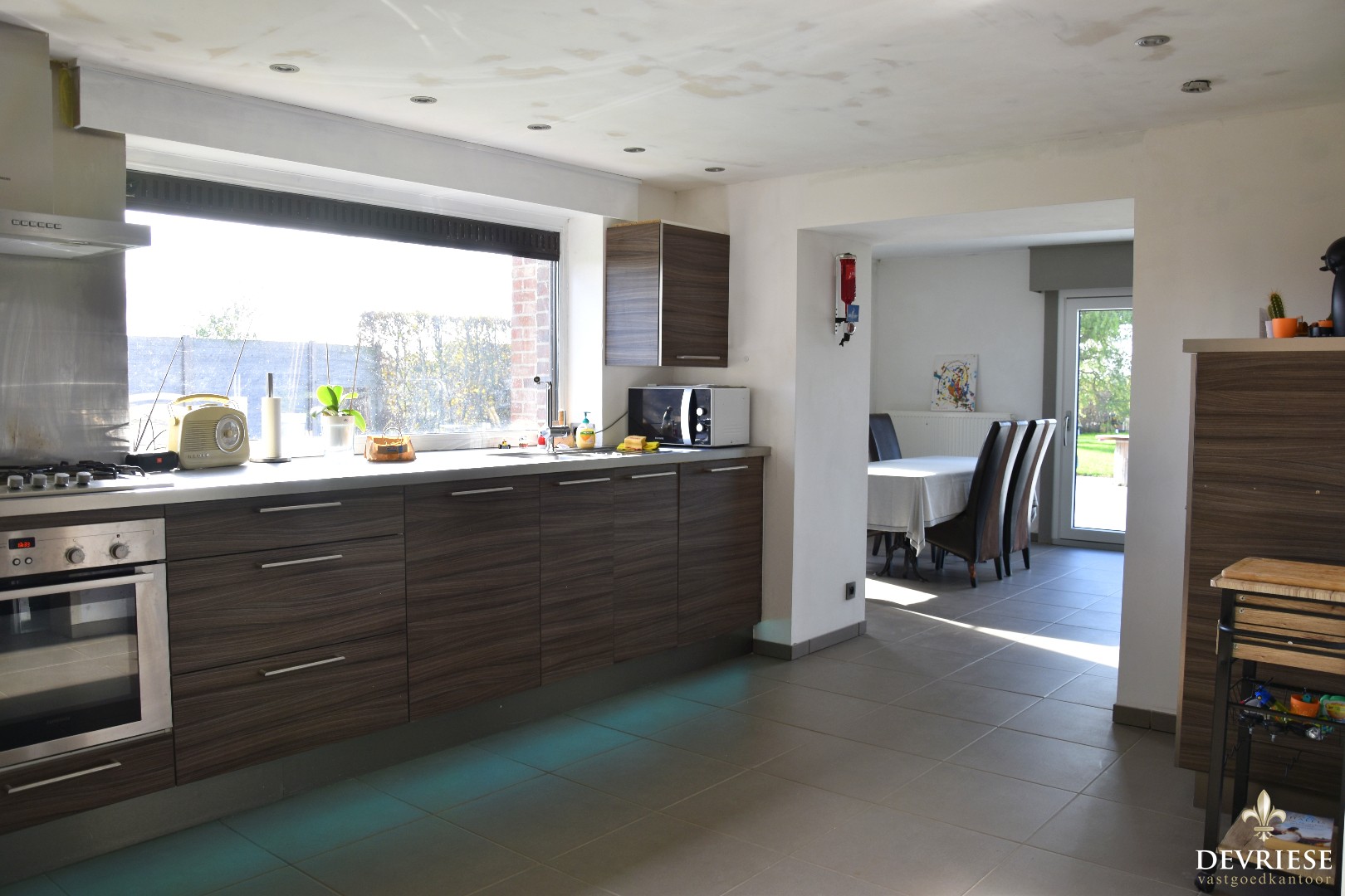 Een aparte en ruime inkomhal met gastentoilet. Daarnaast rechtstreekse toegang tot de ingerichte keuken met daarachter de leefruimte. Van hieruit geniet u volop van de lichtinval en het mooie zicht.