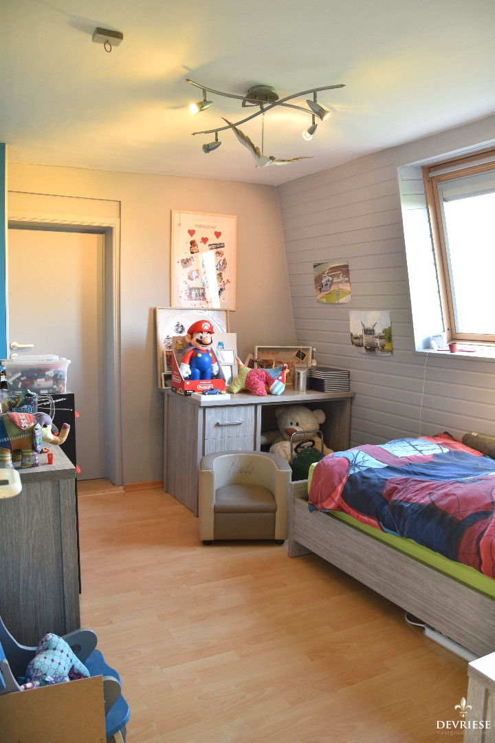 3 volwaardige slaapkamers en de badkamer met bad, douche en tweede toilet op de verdieping. Naast 1 van de slaapkamers is er een ruime bergruimte voorzien, die verder ingericht kan worden als bureau- of hobbyruimte.