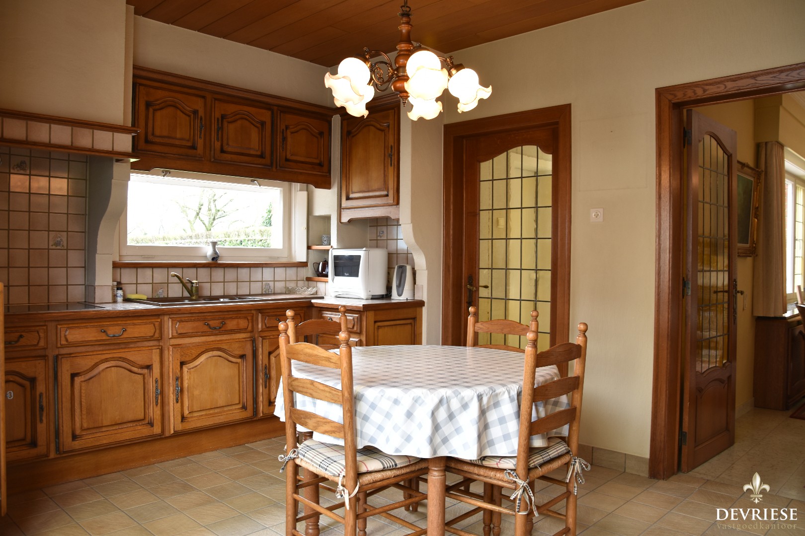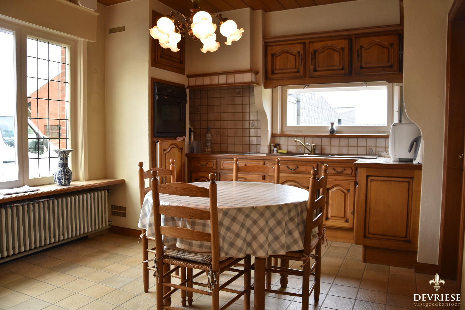 De smaakvol ingerichte leefruimte geniet van uiterst veel lichtinval en zorgt meteen voor een aangenaam thuisvgevoel. Aansluitend vinden we een geïnstalleerde keuken die veel charme uitstraalt met bijhorende eetplaatsvoorziening.