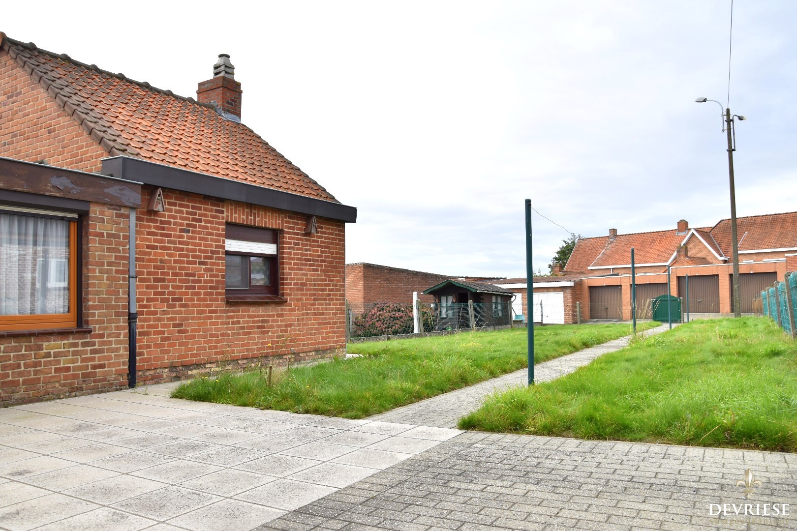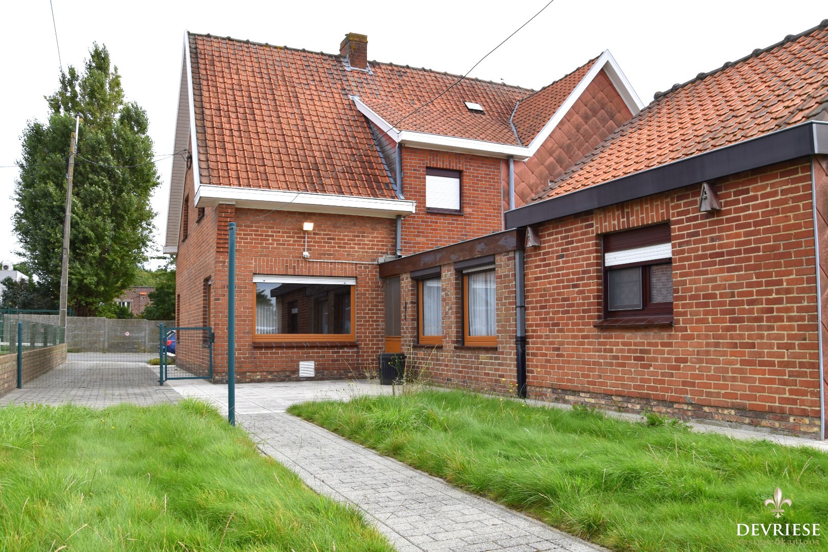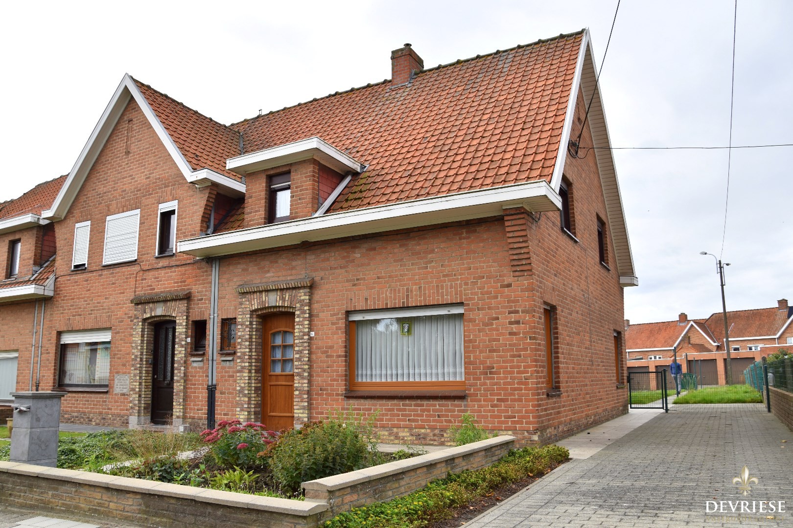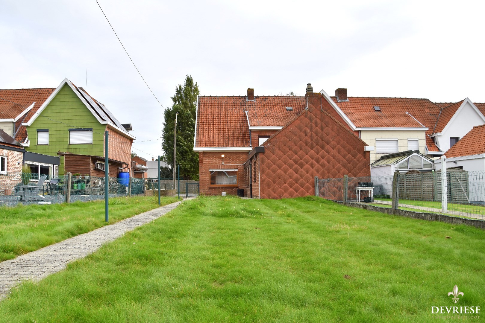 West-georiënteerd perceel met rechtstreekse toegang tot de tuin via de rechterkant van de woning.