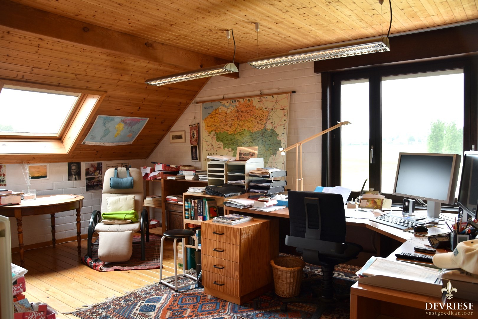 Geïntegreerde bureauruimte met maatkasten.
