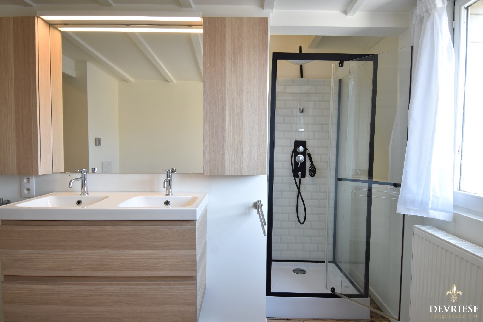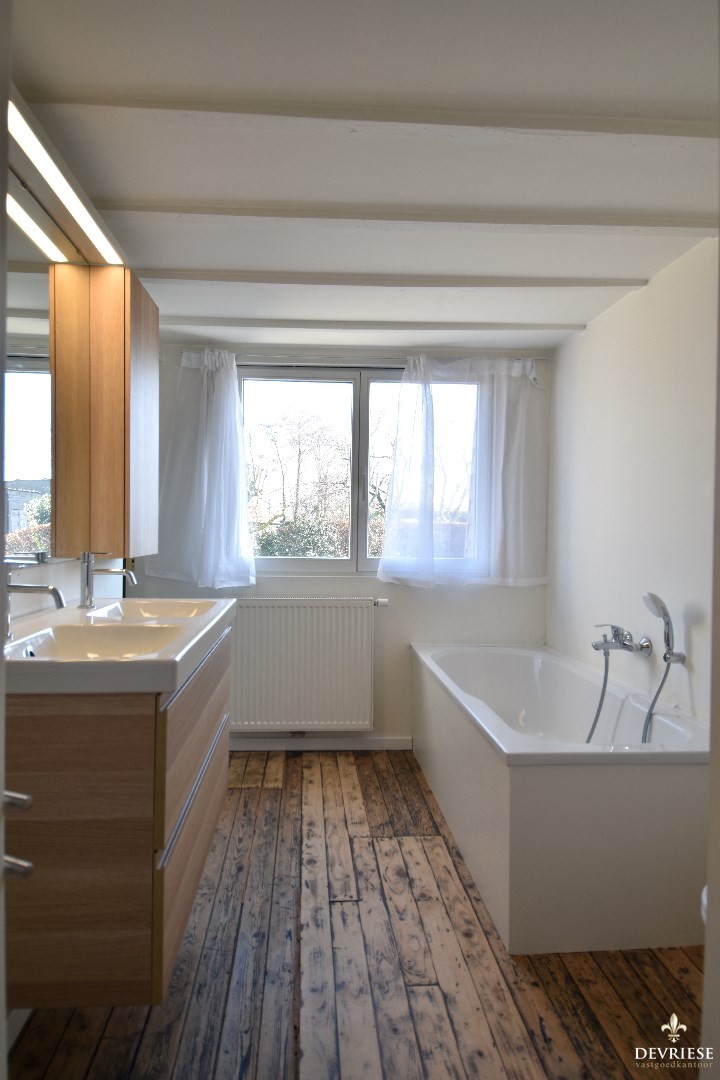 Op de eerste verdieping zijn er 3 volwaardige slaapkamers. De moderne badkamer is uitgerust met een douche, dubbel lavabomeubel én een ligbad. Aan comfort dus geen gebrek.