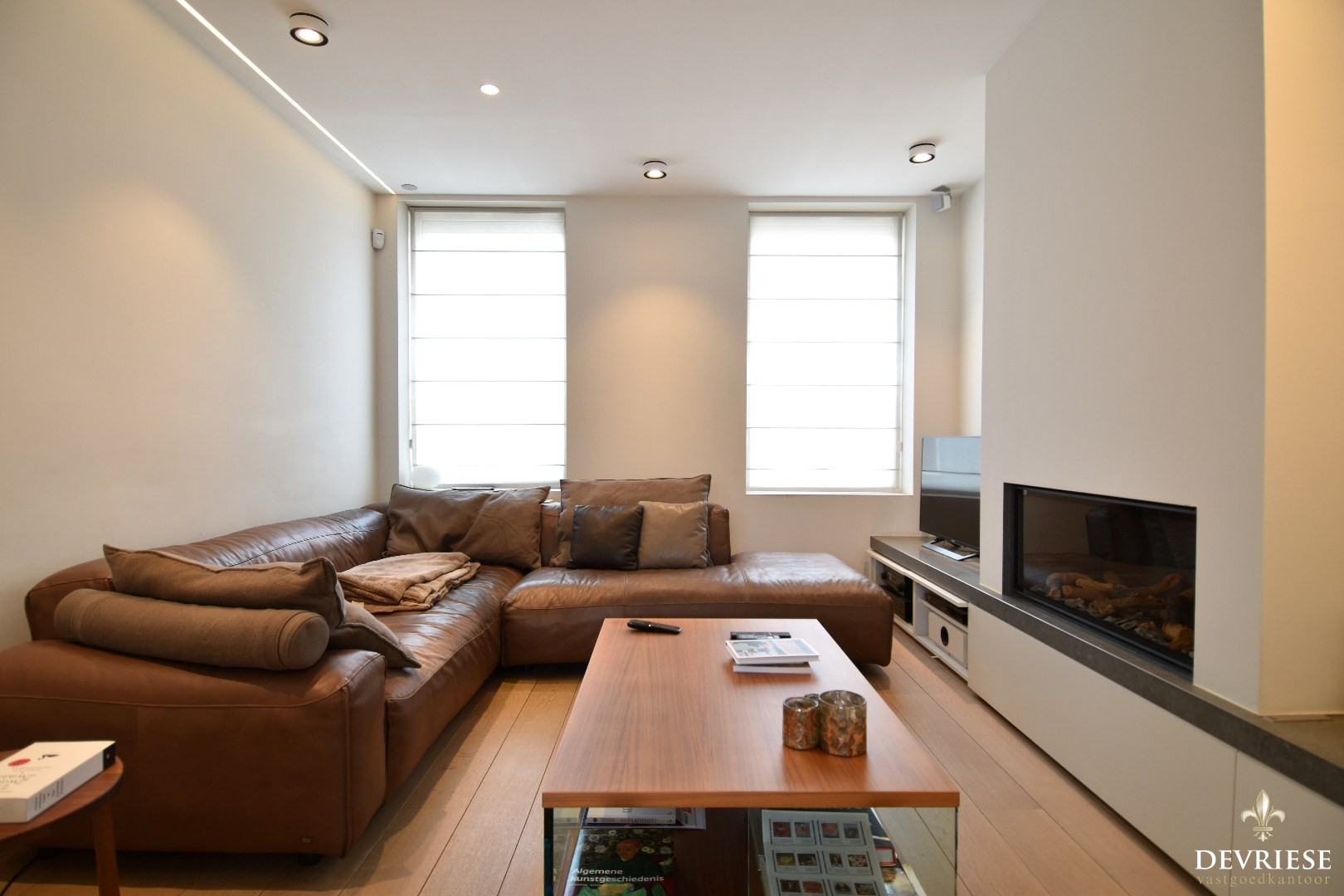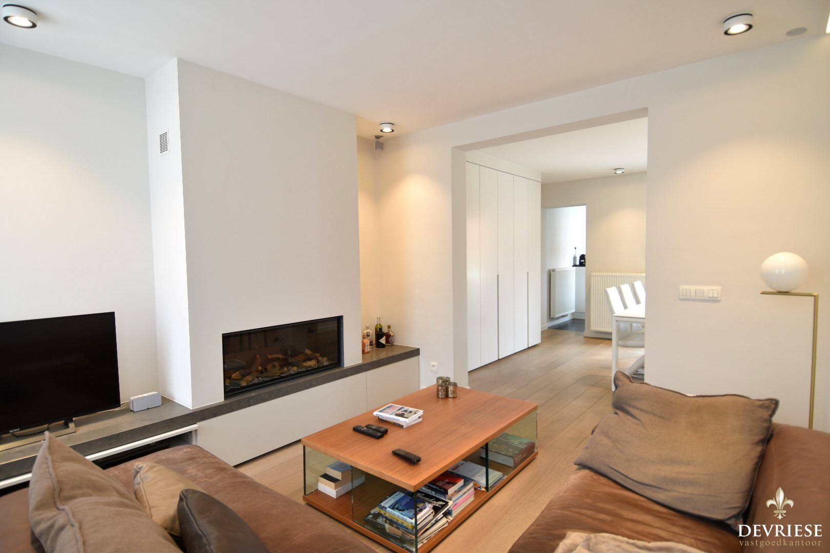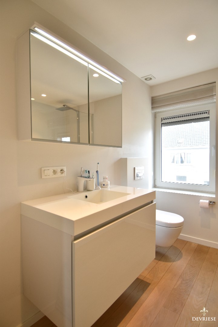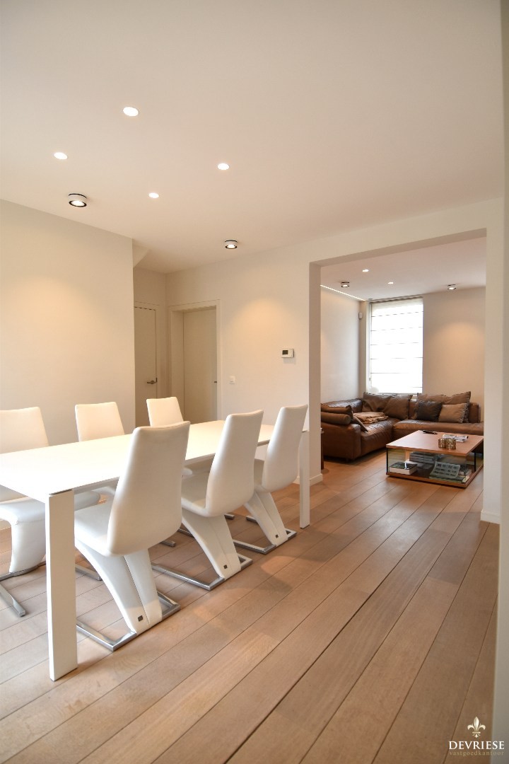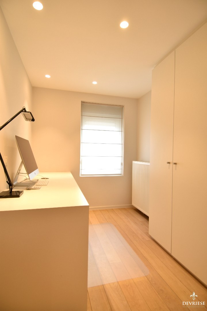 De woning is bovendien voorzien van ingemaakte kasten, parketvloeren en subtiele indirecte verlichting, wat zorgt voor een ... warme en afgewerkte uitstraling.
