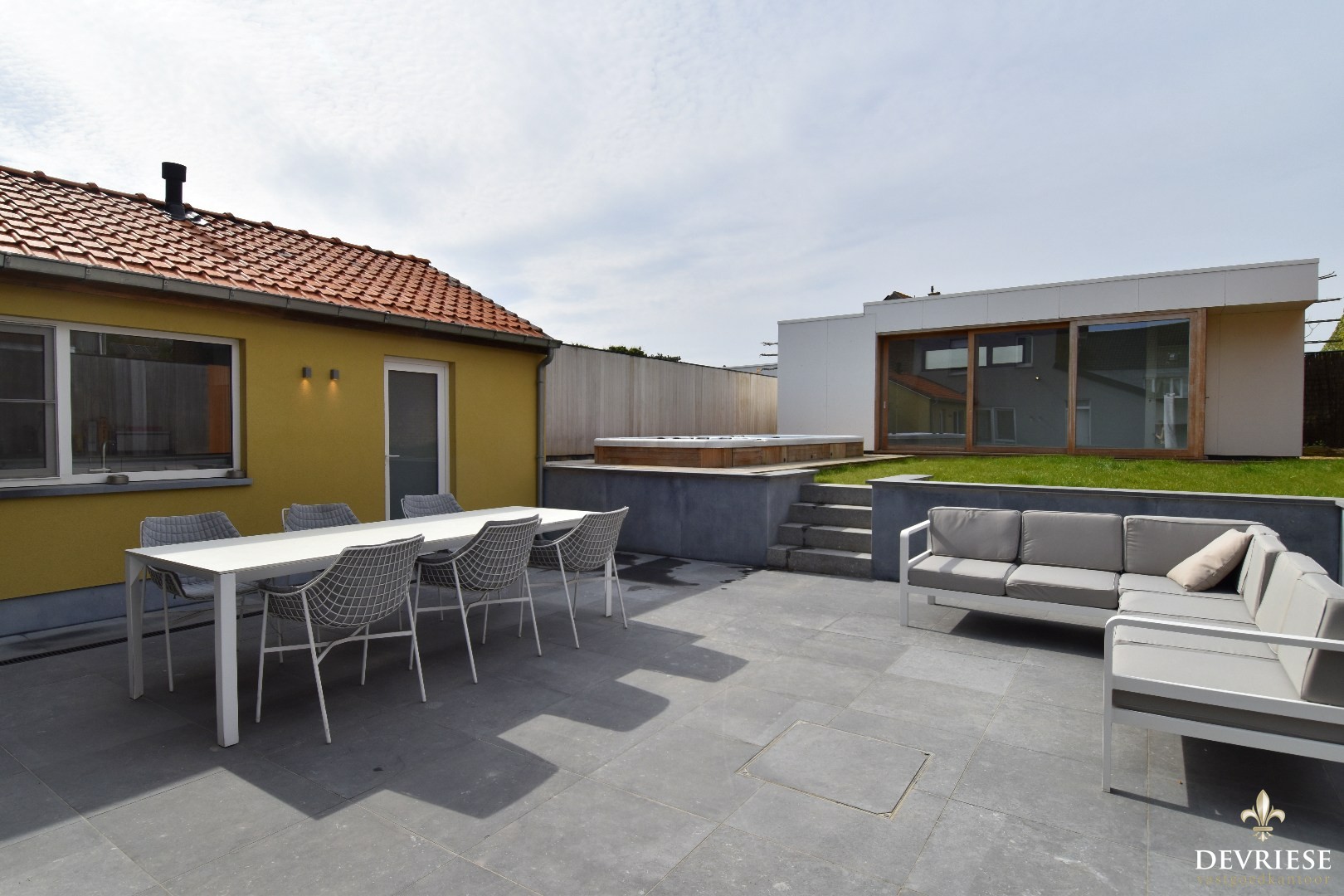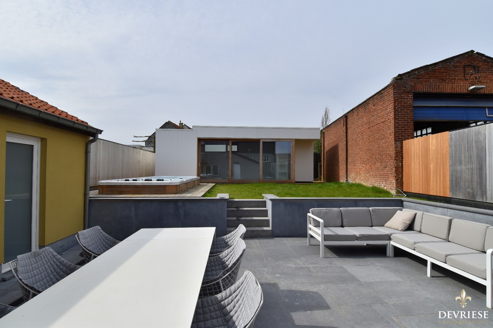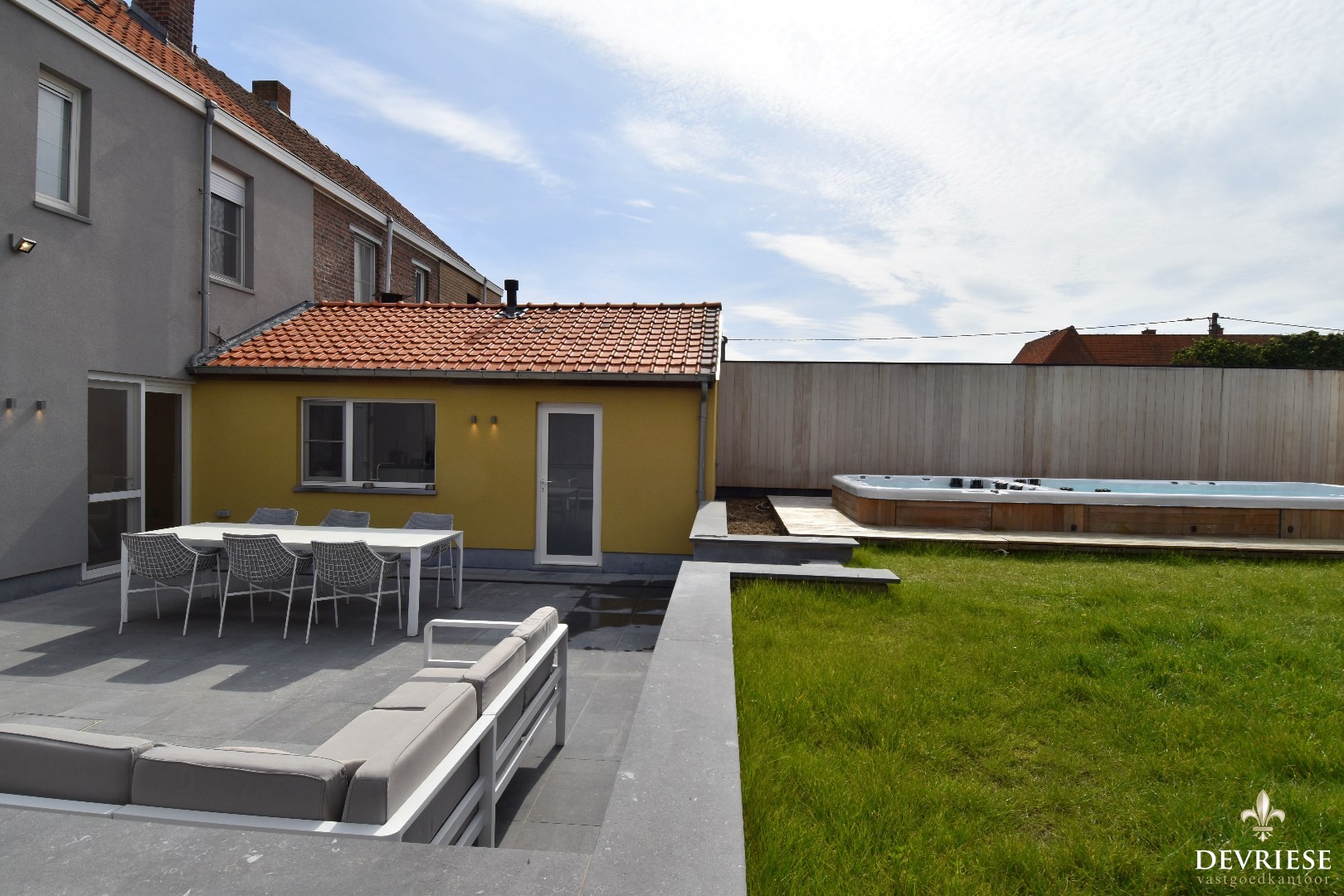 Ook buiten is het volop genieten. De fraai aangelegde tuin beschikt over een ruim zonneterras, een zalige swimspa met jacuzzi-gedeelte en een gloednieuw poolhouse met apart sanitair.