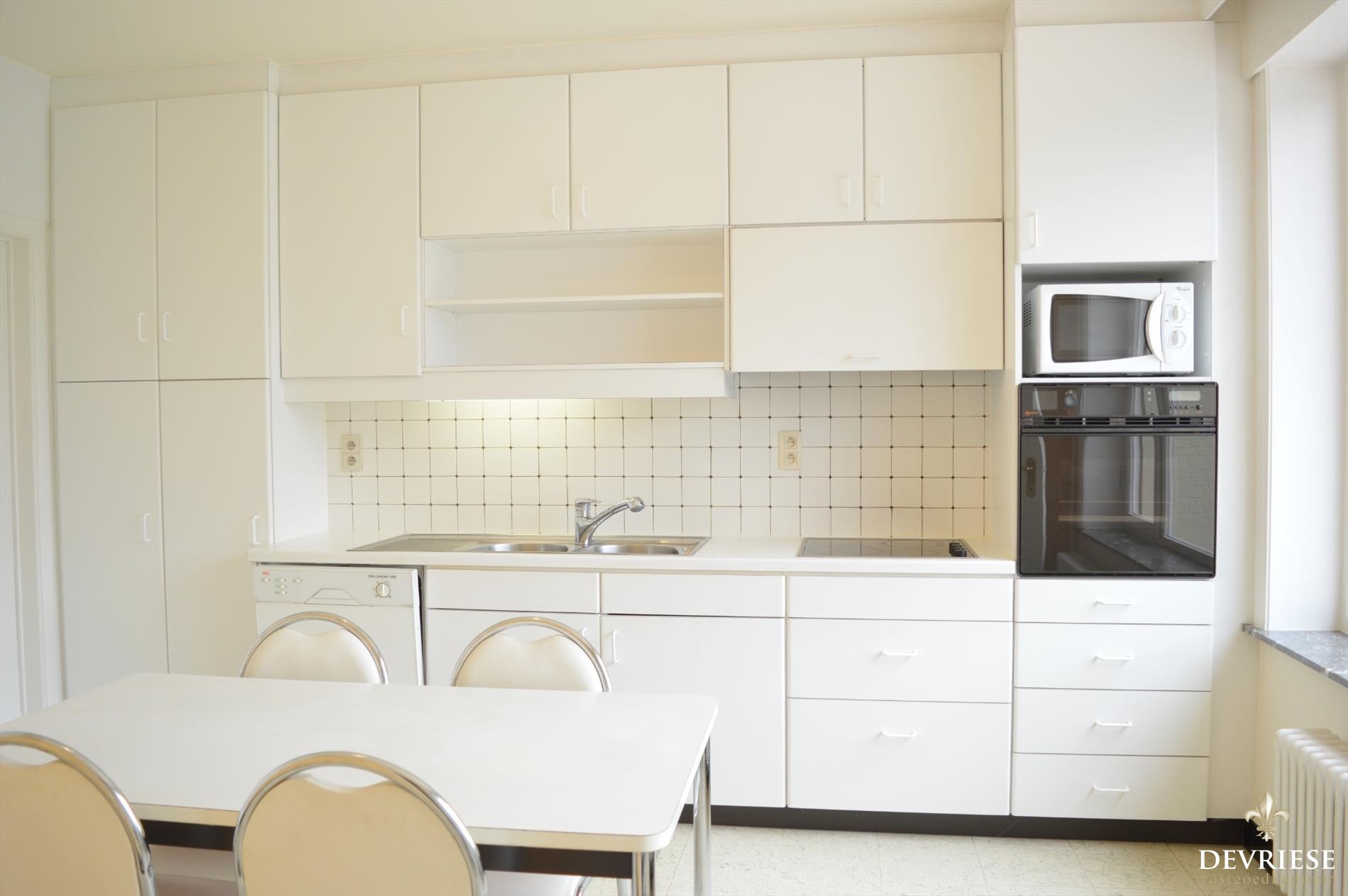 Aansluitend is er de leefkeuken met zicht op de tuin en aanpalende veranda waar u op elk moment kan genieten van de zon. Tevens heeft u er ook toegang tot de garage met elektrische poort en wasruimte.