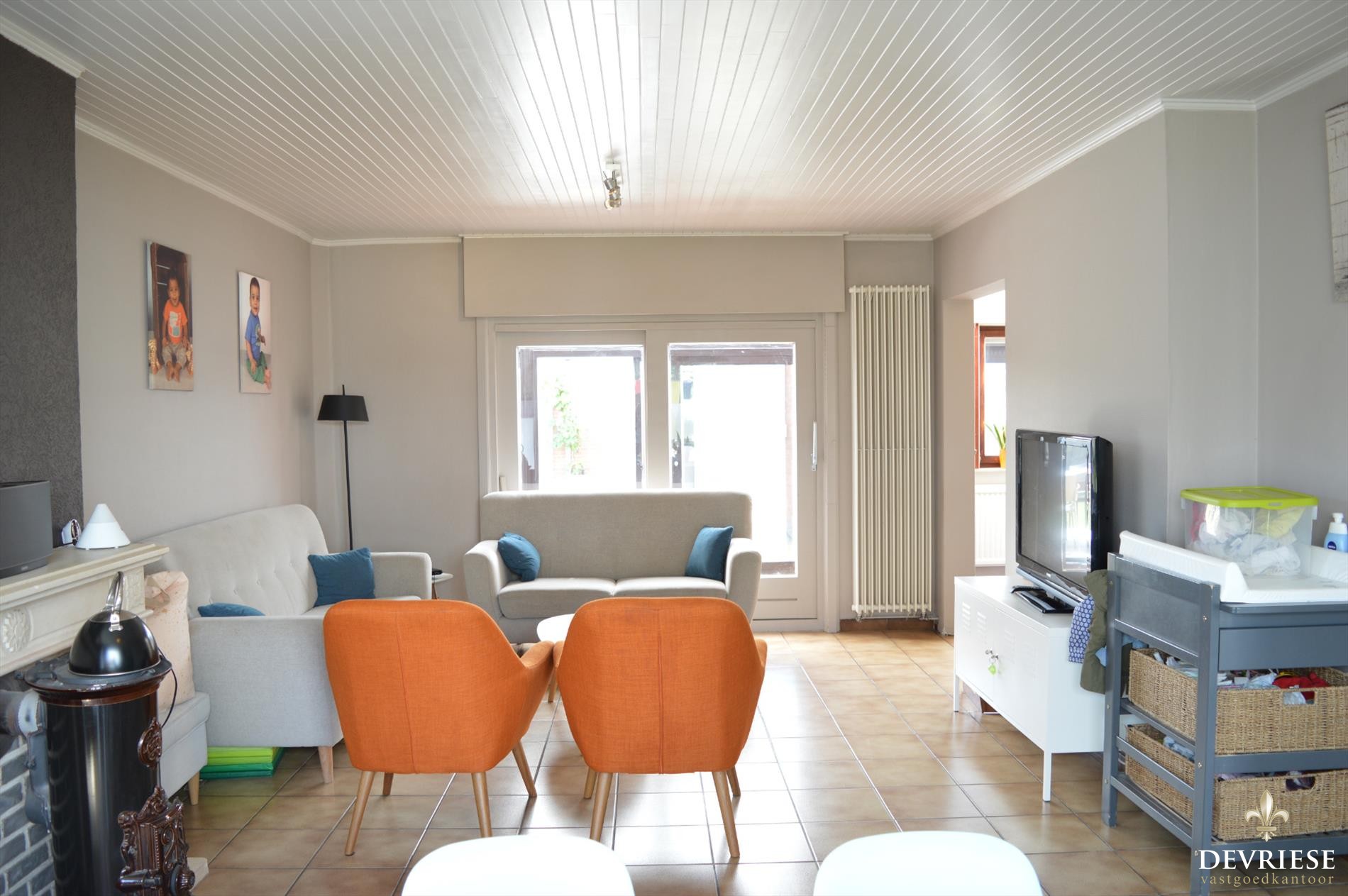 We komen binnen via de aparte inkomhal met gastentoilet. De woonkamer en keuken genieten beide veel lichtinval en kijken uit op de tuin . De veranda biedt extra leef-/speelruimte en is zeker een meerwaarde.