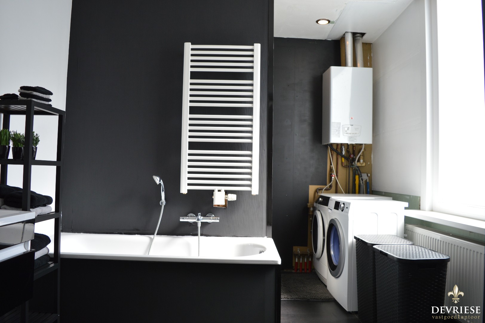 Vooraan de woning bevindt zich de badkamer met ligbad en inloopdouche, met daarnaast het aparte gastentoilet.