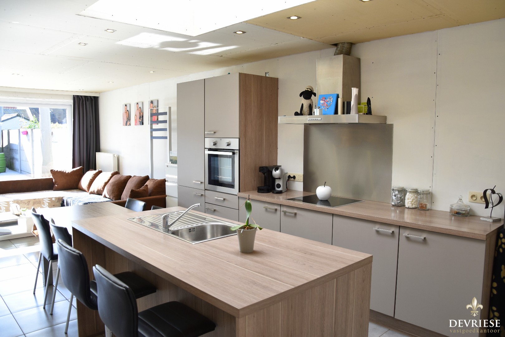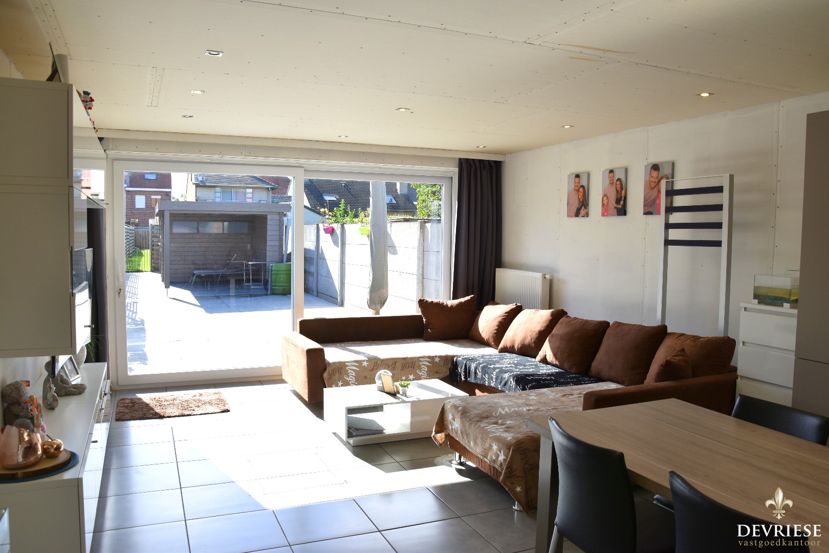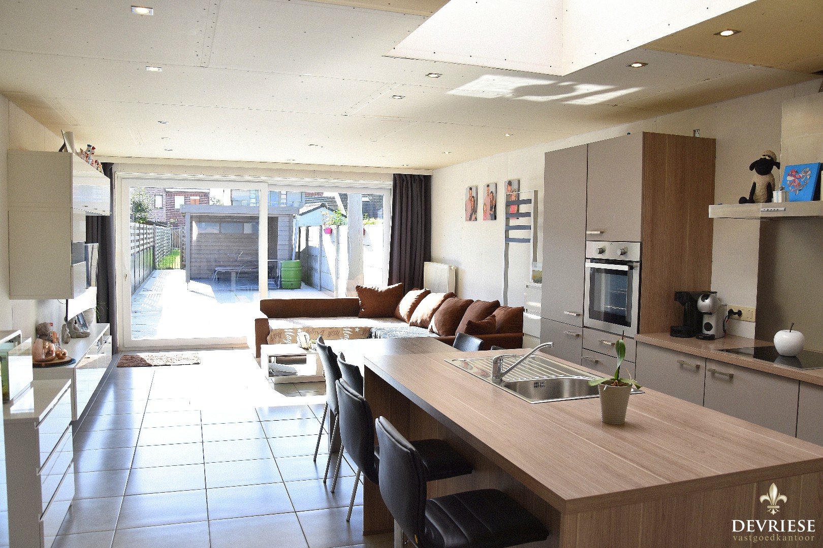 Achteraan werd recent een nieuwe leefruimte aangebouwd met open en volledig ingerichte keuken. Perfect instapklaar mits enkele kleine opfrissingswerken. Vanuit de aangename leefruimte is er vol zicht op het mooi aangelegde terras met lounge en tuinhuis. Daarachter een gazon met uitweg en garage. Een absolute troef voor deze eigendom.