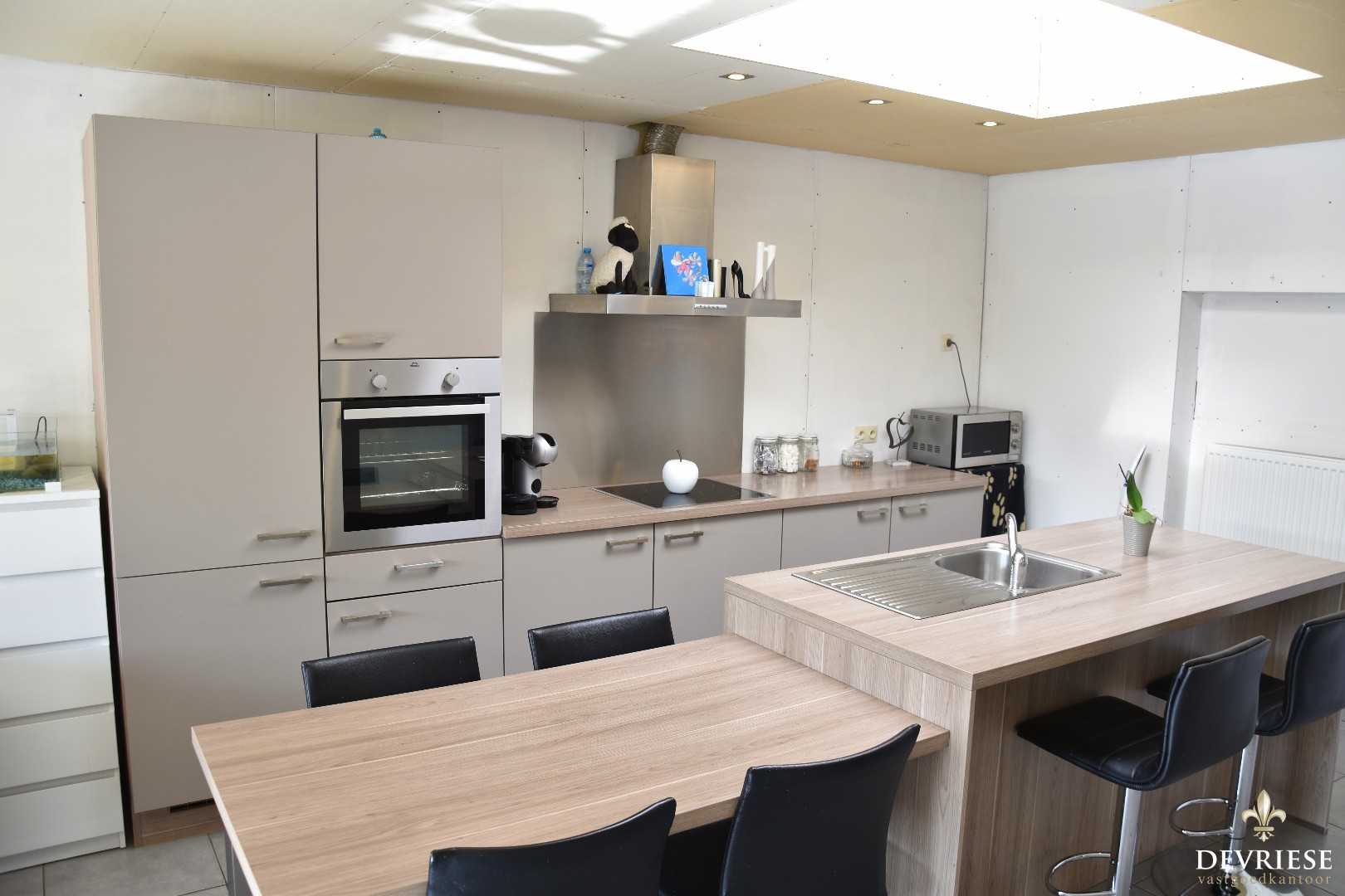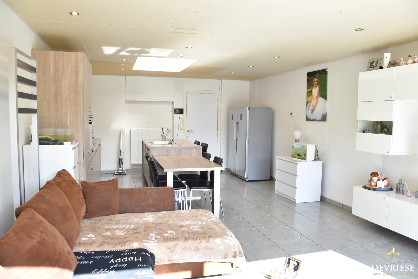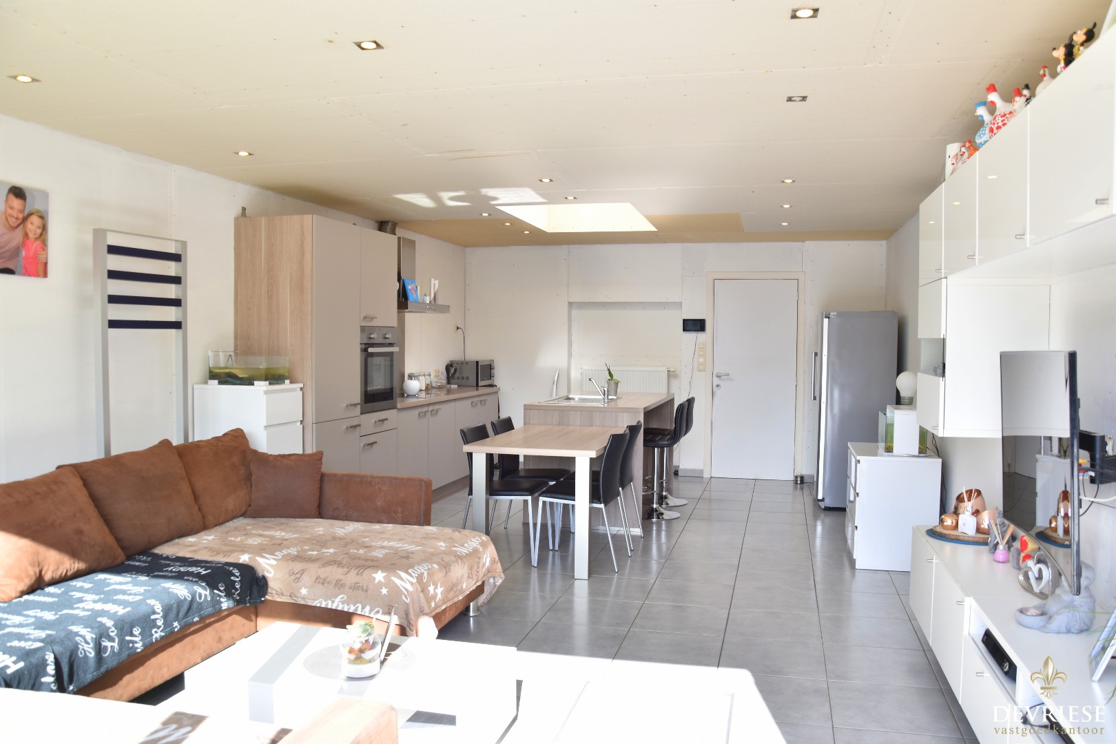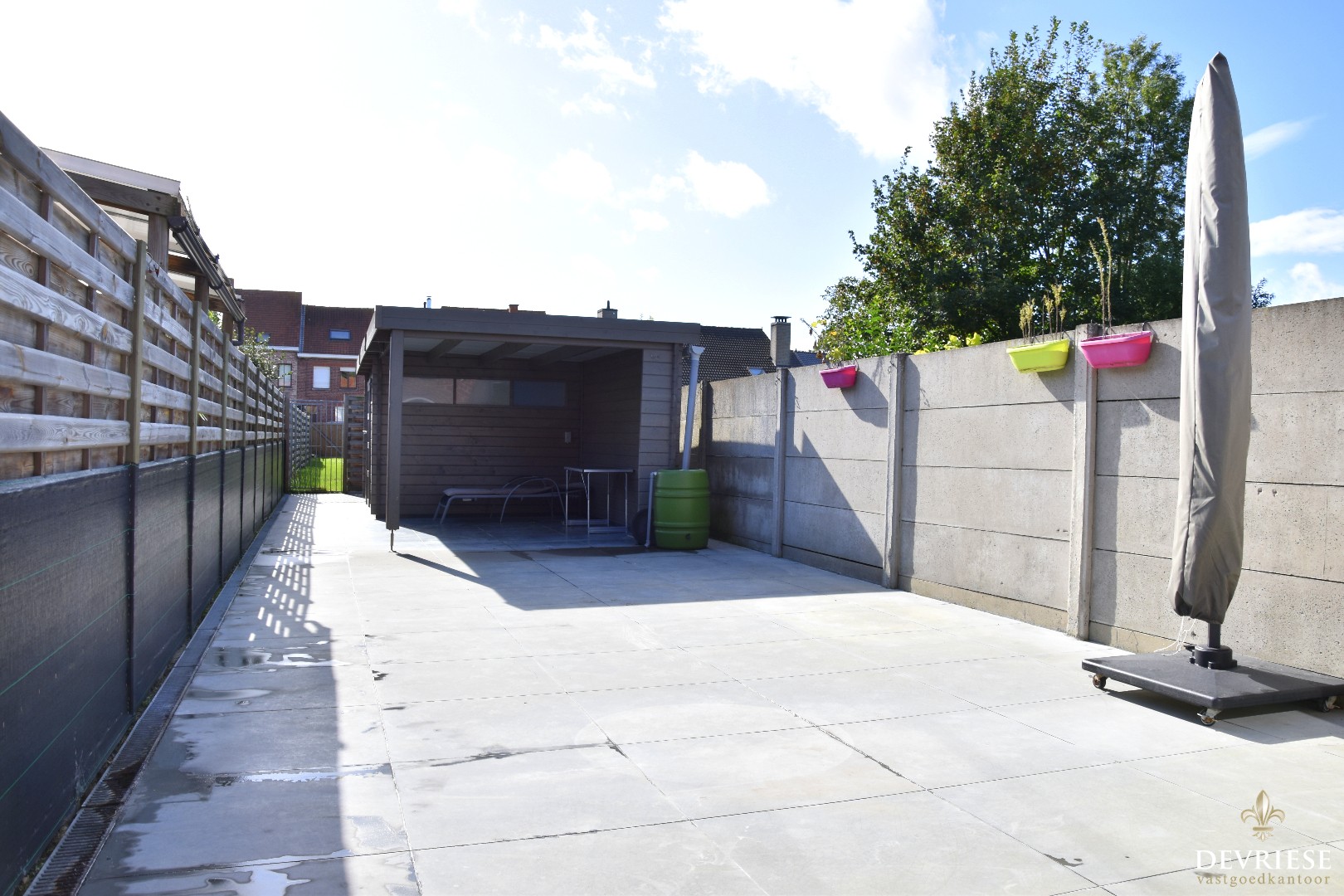 Achteraan werd recent een nieuwe leefruimte aangebouwd met open en volledig ingerichte keuken. Perfect instapklaar mits enkele kleine opfrissingswerken. Vanuit de aangename leefruimte is er vol zicht op het mooi aangelegde terras met lounge en tuinhuis. Daarachter een gazon met uitweg en garage. Een absolute troef voor deze eigendom.