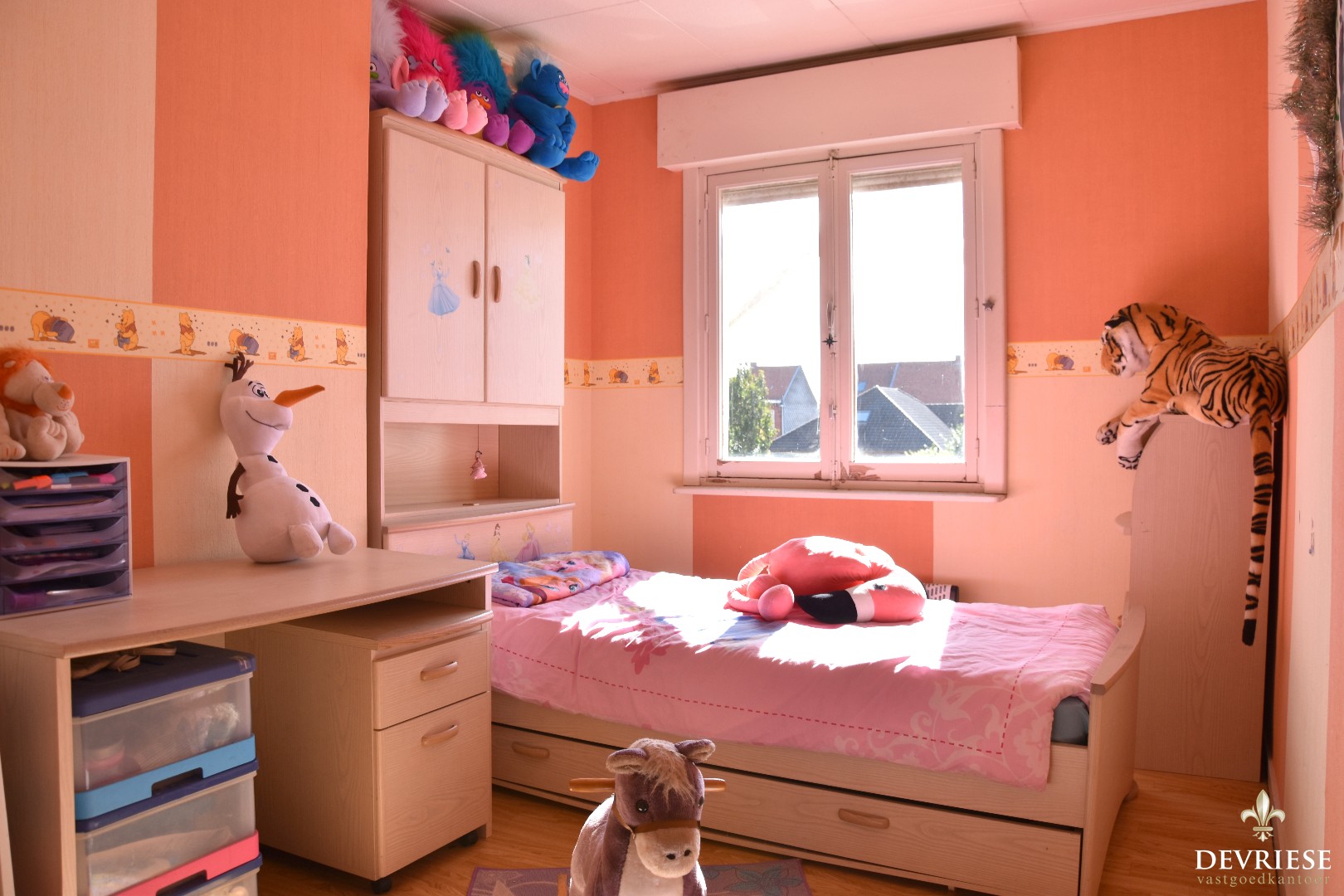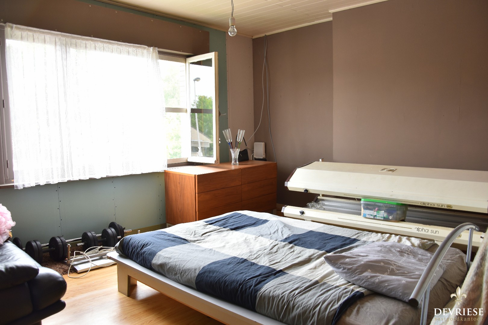 Op de bovenverdieping tellen we 3 slaapkamers, wat ons totaal op vier brengt. De zolder doet op vandaag dienst als extra bergruimte. De woning beschikt ook over een kelder, dus aan bergruimte zeker geen gebrek.