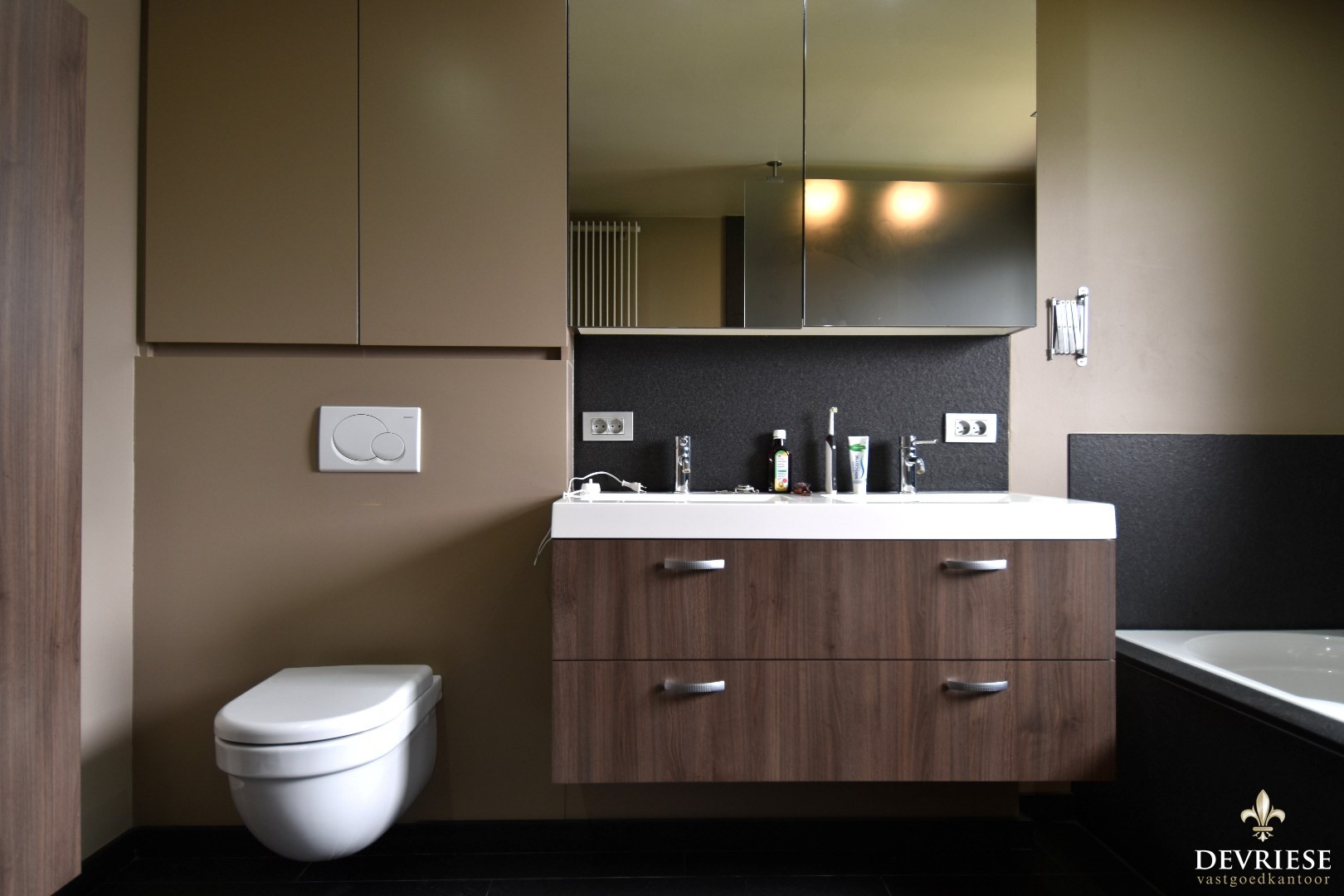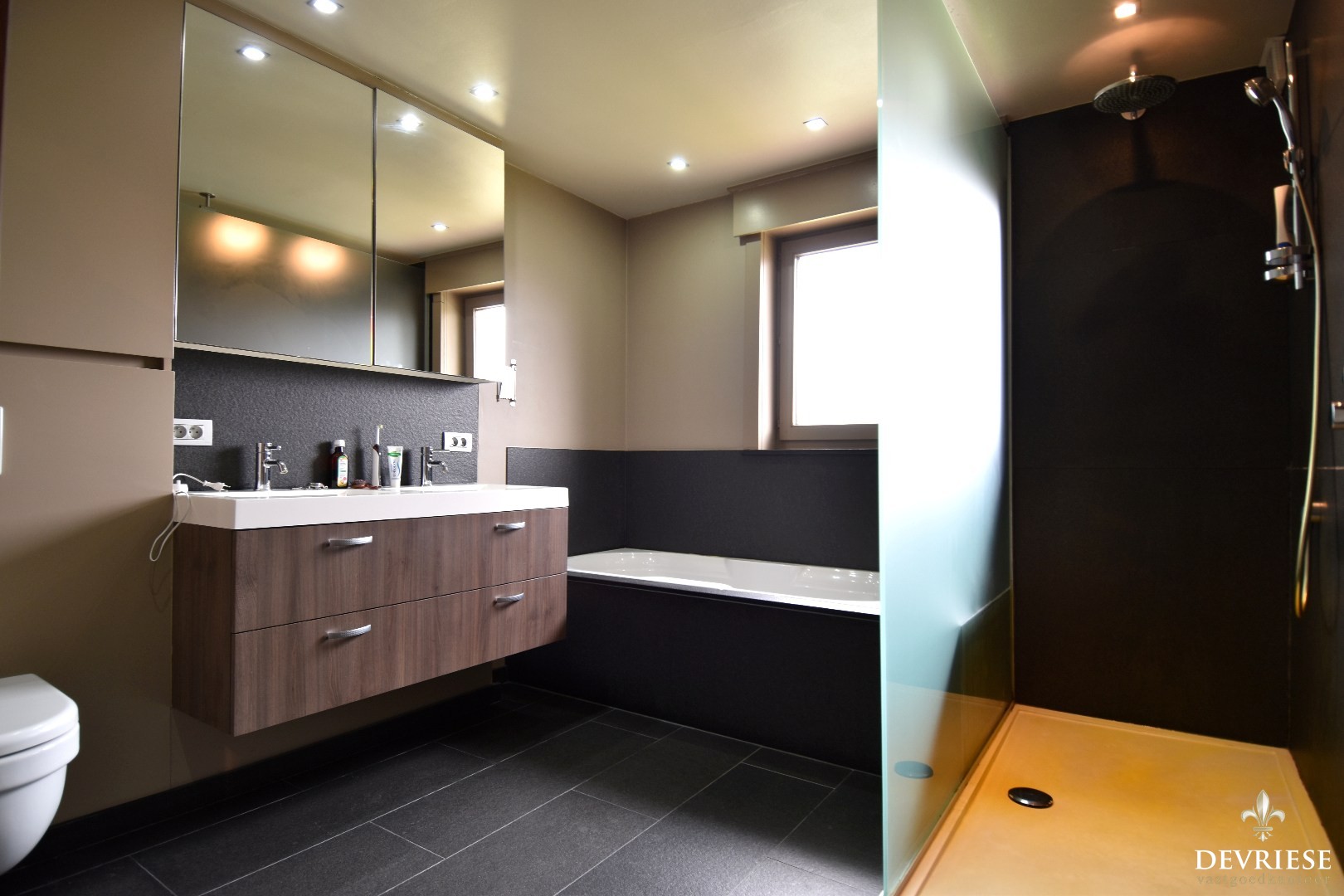 Op de verdieping vindt u 3 volwaardige slaapkamers en een ruime badkamer uitgerust met ligbad, douche, lavabomeubel en een tweede toilet.