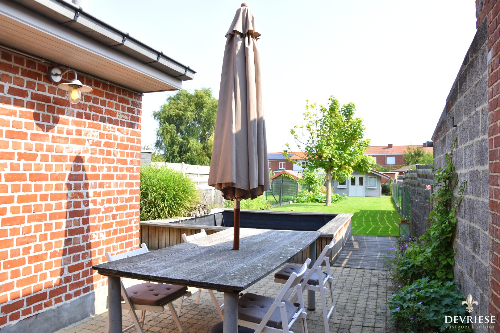 Achteraan beschikt de woning over een prachtige en gezellige tuin waar u de volledige dag van de zon kan genieten.