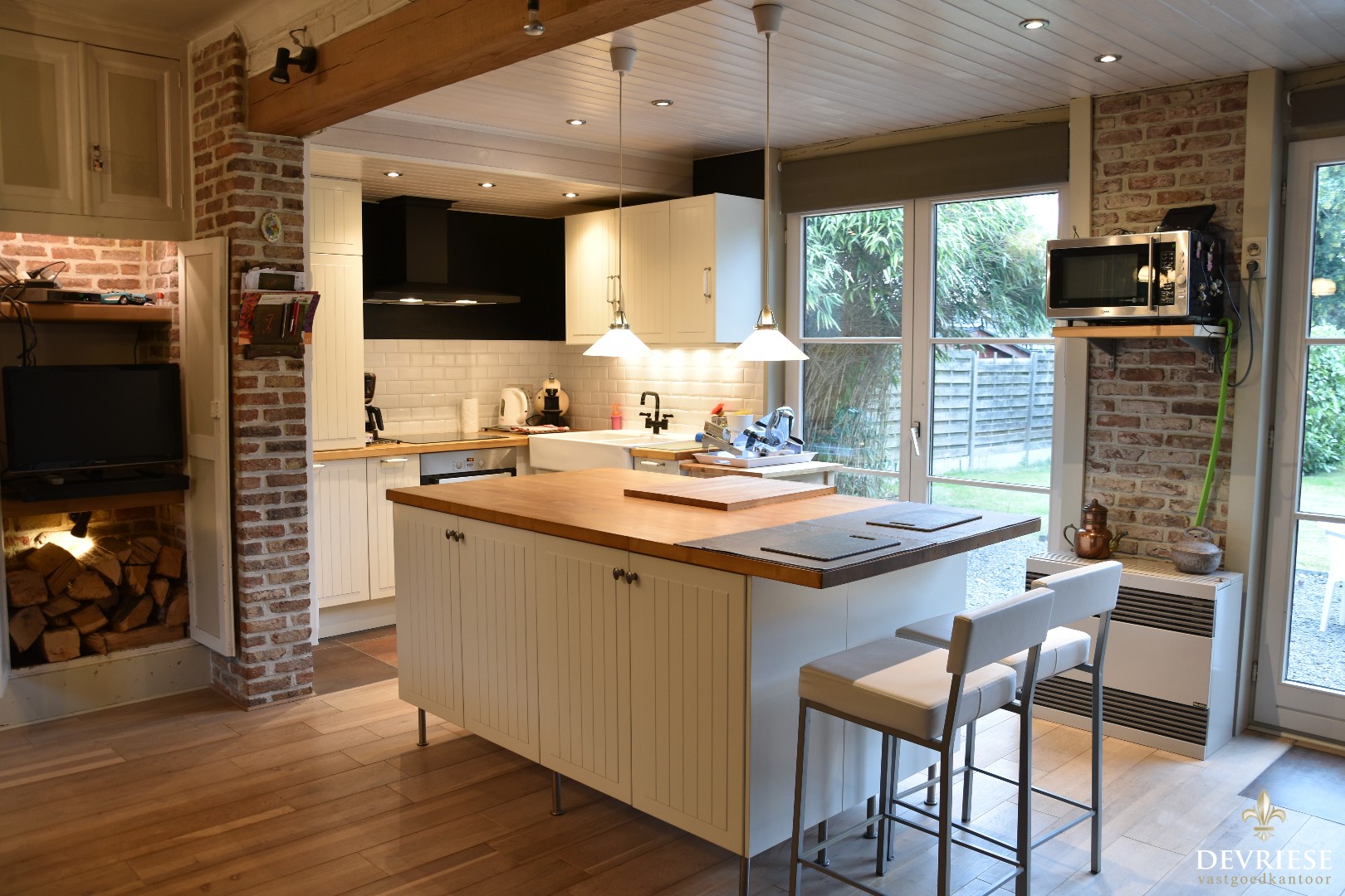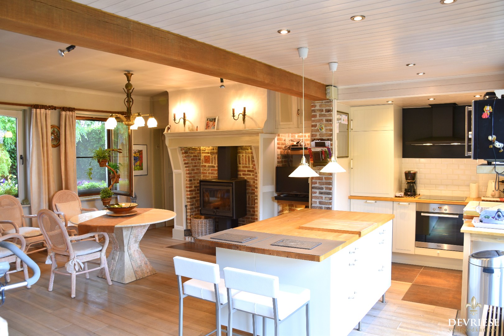 U komt binnen via de aparte inkomhal die rechtstreeks toegang biedt tot de leefruimte met open keuken. Deze ruimte straalt gezelligheid uit en geniet vol zicht op de uitgestrekte tuin.