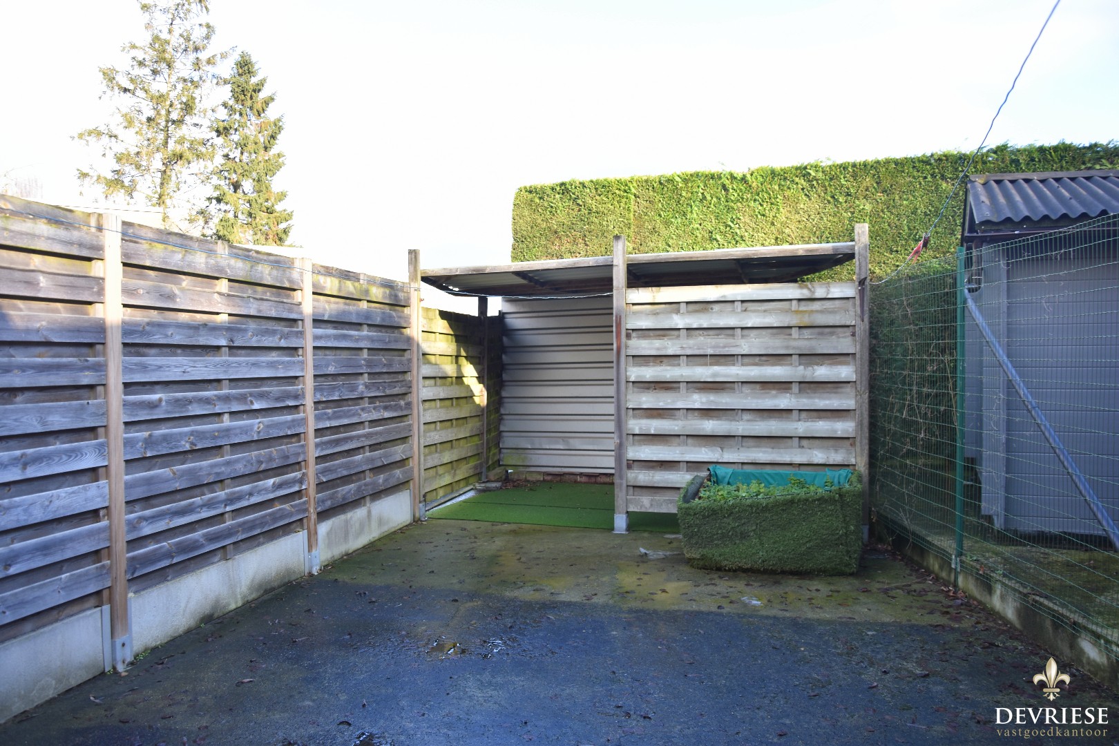 Deze eigendom beschikt over een autostaanplaats op eigen terrein, links van de woning.