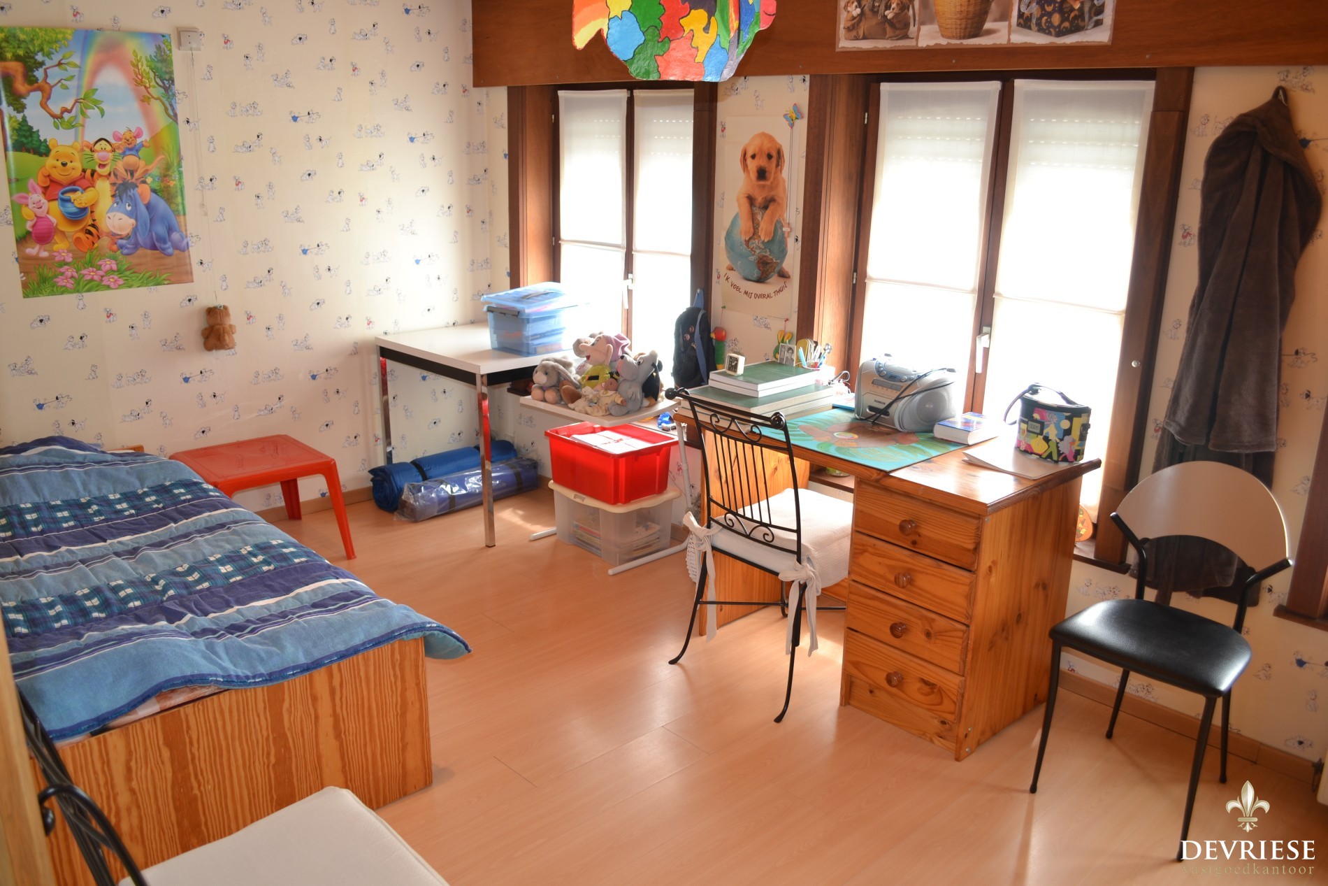 Daarnaast 3 slaapkamers op de eerste verdieping alsook de badkamer en helemaal bovenaan nog een grote ingerichte zolder als hobbykamer of enorme slaapkamer.
