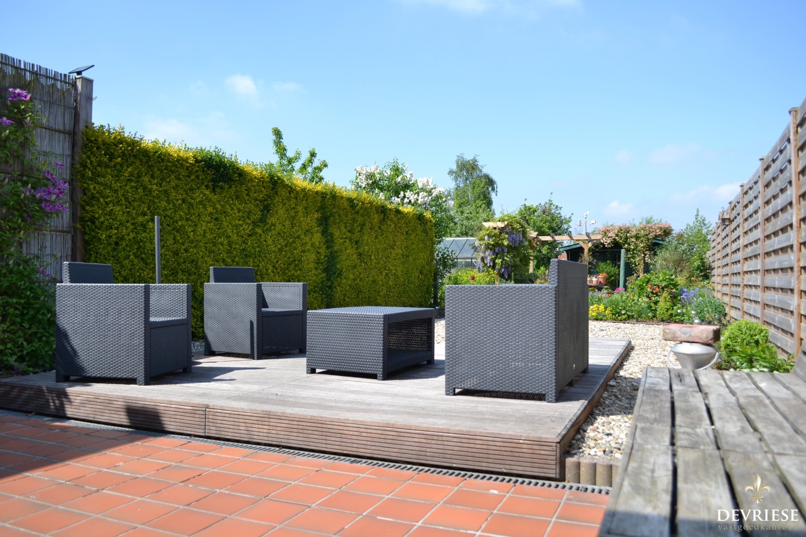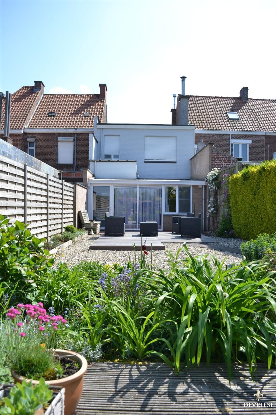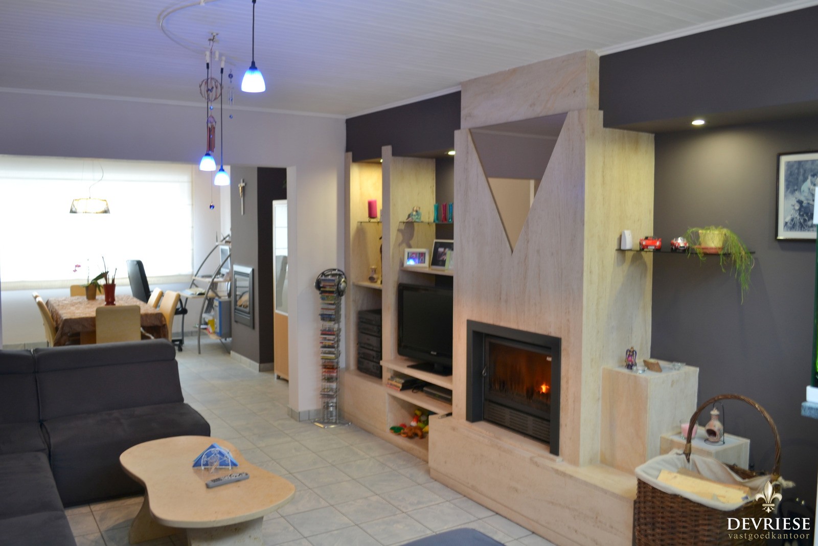 In de winter zorgt het haardvuur (cassette) voor de nodige gezelligheid en het zicht op de onderhoudsvrije tuin is in de zomer een grote plus.