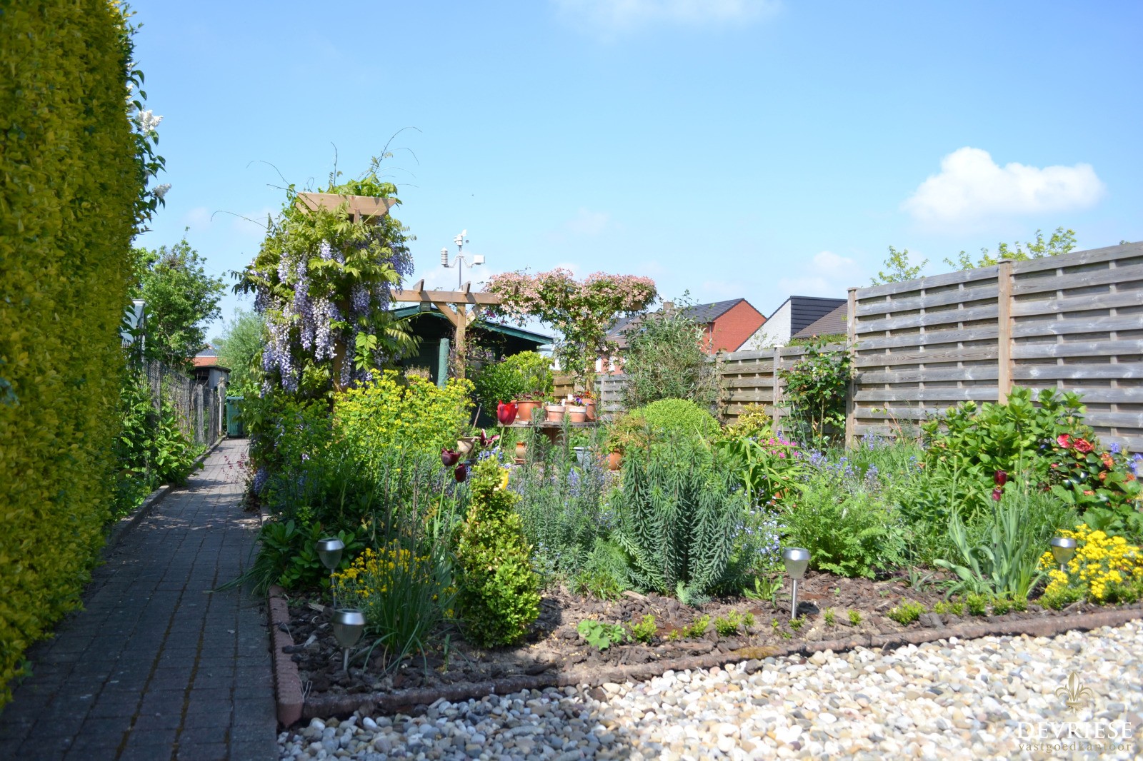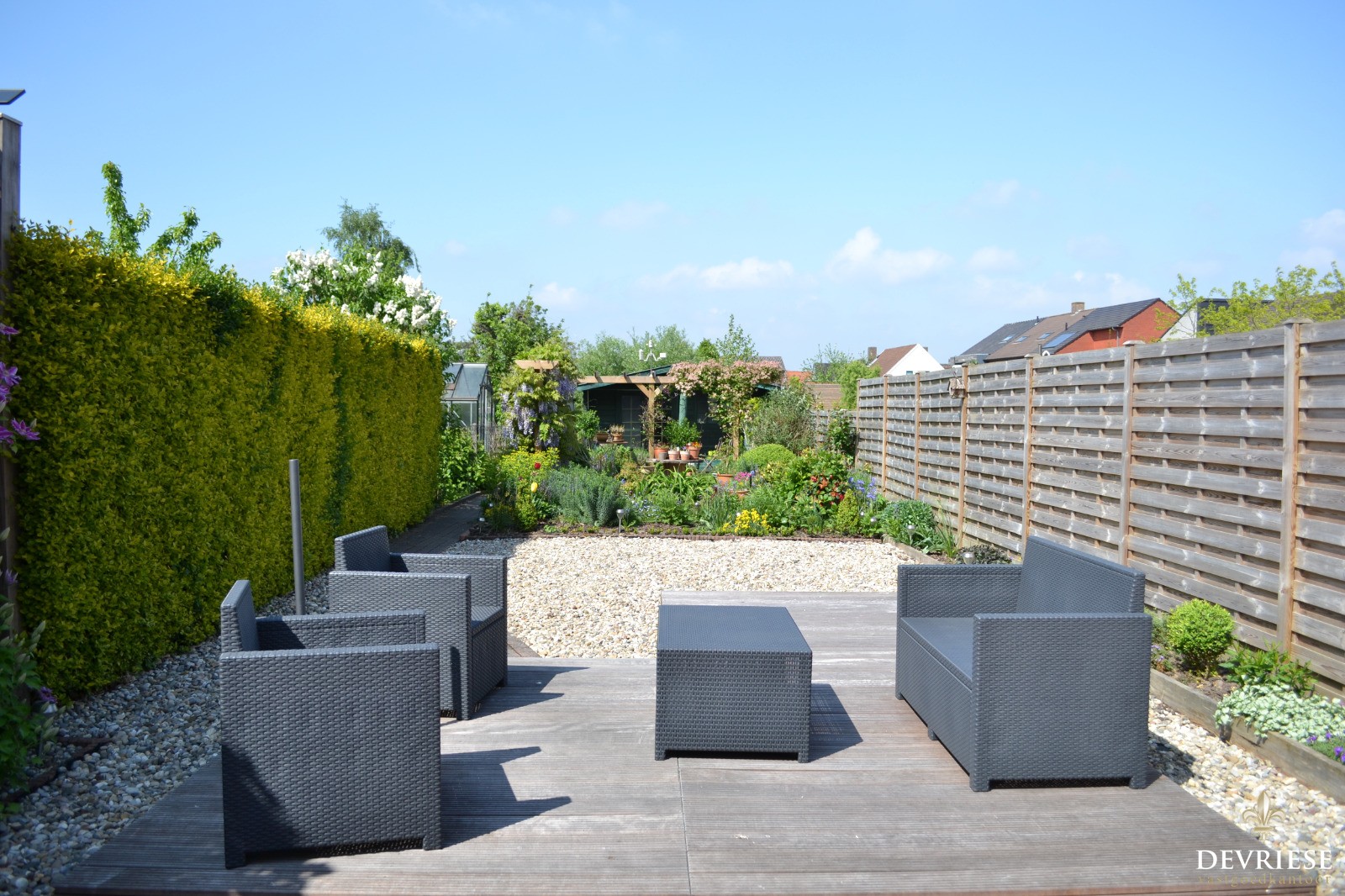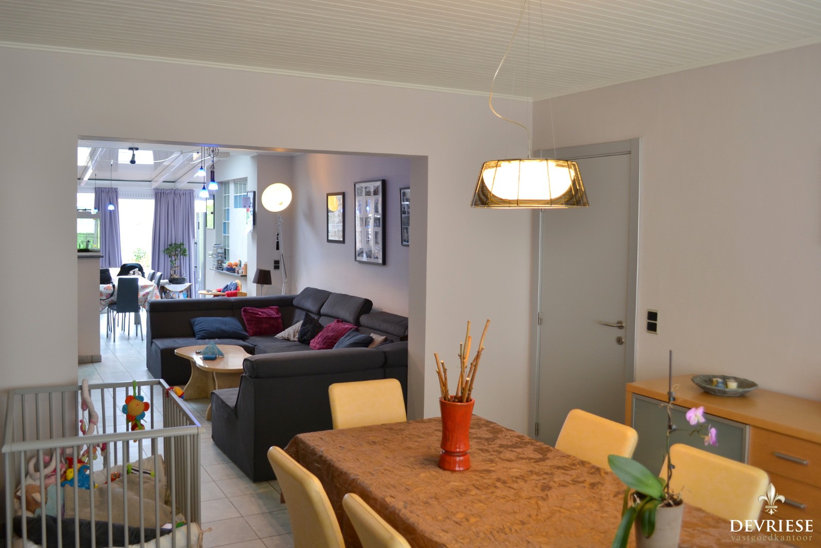 In de winter zorgt het haardvuur (cassette) voor de nodige gezelligheid en het zicht op de onderhoudsvrije tuin is in de zomer een grote plus.