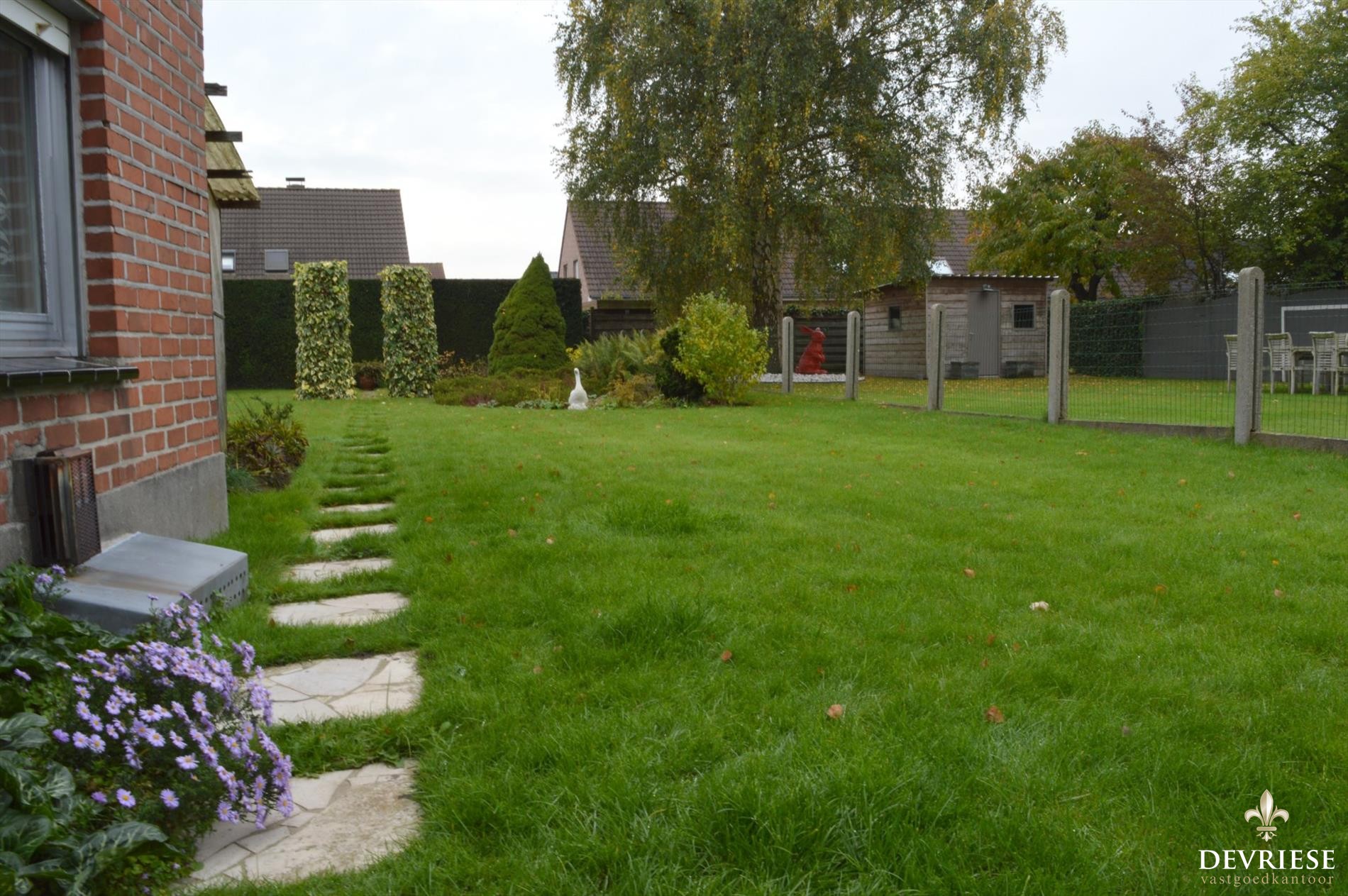 De achtertuin met zuidoriëntatie is ideaal speelterrein voor de kinderen of voor wie groene vingers heeft.