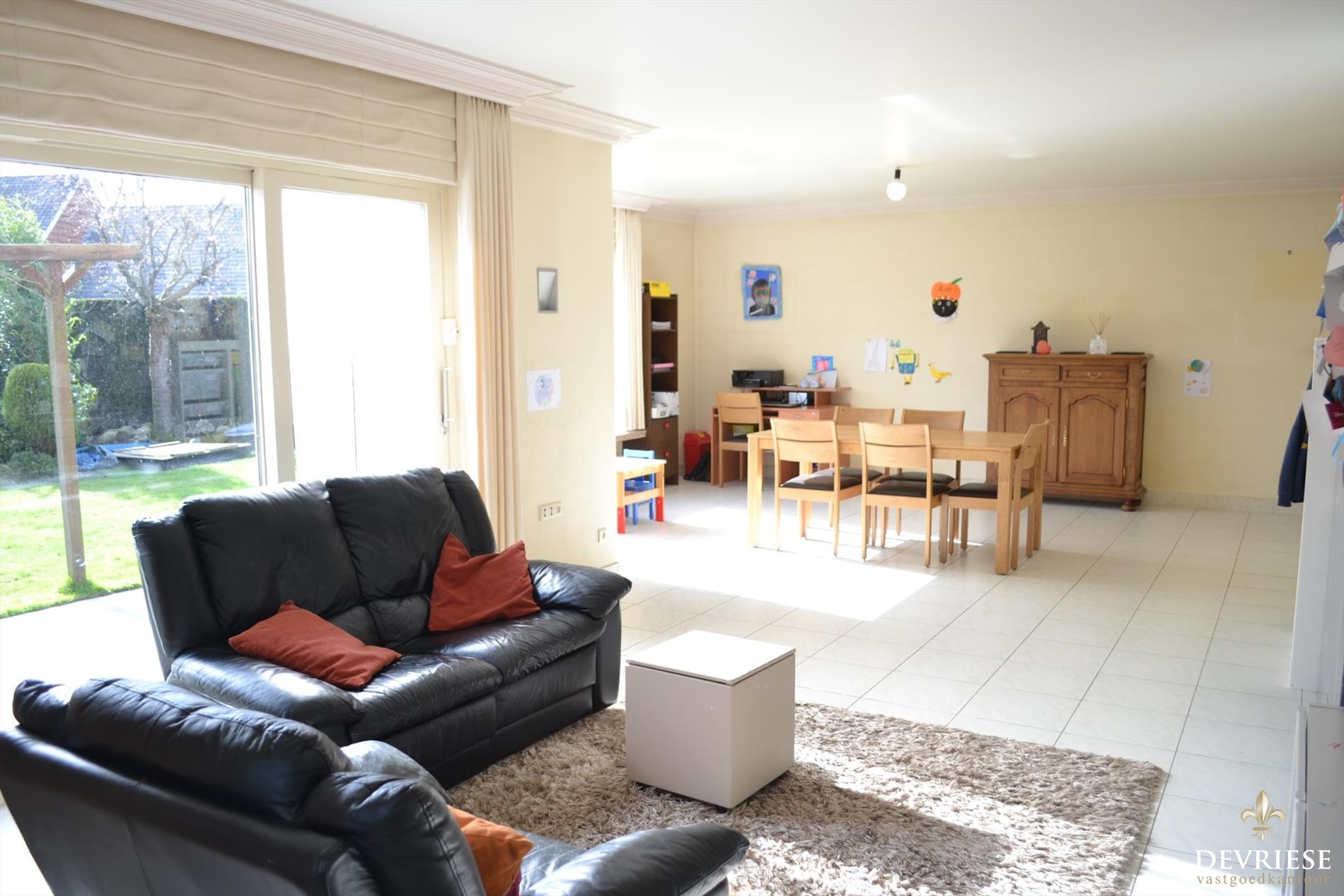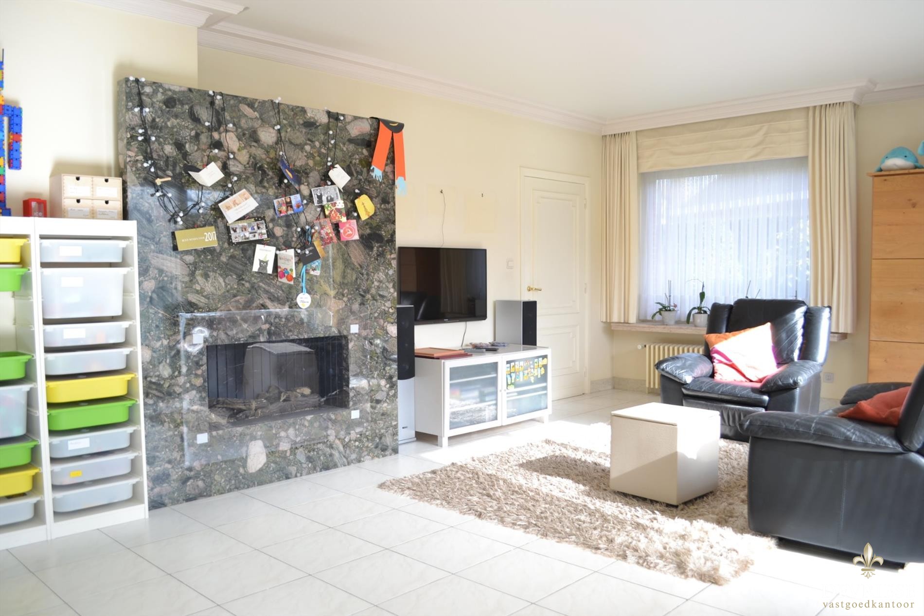 U komt binnen in de ruime inkomhal waar er toegang is tot het gastentoilet, de badkamer met douche en de eerste twee grote slaapkamers. Zowel de keuken als leefruimte genieten een enorme lichtinval en laten de bewoners genieten van een zee van ruimte. In de leefruimte vinden we een gezellige gashaard en is er door zijn vele raampartijen een prachtig zicht over de zuidwestgerichte tuin.