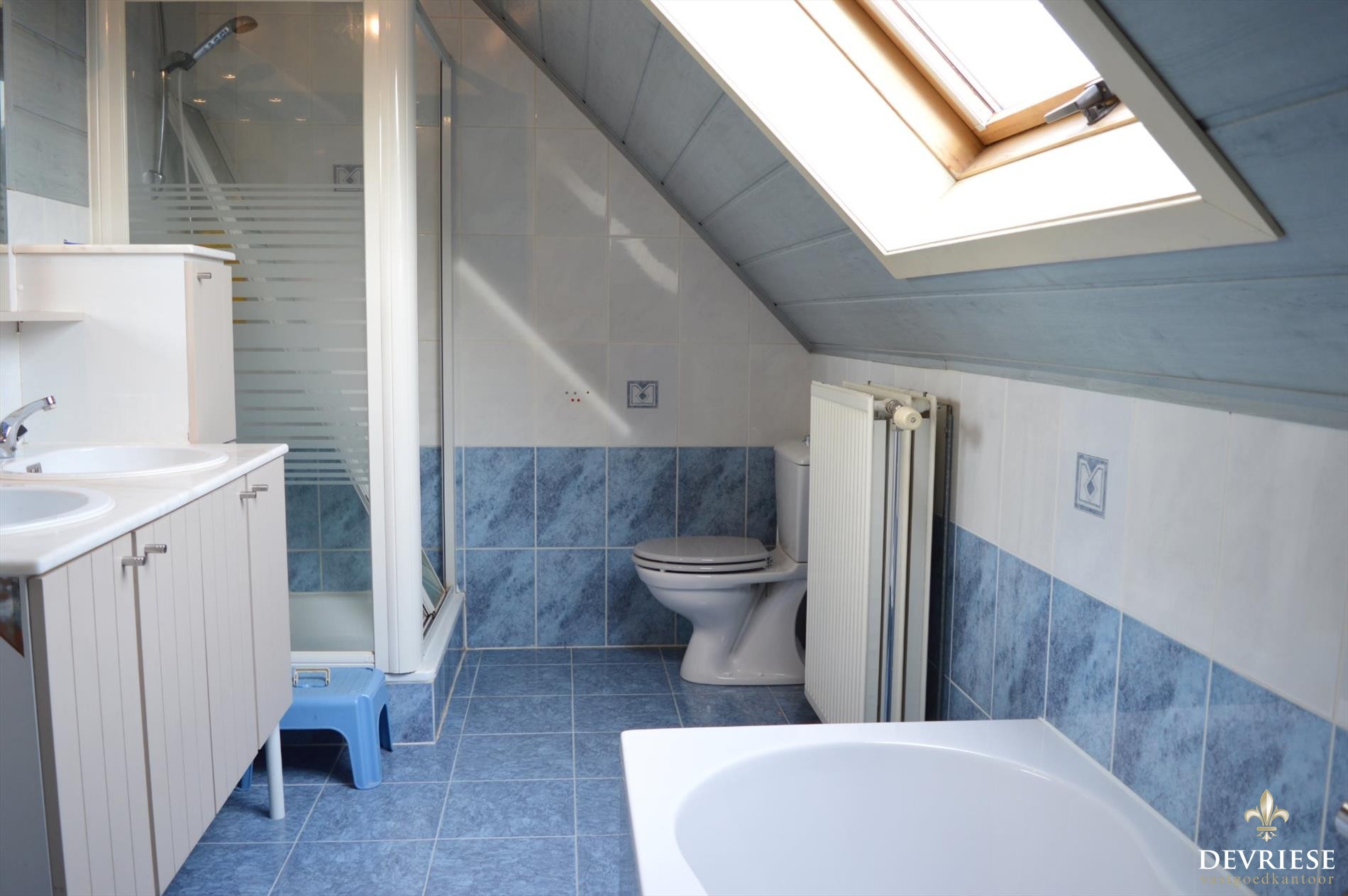 De badkamer is gelegen op de eerste verdieping en is voorzien van een dubbele wastafel, douche, bad en toilet. Daarnaast 3 volwaardige slaapkamers. Er is toegang tot de zolder die dient als extra bergruimte.