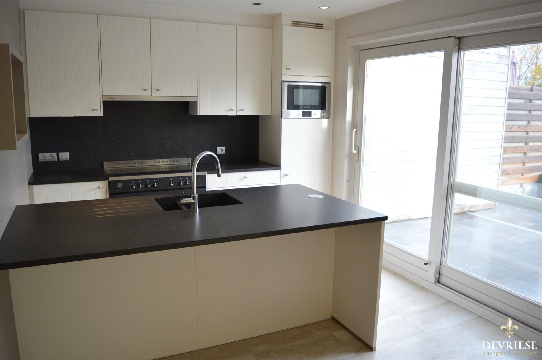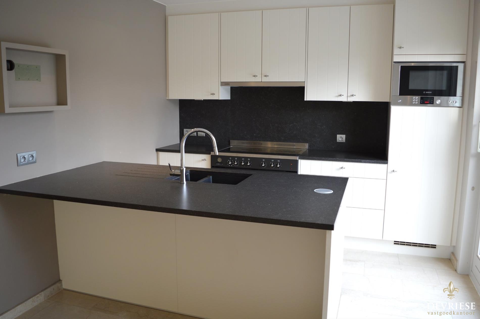 Deze perfect instapklare woning beschikt over een inkomhal met gastentoilet, ruime leefruimte met veel lichtinval en de aanliggende veranda met mooi zicht op de groene tuin. De open keuken werd nog maar net vernieuwd en is volledig ingericht. Ook van hieruit zicht op de tuin.