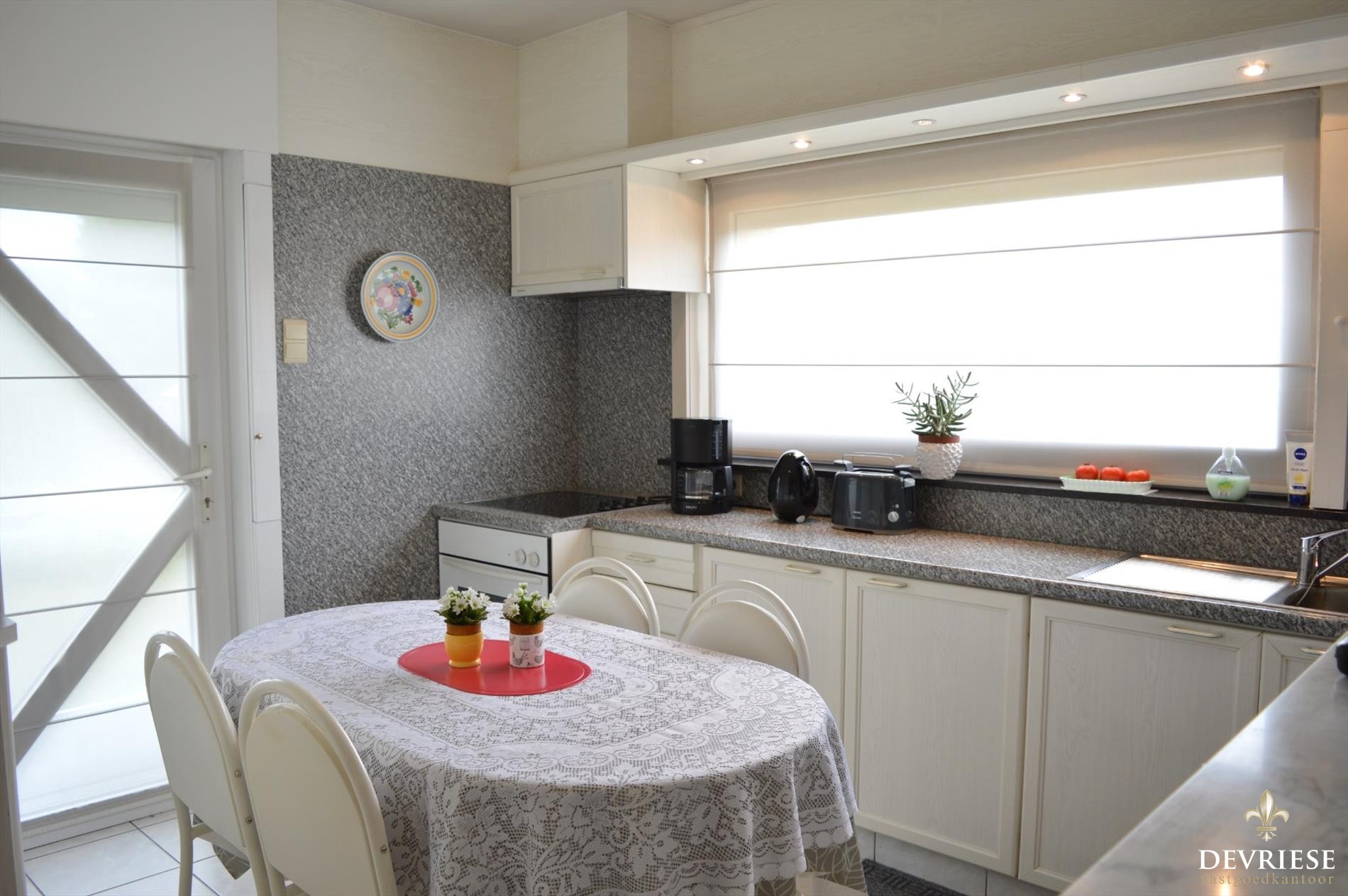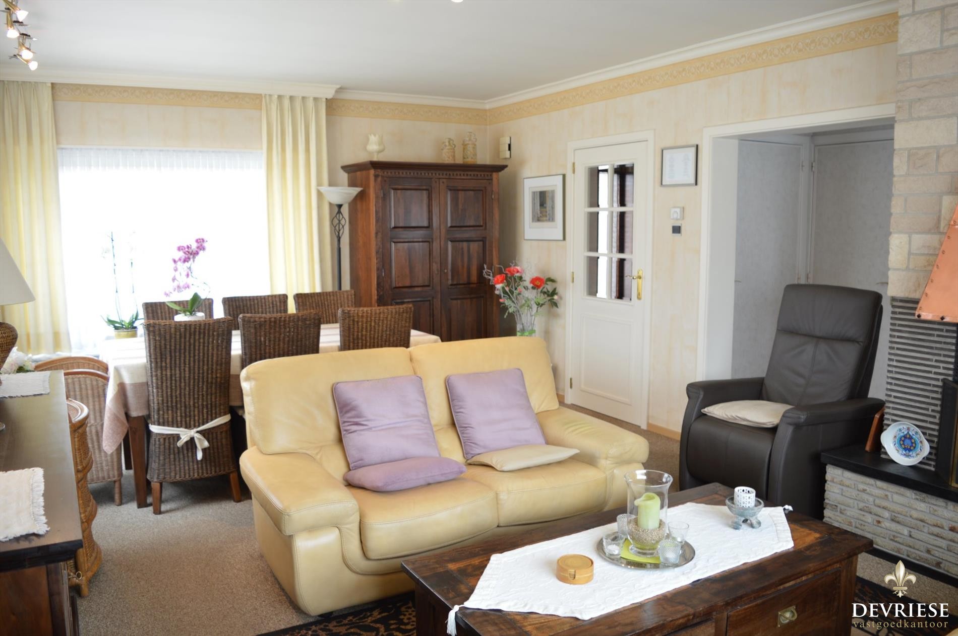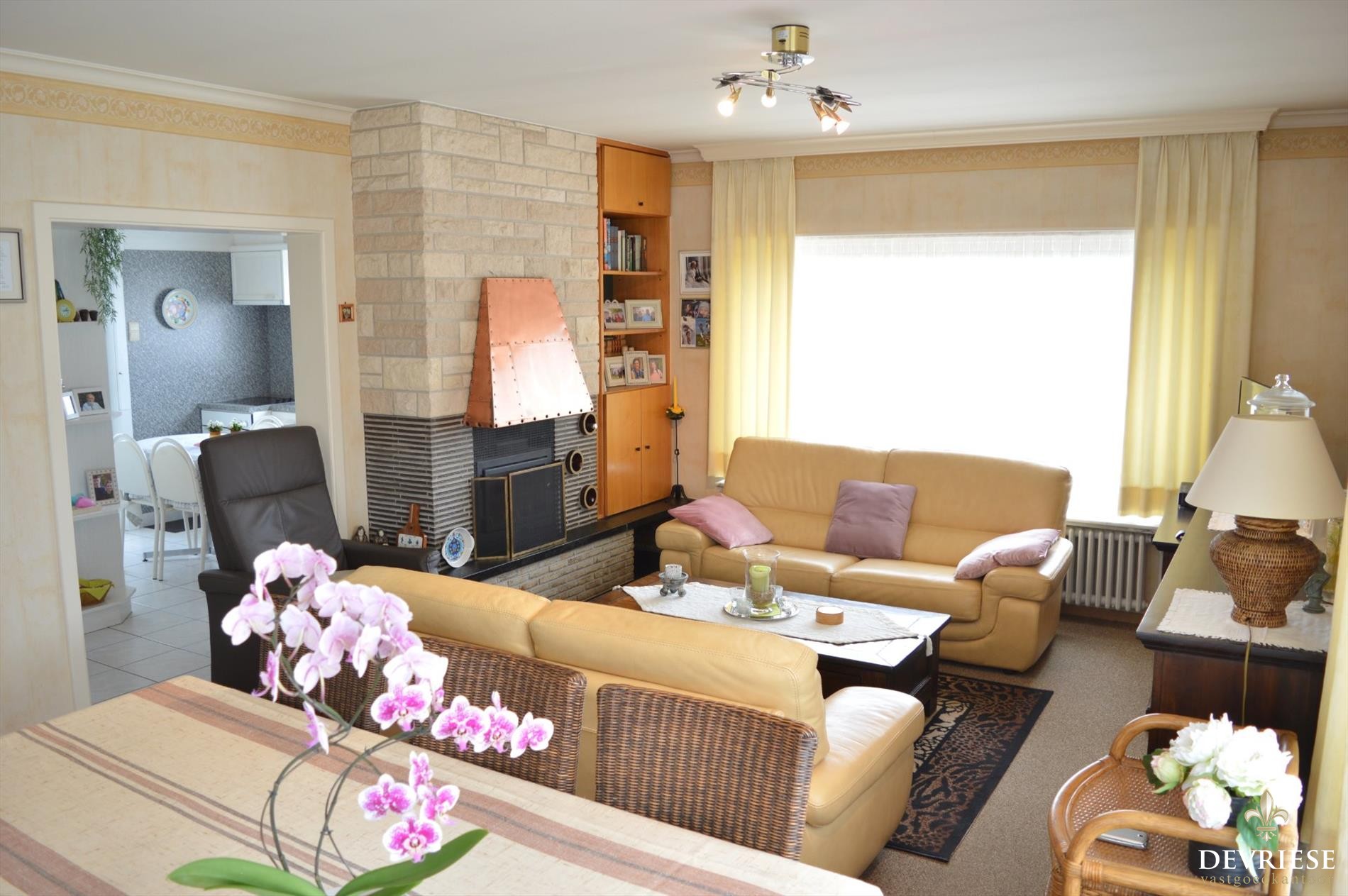 Via de inkomhal met apart gastentoilet kom je in de lichtrijke en 'cosy' leefruimte of kom je in de ingerichte keuken. Zowel vanuit keuken als leefruimte is er op de tuin rondom de woning.