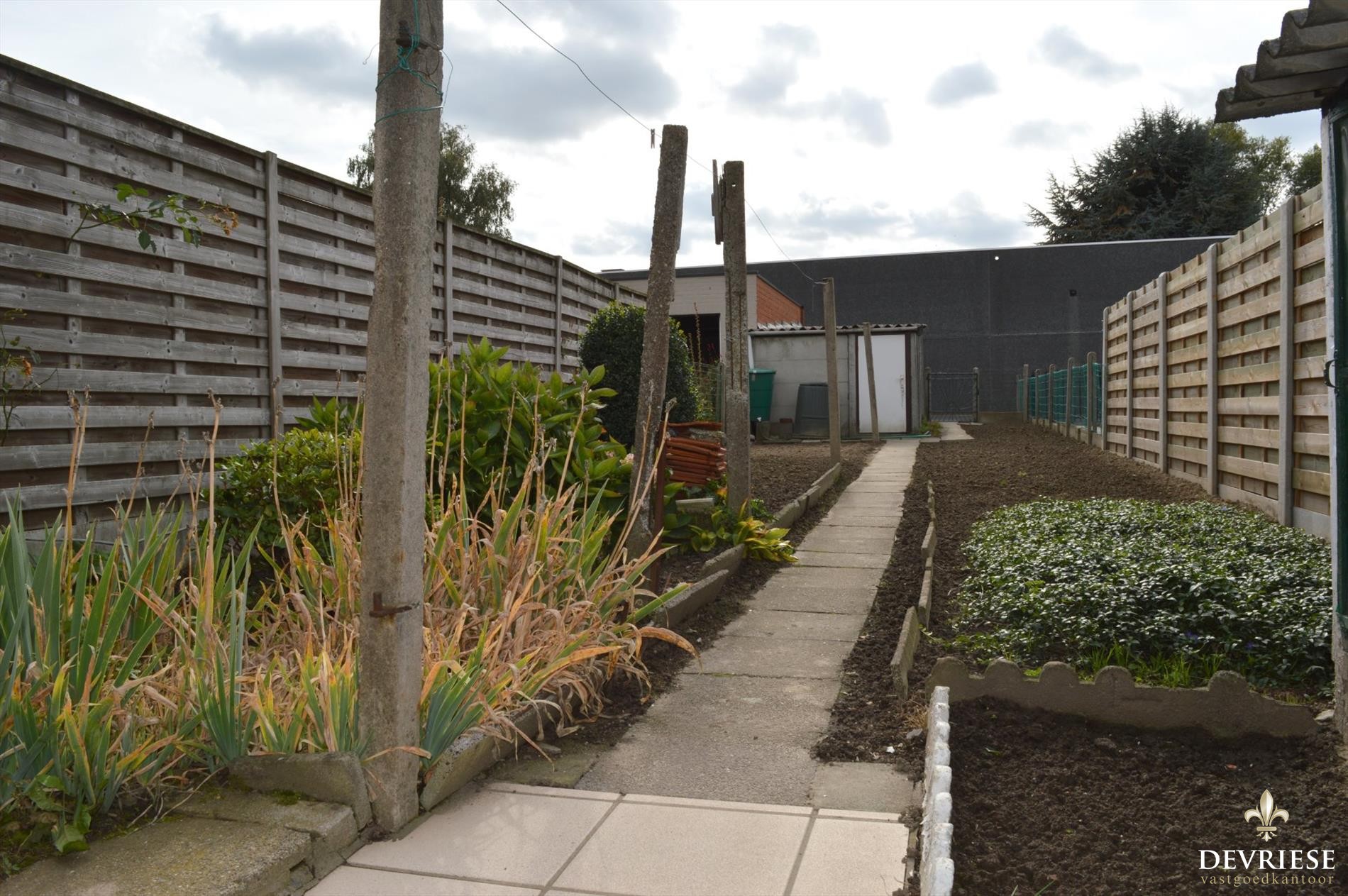 Gelijkvloers beschikt de woning over een aparte inkomhal, een lichtrijke leefruimte, de keuken met bijhorende berging en badkamer voorzien van toilet en bad. Achteraan de woning de gunstig georiënteerde tuin met als kers op de taart de garage met uitweg.