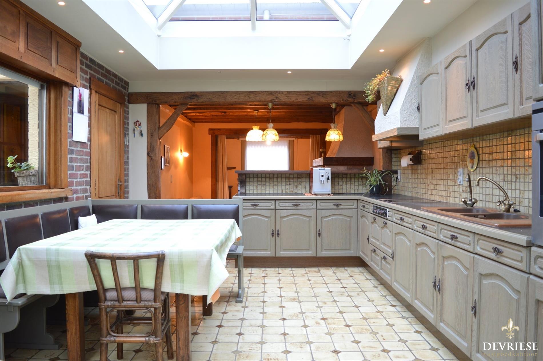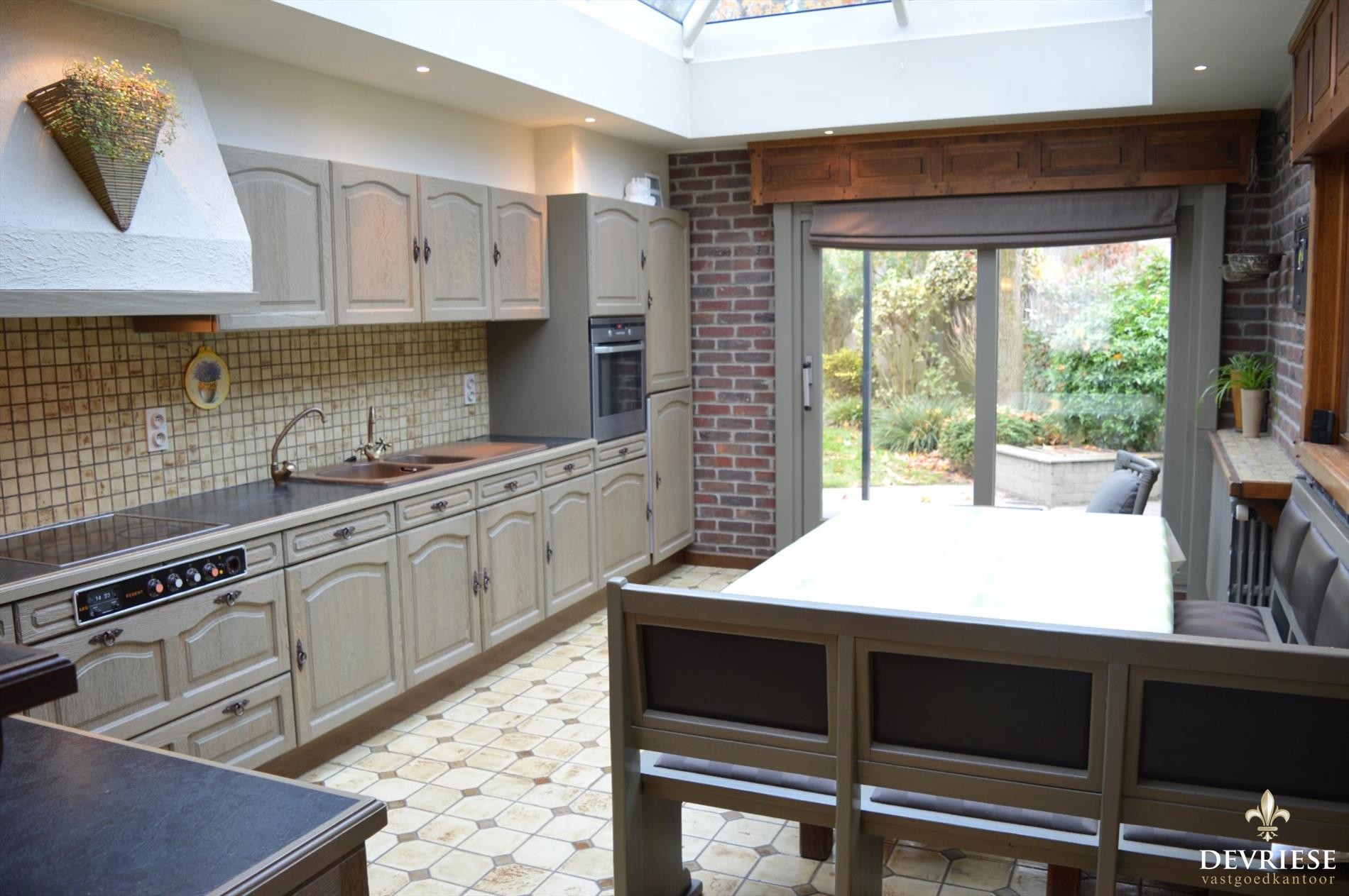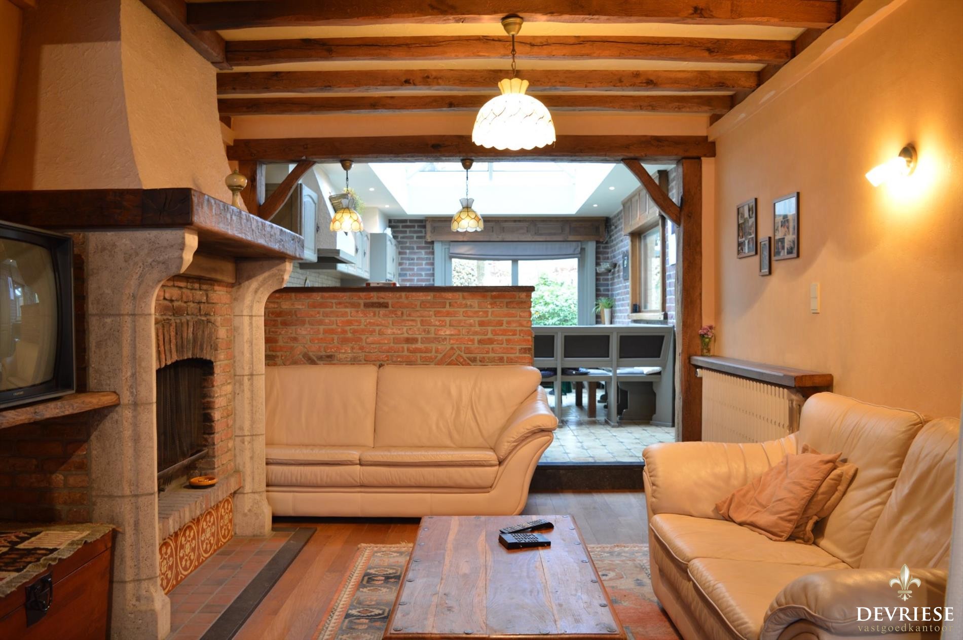 Deze woning komt zeer verrassend uit de hoek en moet je binnenin gezien hebben! Een gezellige leefruimte met open haard met aanliggend de open ruime en ingerichte keuken. Van hieruit is zicht op de 'groene' tuin. Naast de keuken is er een zeer lichtrijke veranda en aparte praktische wasruimte. In de inkomhal is er een apart gastentoilet.