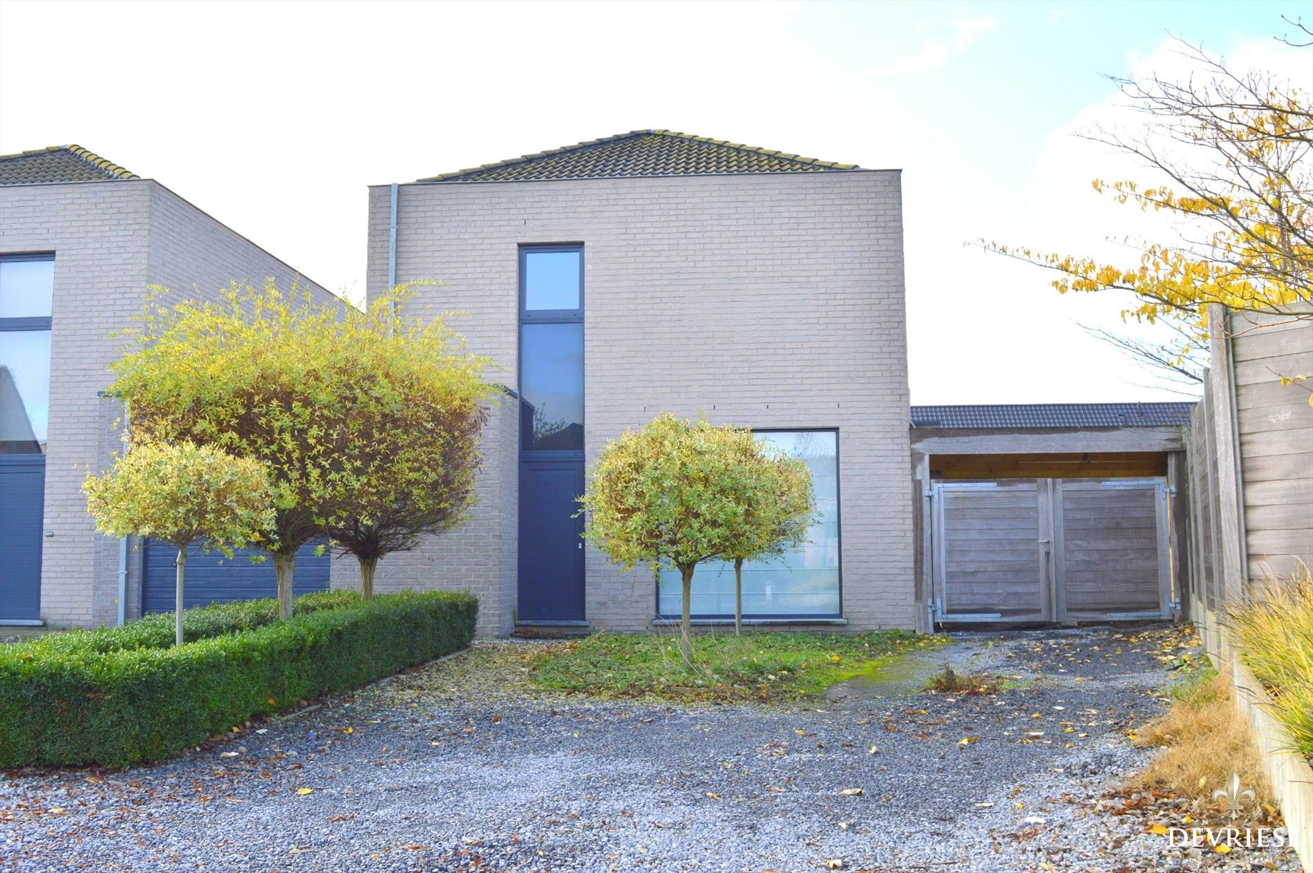 Aan parkeergelegenheid geen gebrek gezien de ruime garage, de twee opritten voor de woning én daarenboven nog een extra carport. Zowel doorheen de garage als door de carport is er rechtstreekse toegang van vooraan de woning naar de tuin toe. Vooral een zeer praktisch gemak.