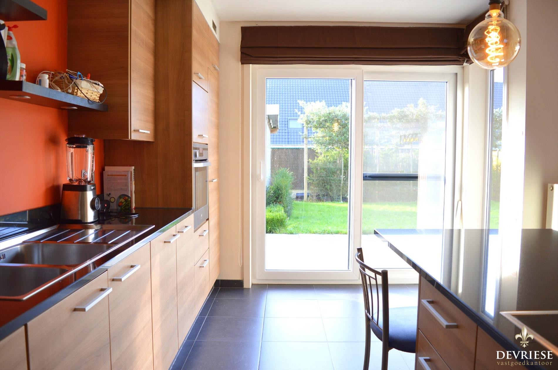 De keuken en de garage staan met elkaar in verbinding via een praktische berging.